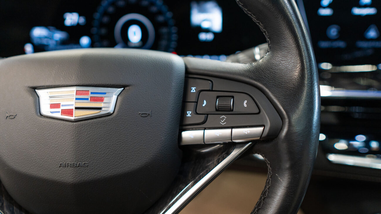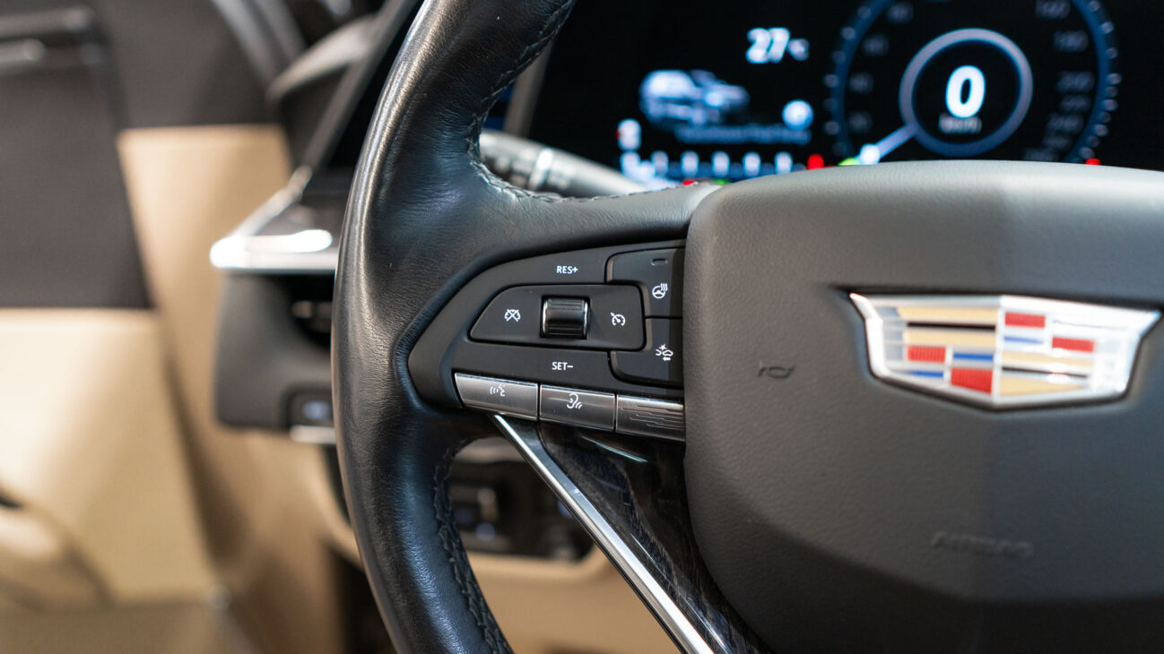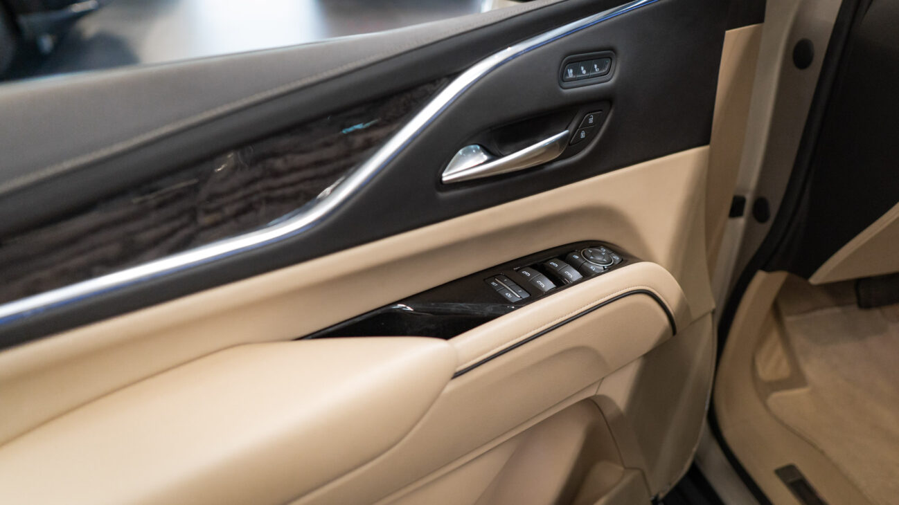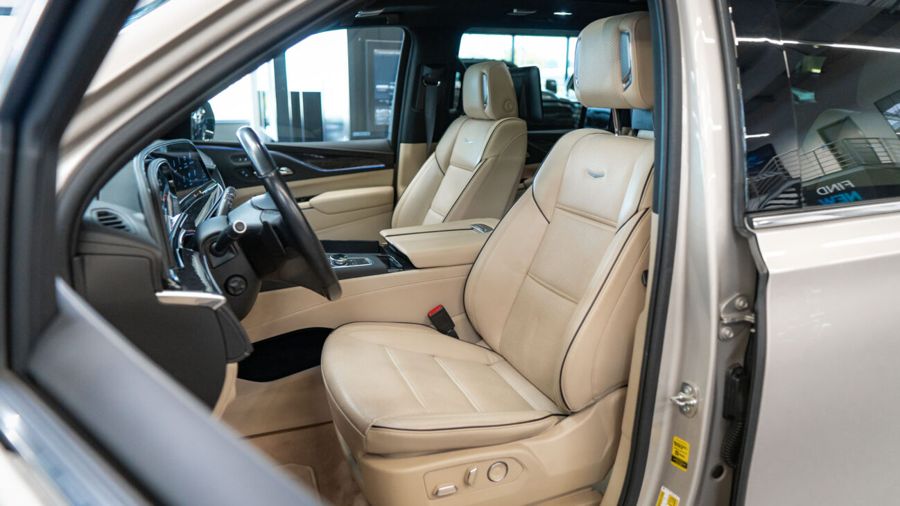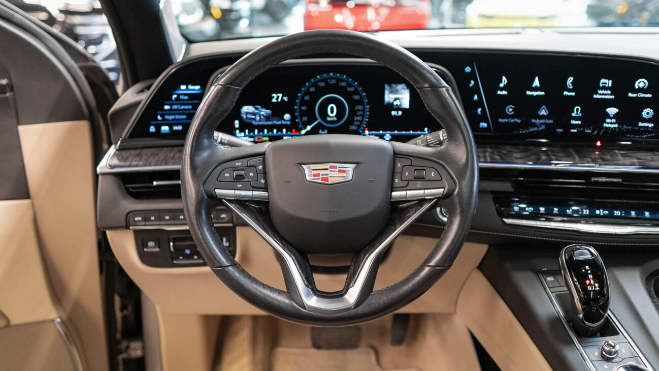 The Premium Luxury trip has a first class 6 seat interior in full perforated leather. First row seats are both heated and ventilated while offering 12-way adjustment. Heated second row seats. Luxurious infotainment system consists of a huge 16,9″ OLED touch screen and fully digital 14,2″ driver cluster. Rear media center includes two 12,6″ screens with HDMI/USB connectivity and option to project media from mobile devices. The set includes a premium quality Cadillac wireless headphones.