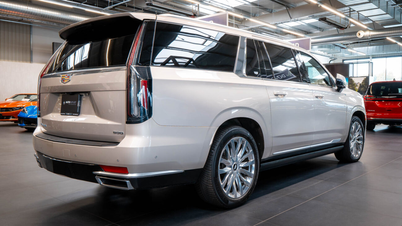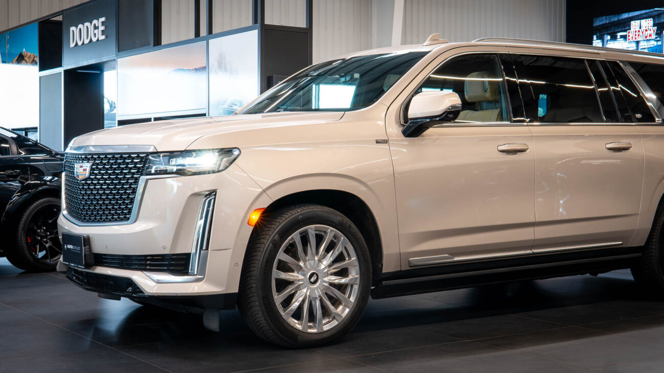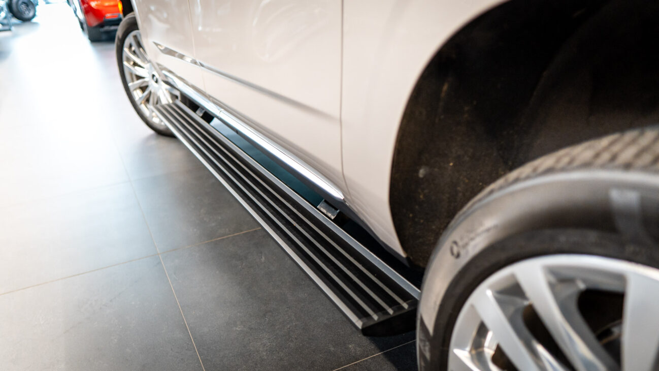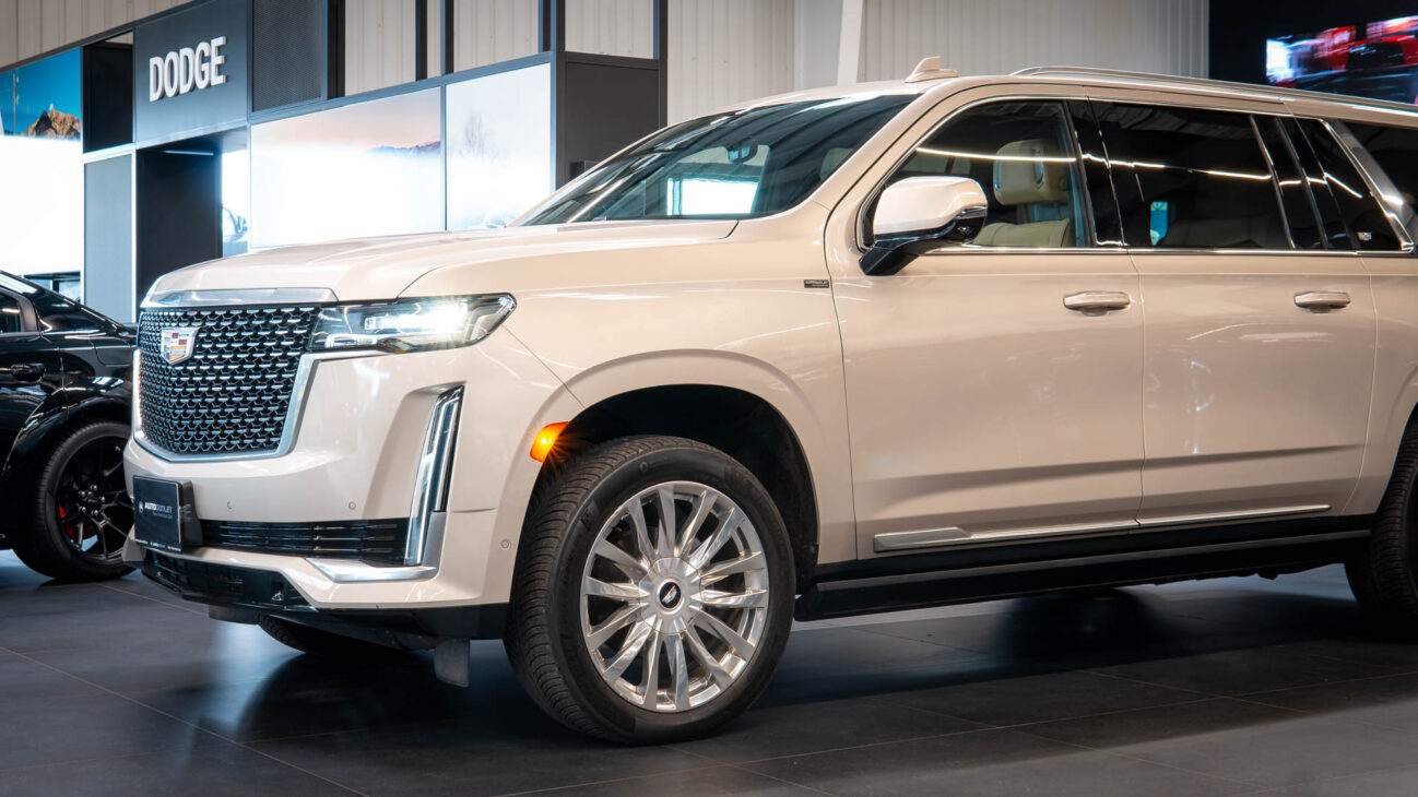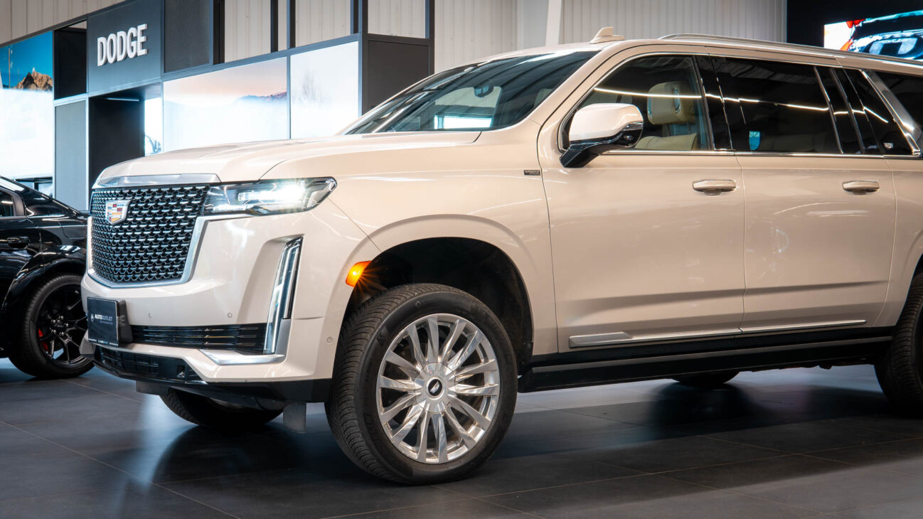 Cadillac Escalade ESV Premium Luxury. New generation of the legendary Escalade represents the top of the line evolution of full-size american SUVs. Under the hood resides the naturally aspirated 6.2l V8 engine capable of pushing 420HP and 623NM torque. New 10 speed Hydra-Matic 10L80 transmission with paddle shifters. ESV is the prolonged version which offers enough space and legroom for all 3 rows of seats. Upon folding the 2 rear rows, ESV has unbelievable 4043 litres of trunk space. Despite its size Escalade provides stellar driving experience, especially with the indluded Performance Package – Magnetic Ride Control AIR adaptive suspension which evaluates the surface 1000x per second to adjust the dampening force and includes Electronic Limited Slip Differential.