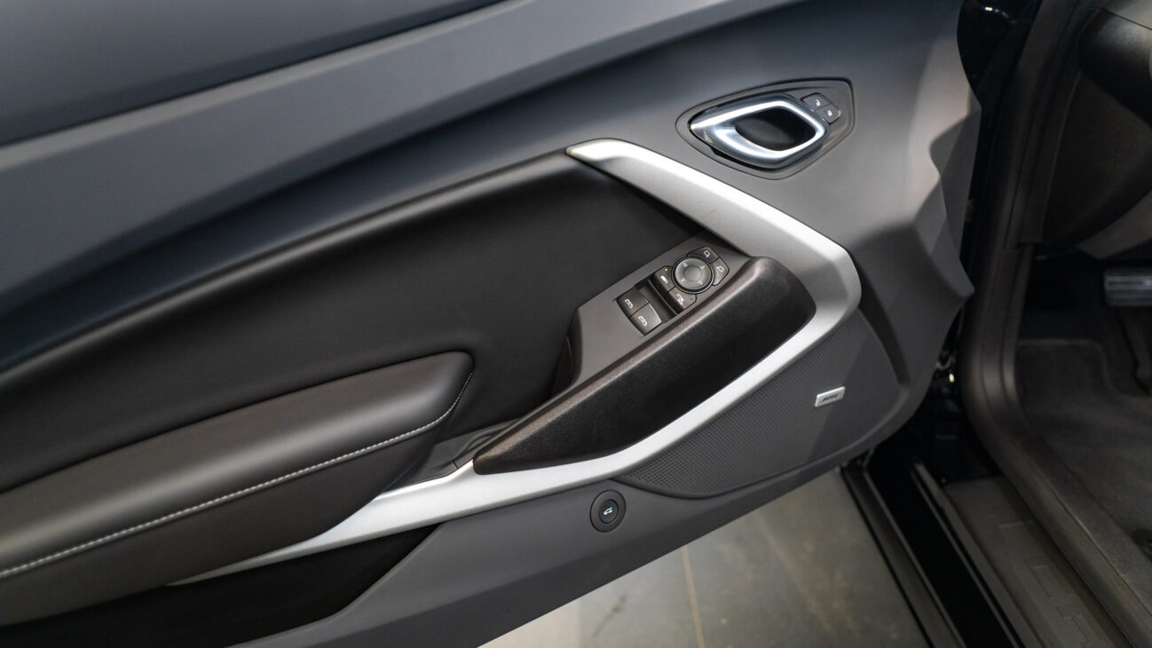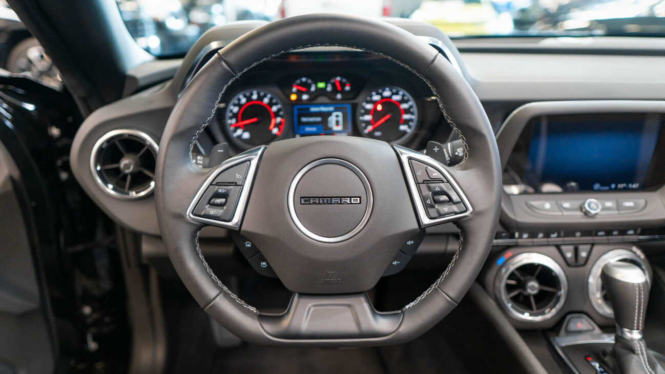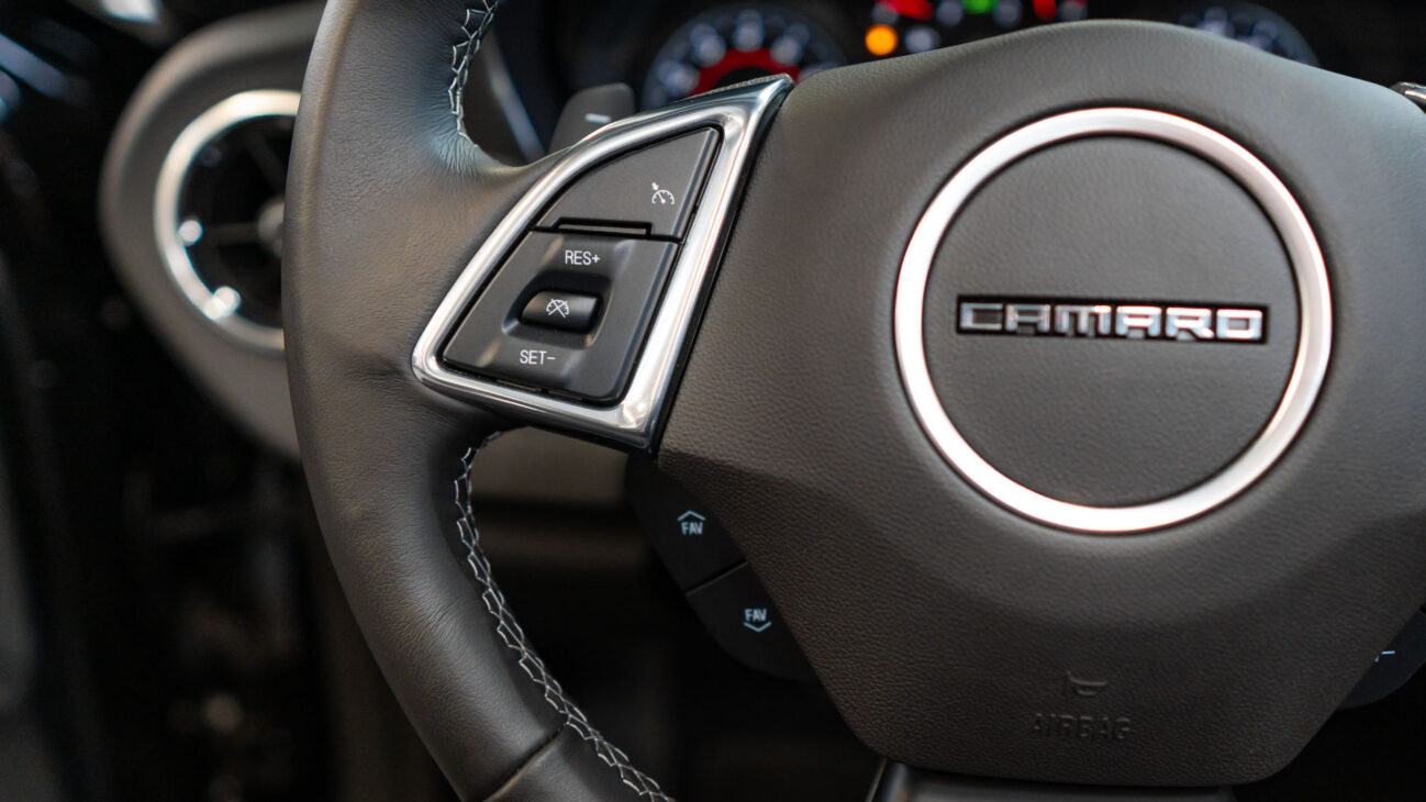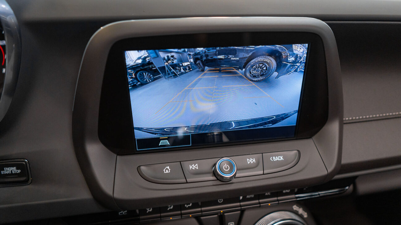 Inside, the Camaro offers supportive sport seats with excellent lateral bolstering. The driver’s seat is 8-way power adjustable, while the passenger seat features 6-way power adjustment. The sporty multifunction steering wheel is wrapped in leather, with a thick-rim design and tilt-and-telescopic adjustment. As part of the Technology Package, the Camaro comes equipped with a premium 9-speaker Bose audio system and the advanced Chevrolet Infotainment 3 system with an 8-inch touchscreen, supporting wireless Apple CarPlay and Android Auto. The car has keyless door opening and start.