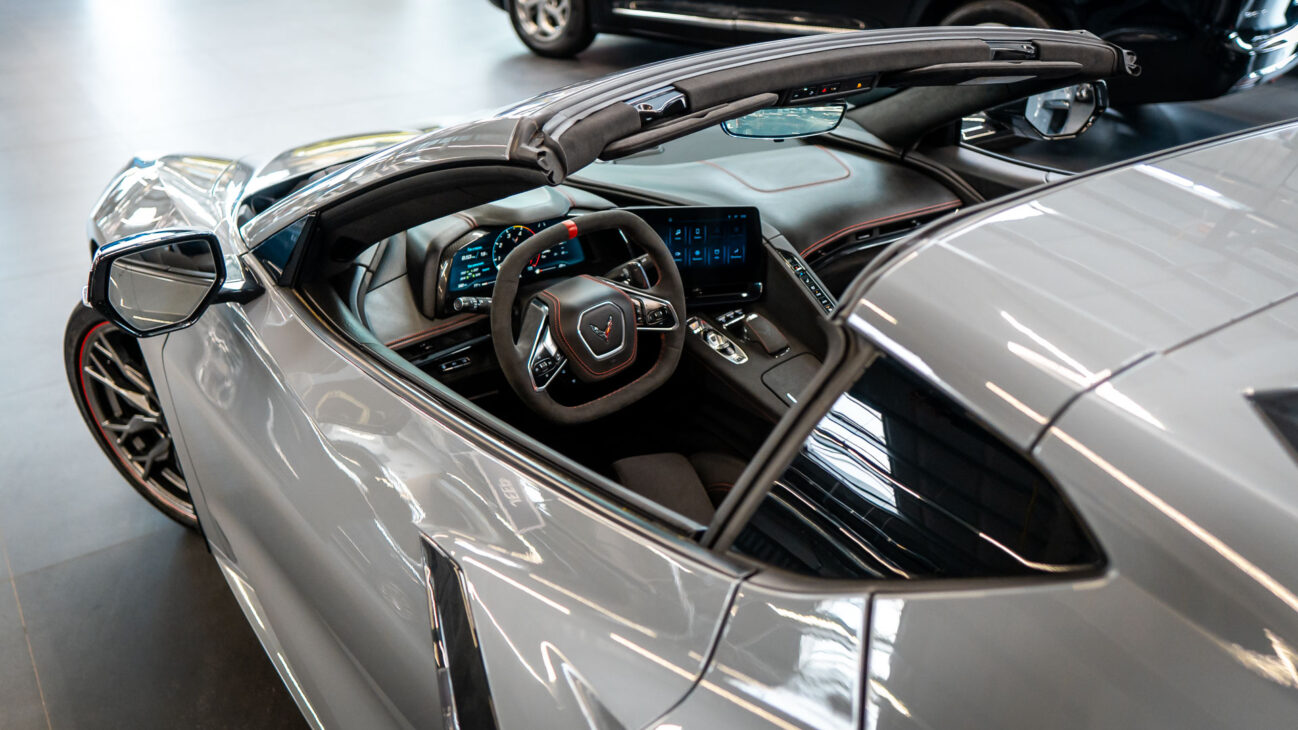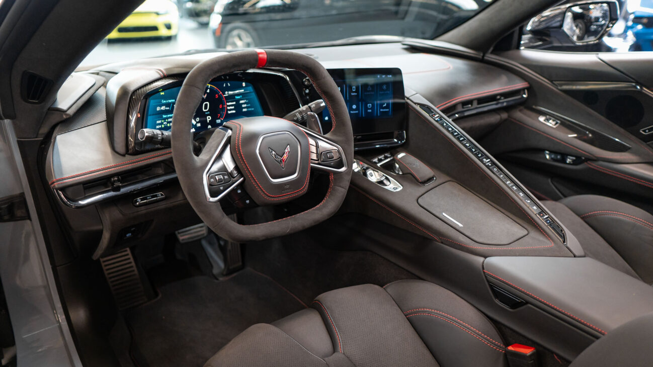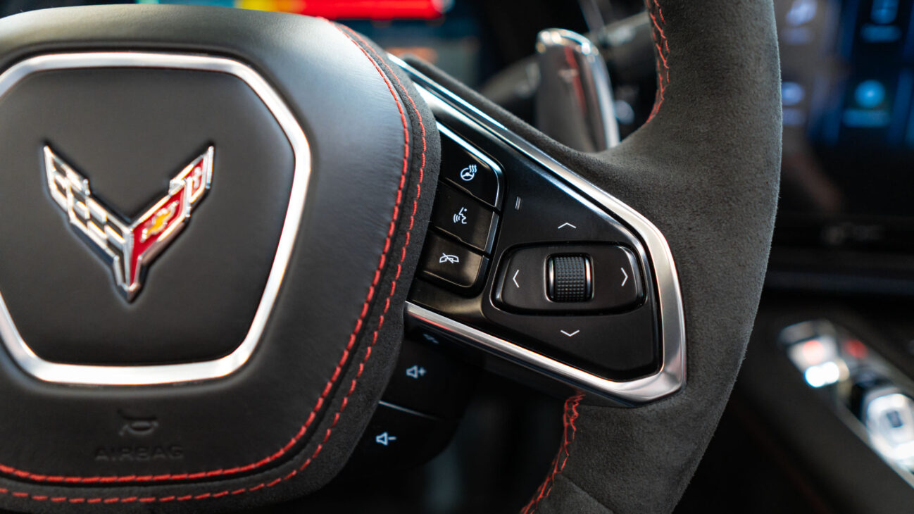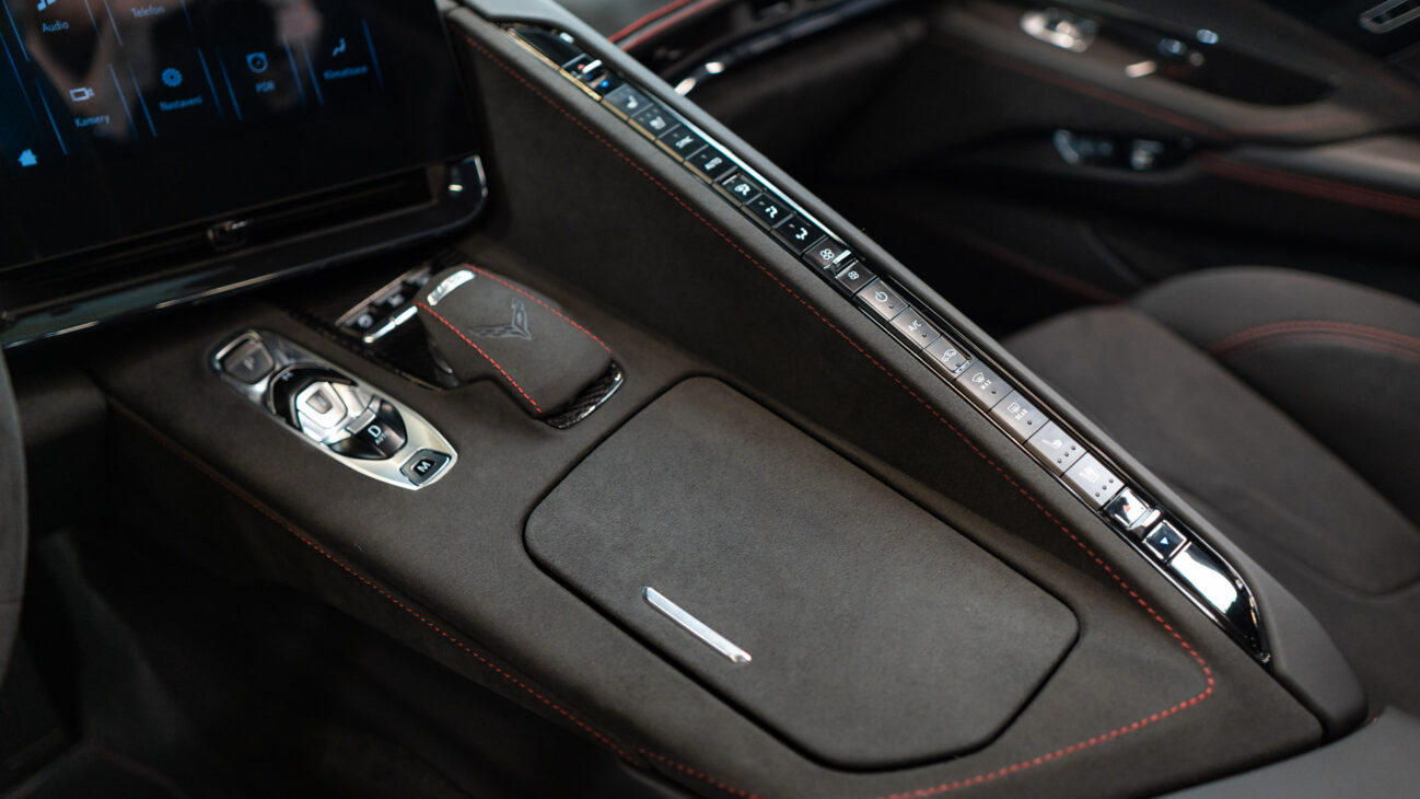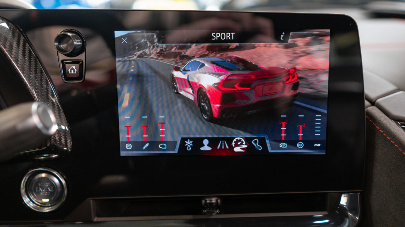 The Corvette C8 is equipped with top-tier technologies that elevate the driving experience to a new level. Thanks to the Z51 performance package, it gains larger brakes (13.3″ front, 13.8″ rear) and an electronic limited-slip differential (eLSD) that optimizes traction. The stability control system helps reduce wheel slip, and Magnetic Ride Control scans the road surface 1,000 times per second to instantly adjust the shock absorbers’ stiffness according to current conditions. Another innovation is the front axle lift system, which raises the nose by 40 mm, making it easy to clear speed bumps and park safely. This system can store specific locations via GPS and automatically activate the lift in preset areas.