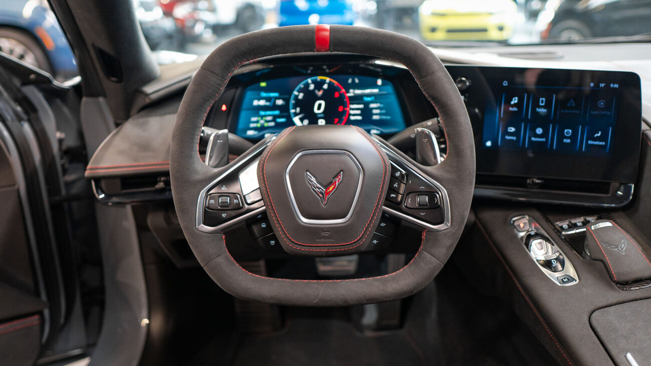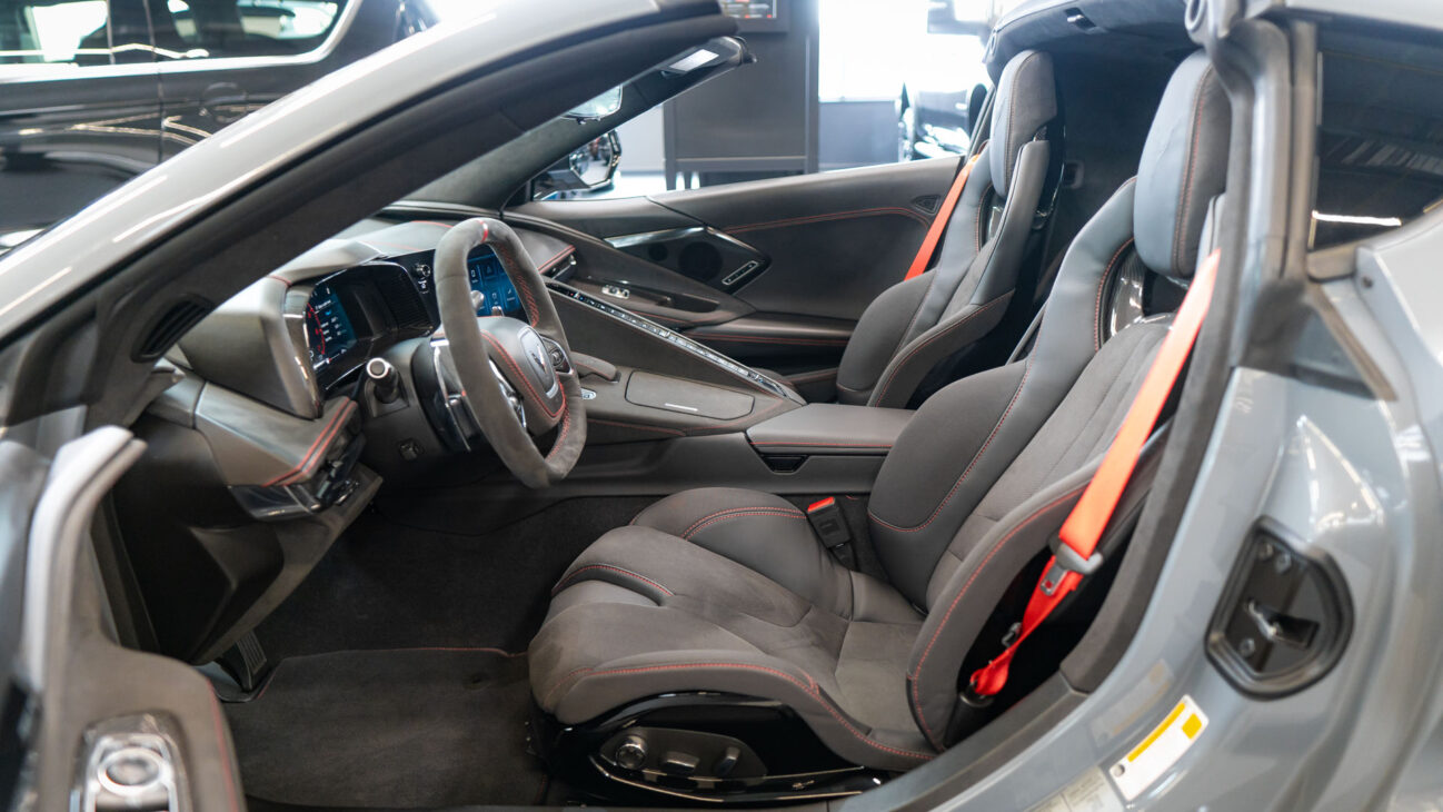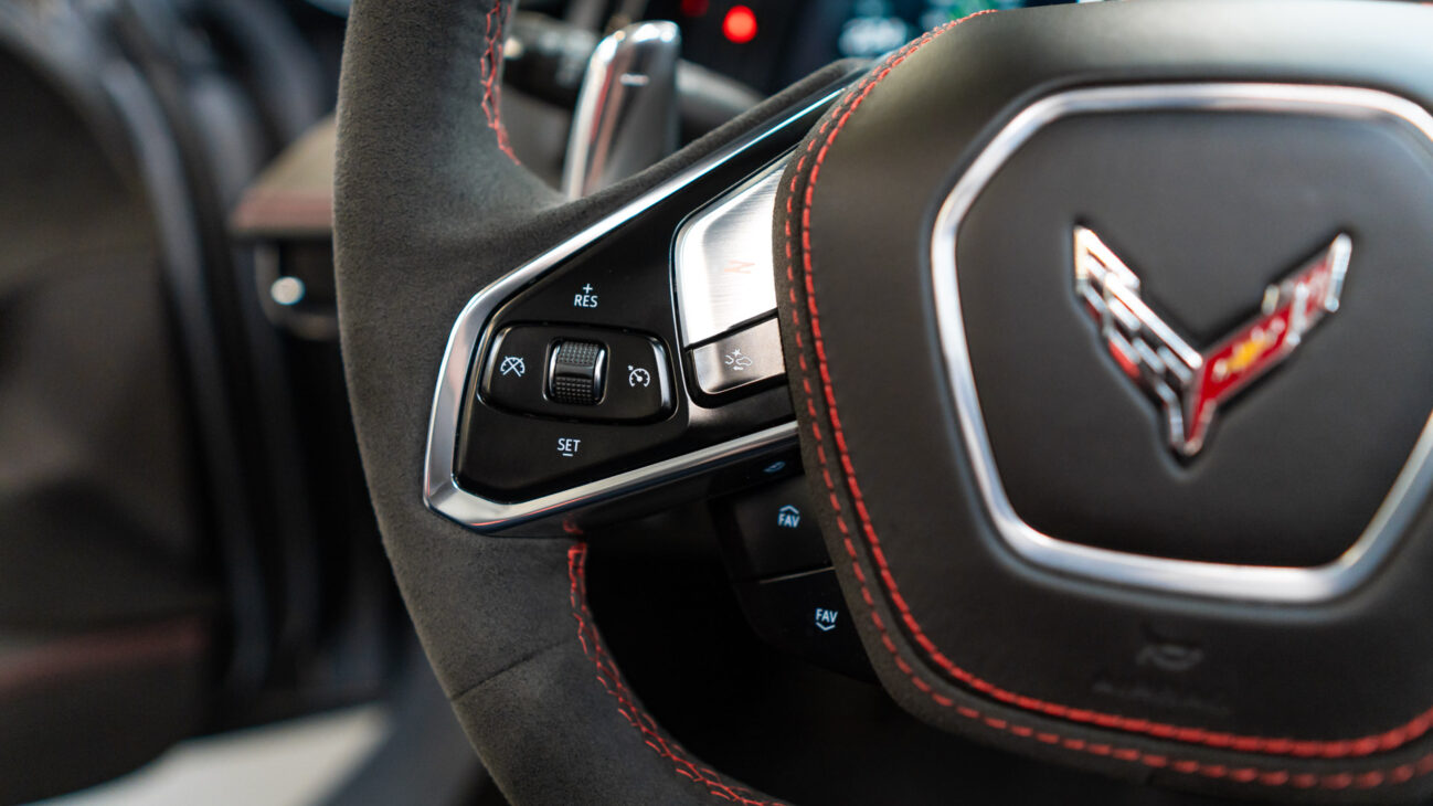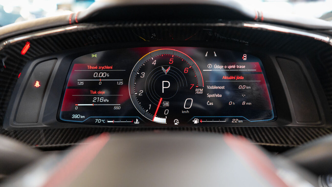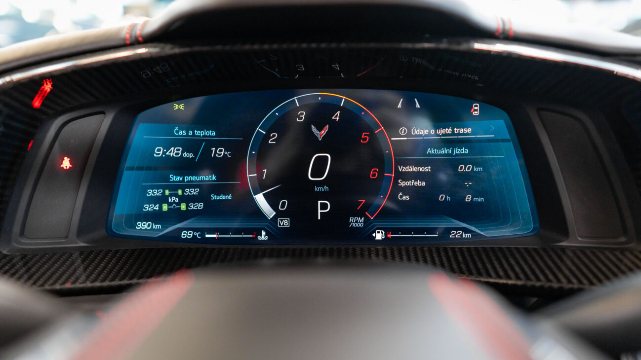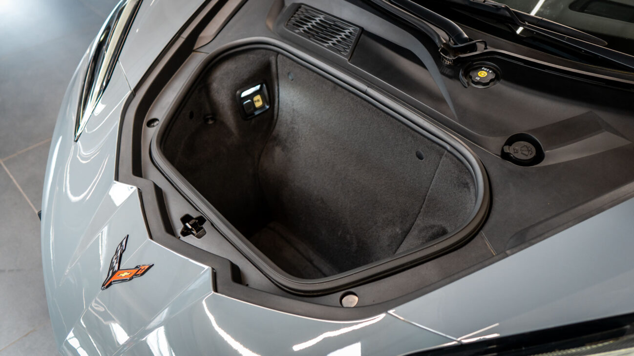 The Corvette C8 is equipped with top-tier technologies that elevate the driving experience to a new level. Thanks to the Z51 performance package, it gains larger brakes (13.3″ front, 13.8″ rear) and an electronic limited-slip differential (eLSD) that optimizes traction. The stability control system helps reduce wheel slip, and Magnetic Ride Control scans the road surface 1,000 times per second to instantly adjust the shock absorbers’ stiffness according to current conditions. Another innovation is the front axle lift system, which raises the nose by 40 mm, making it easy to clear speed bumps and park safely. This system can store specific locations via GPS and automatically activate the lift in preset areas.
