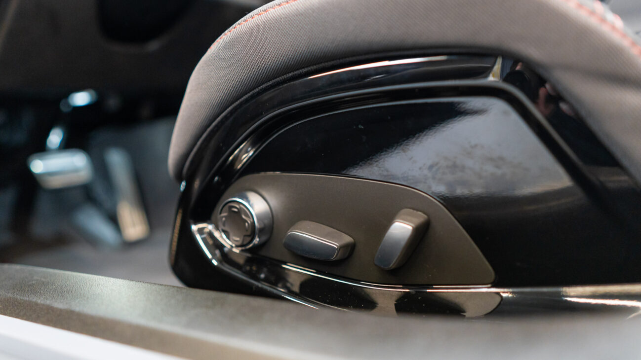 Performance-oriented bucket seats engineered to deliver enhanced lateral support during track use and high-performance driving; they feature durable performance textile in high-wear areas and carbon fiber trim for reduced weight and a distinctly motorsport-inspired appearance.