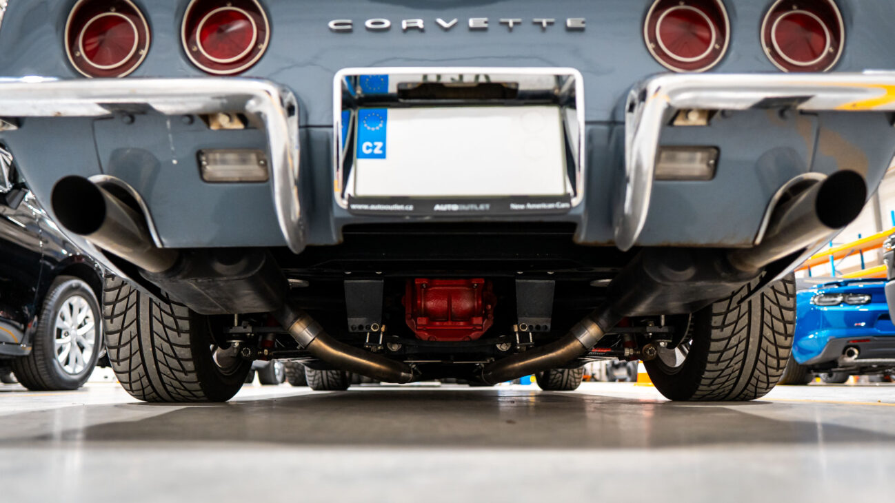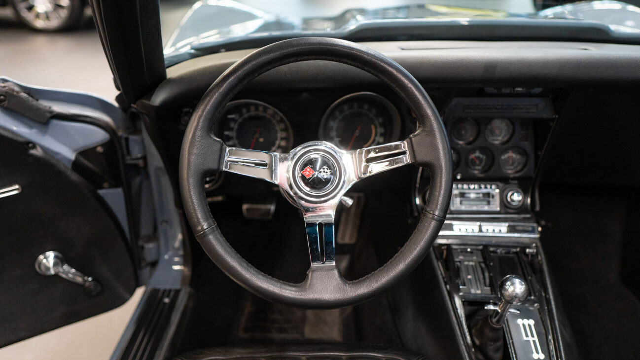 The Corvette C3 was highly advanced for its time. It uses independent suspension on all four wheels, a rarity among American sports cars of the 1960s. The front axle features double wishbones, while the rear uses a unique transverse composite leaf spring, helping the car maintain low weight and excellent driving dynamics. Four-wheel disc brakes ensure confident stopping, and power steering improves usability in everyday driving. The whole setup is tuned to provide a balance between comfort and sporty sharpness — exactly what Corvette drivers valued most.