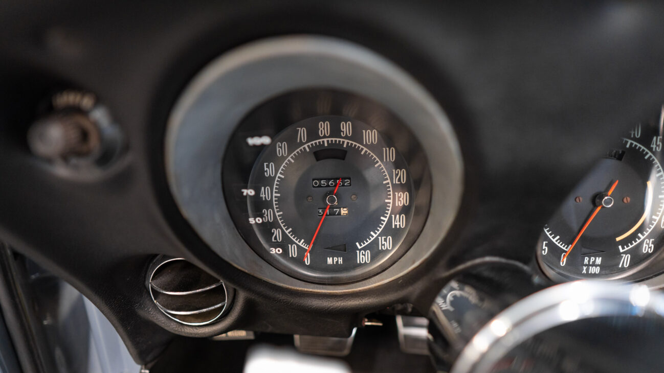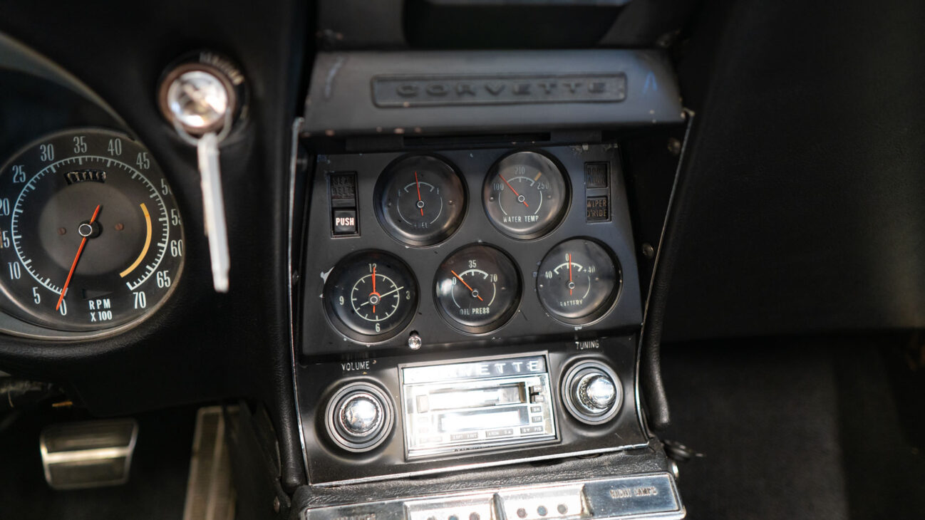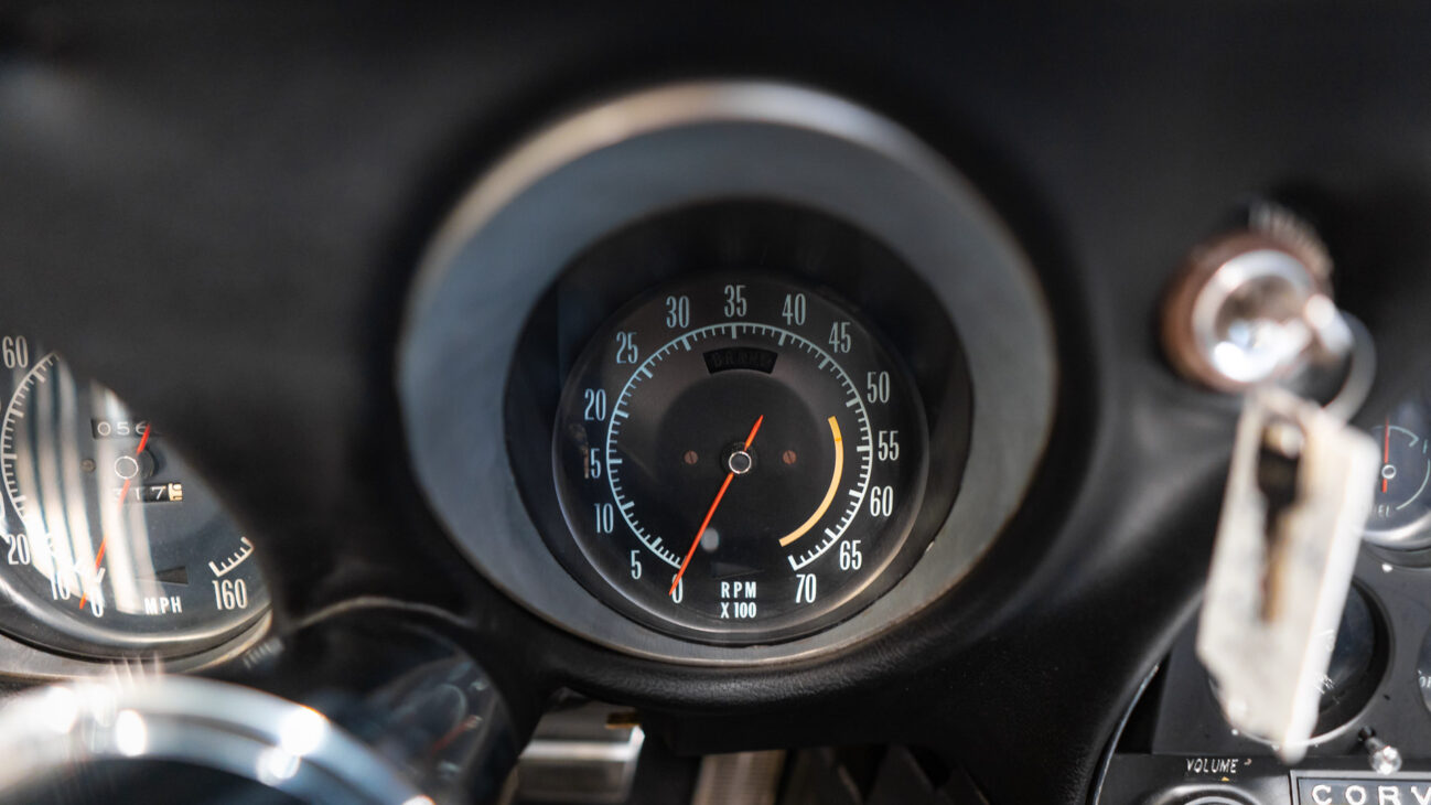 The cabin of the first C3 blends a cockpit-like layout with the elegance of the sixties. Twin gauge pods in front of the driver, the typical vertical arrangement of auxiliary gauges, and the low seating position create the atmosphere of a true racing machine.
