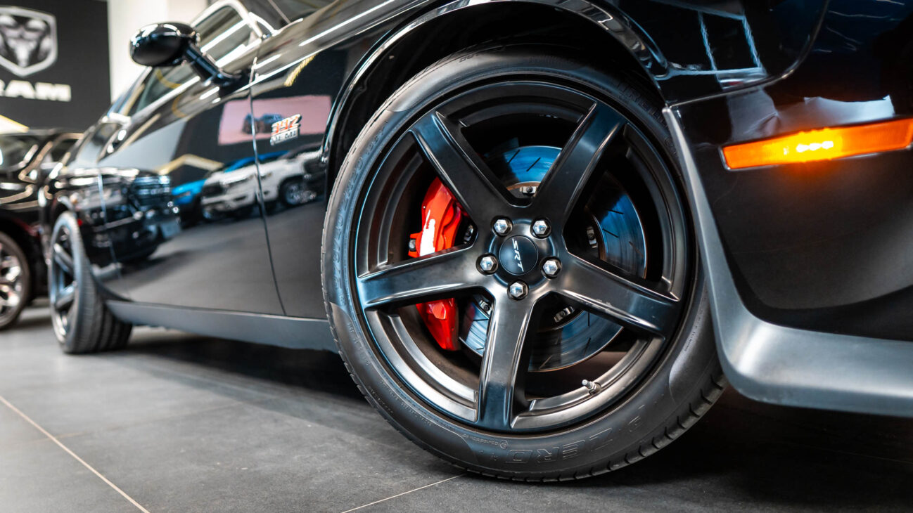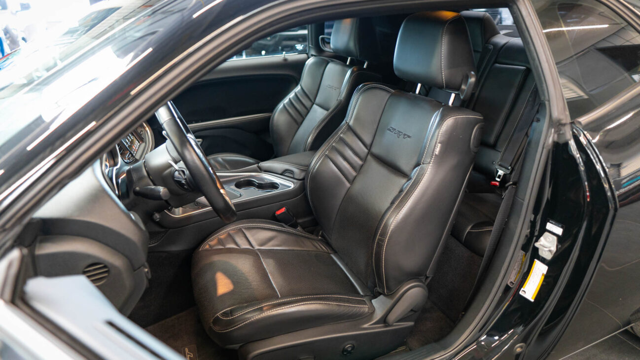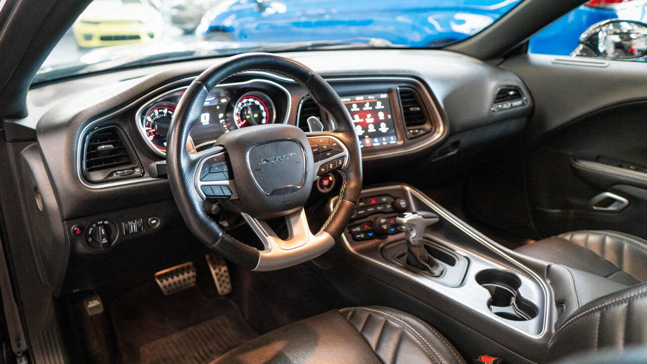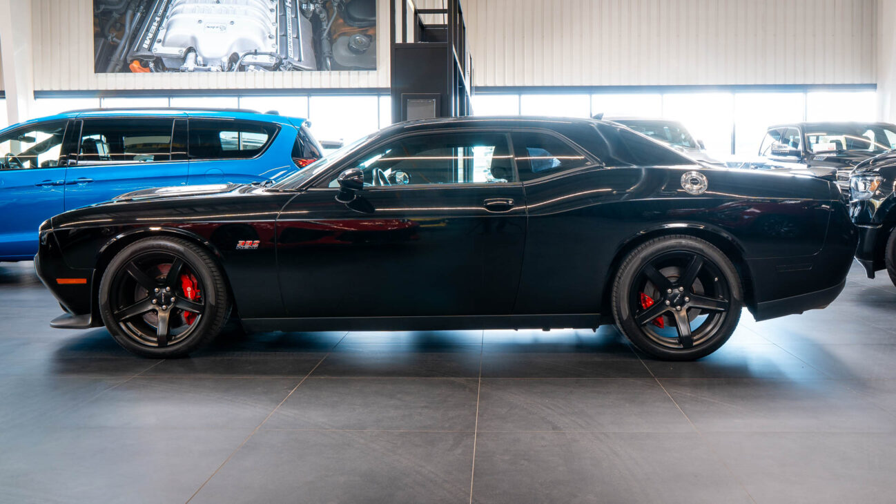 Dodge Challenger SRT 392. Powerfull engine 6,4L HEMI V8 with 485HP and maximum torque 644N.m! Acceleration from 0 to 100 kilometers per 4.3s, top speed 292km/h (manual). The new 8-speed automatic transmission TorqueFlite. Brembo brakes 15.4″ two-piece slotted and ventedfront rotors paired with beefy Brembo six-piston calipers and 13.8-inch rotors in the rear.
