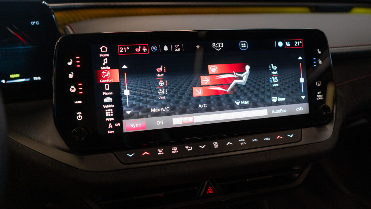 The interior of the Charger Daytona Scat Pack is dominated by modern, premium digital technologies. A large 16-inch high-resolution digital instrument cluster, Uconnect 5 infotainment system with a 12.3-inch touchscreen, and a fully configurable head-up display put critical information directly in the driver’s line of sight. Beyond full connectivity with a 4G Wi-Fi hotspot, comfort features, and selectable drive modes, the infotainment system provides access to a wide array of performance data. Performance Pages allow drivers to measure and display: acceleration, braking distance and time, longitudinal and lateral G-forces, steering angle, including a complete history and best recorded values. Drivers can monitor current power output, torque distribution, wheel slip, battery temperature, and charge status. The EV view provides a comprehensive overview of energy usage and power flow, allowing adjustment of charging schedules and real-time monitoring of vehicle energy distribution. Standard wireless support for Android Auto, Apple CarPlay, and Amazon Alexa allows voice commands for adjusting cabin temperature, checking battery status, entering navigation destinations, or even remotely starting the vehicle.