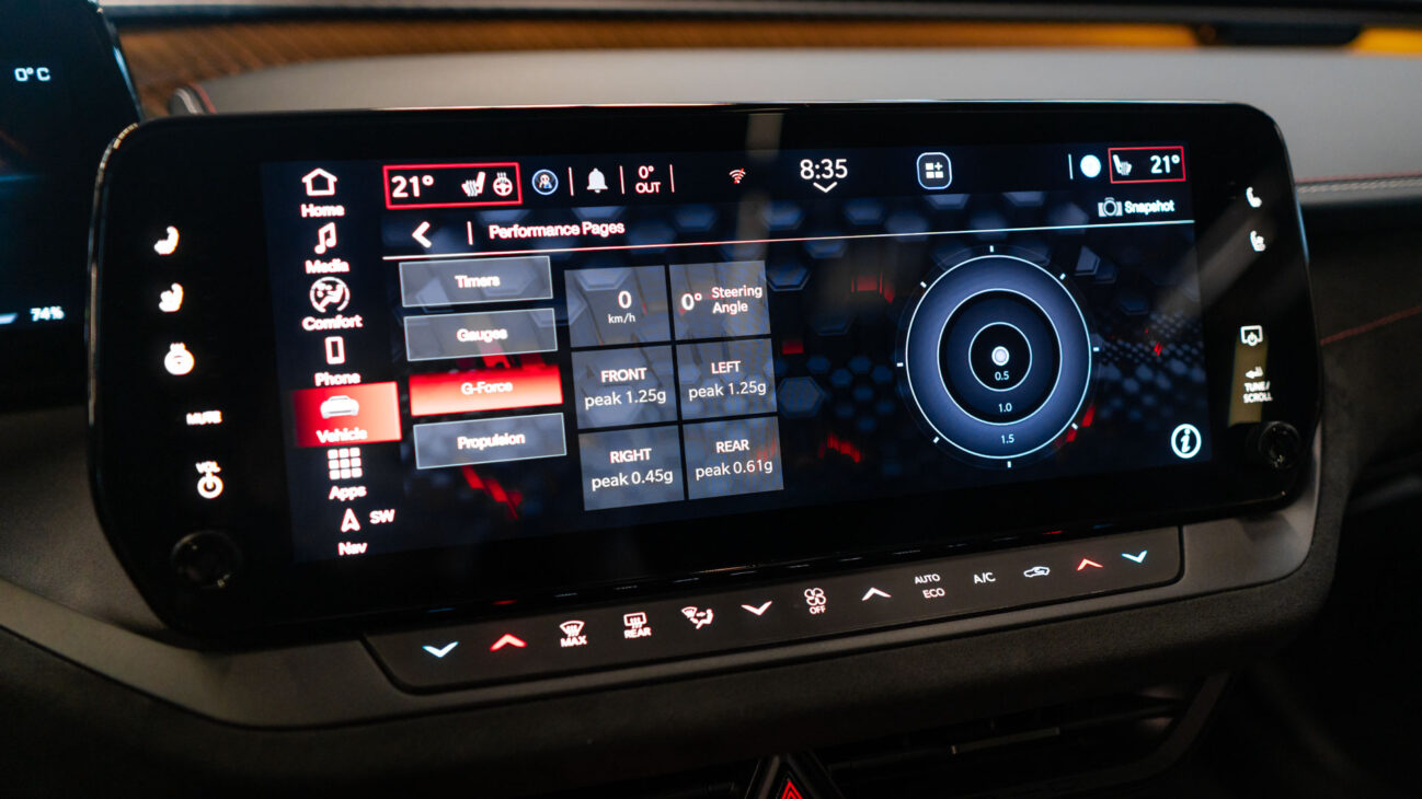 Driver’s Cluster with Map-in-Cluster Navigation – bringing guidance and performance data directly into the driver’s line of sight.