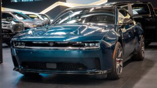 The vehicle’s sporty chassis and drivetrain systems are configurable through Dodge’s SRT Drive Modes. These allow adjustments to transmission shifts, throttle response, suspension stiffness, and steering assist, with three performance levels: Street, Sport, and Track. Drive modes offer four presets: Auto for everyday driving, with only suspension stiffness and steering assistance customizable; Sport for more aggressive performance; Track for the most extreme power and handling, ideal for track use; and Custom, where all systems can be individually configured to the driver’s preference across three performance levels.