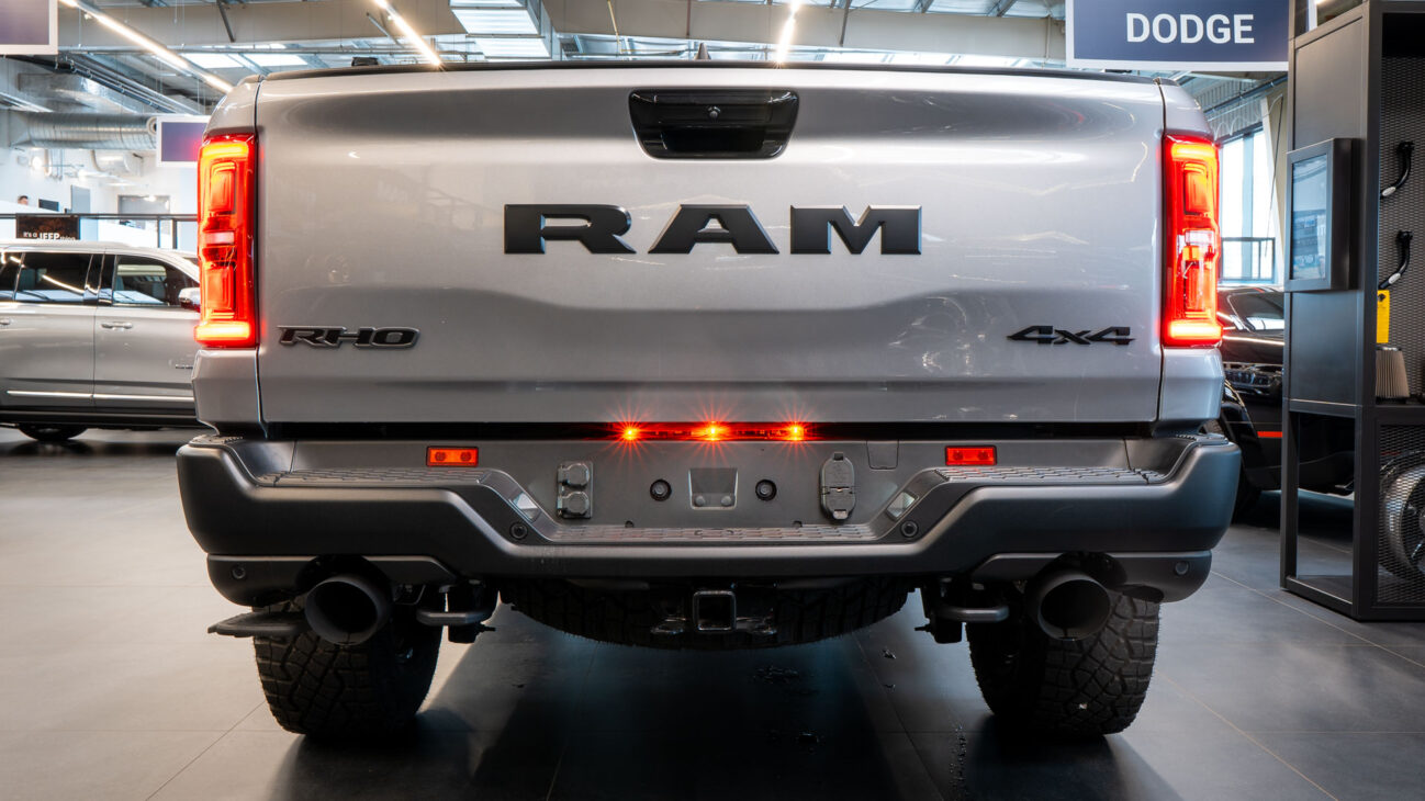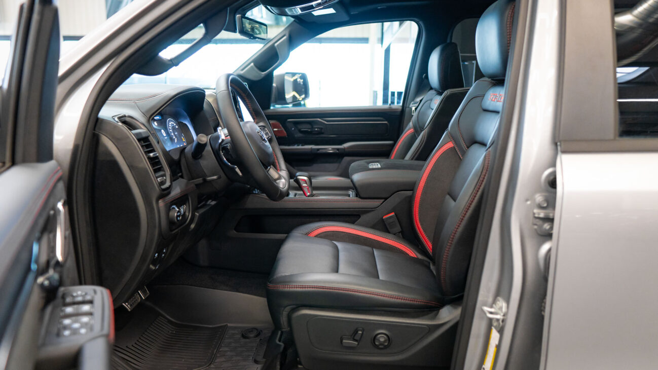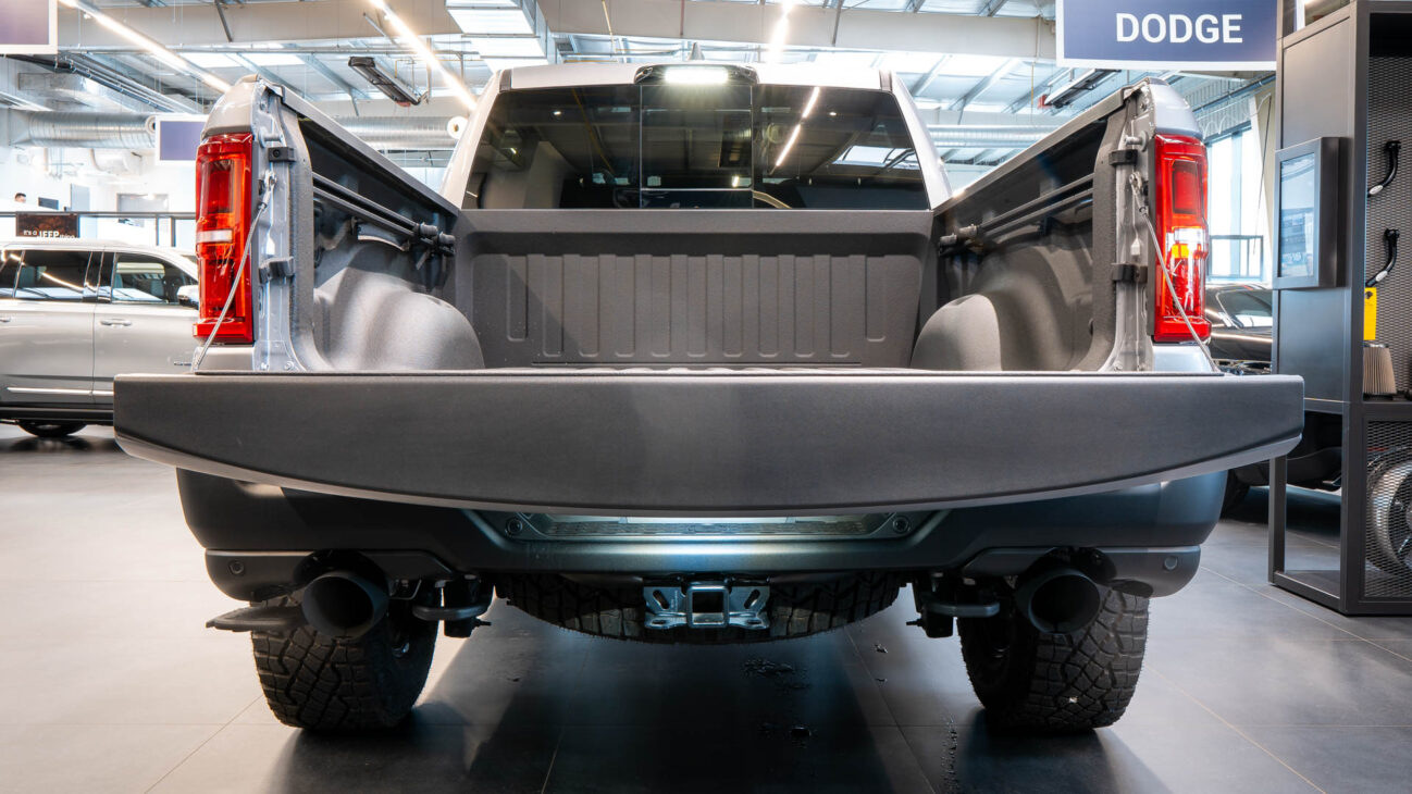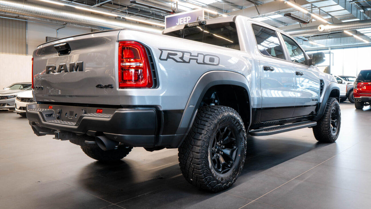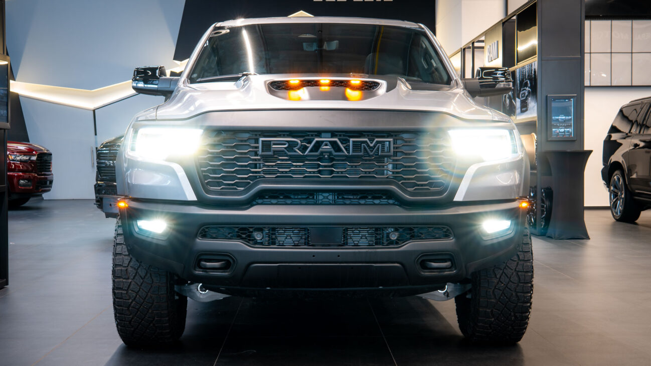 New RAM 1500 RHO. 3.0L I6 Hurricane HO Twin Turbo Engine power 540HP and 706 Nm of maximum torque. Stellar driving experience due to adaptive Bilstein Black Hawk shocks. Completely digital instrument cluster. Its functions are more readable and thus the interior is cleaner and modern. The Head-Up display also received an update with clearer appearance and expanded functionality. Full premium leather, racing inspired steering wheel with big paddle shifters. Drive modes, Launch Control, Performance pages and other track oriented features, the same found in top level Challengers. TRX marks a return of a traditional shift knob. 4WD drive, 18″ alloy wheels with 35″ offroad tires. Extreme offroad modes for Rock Crawl or extreme hill descent.