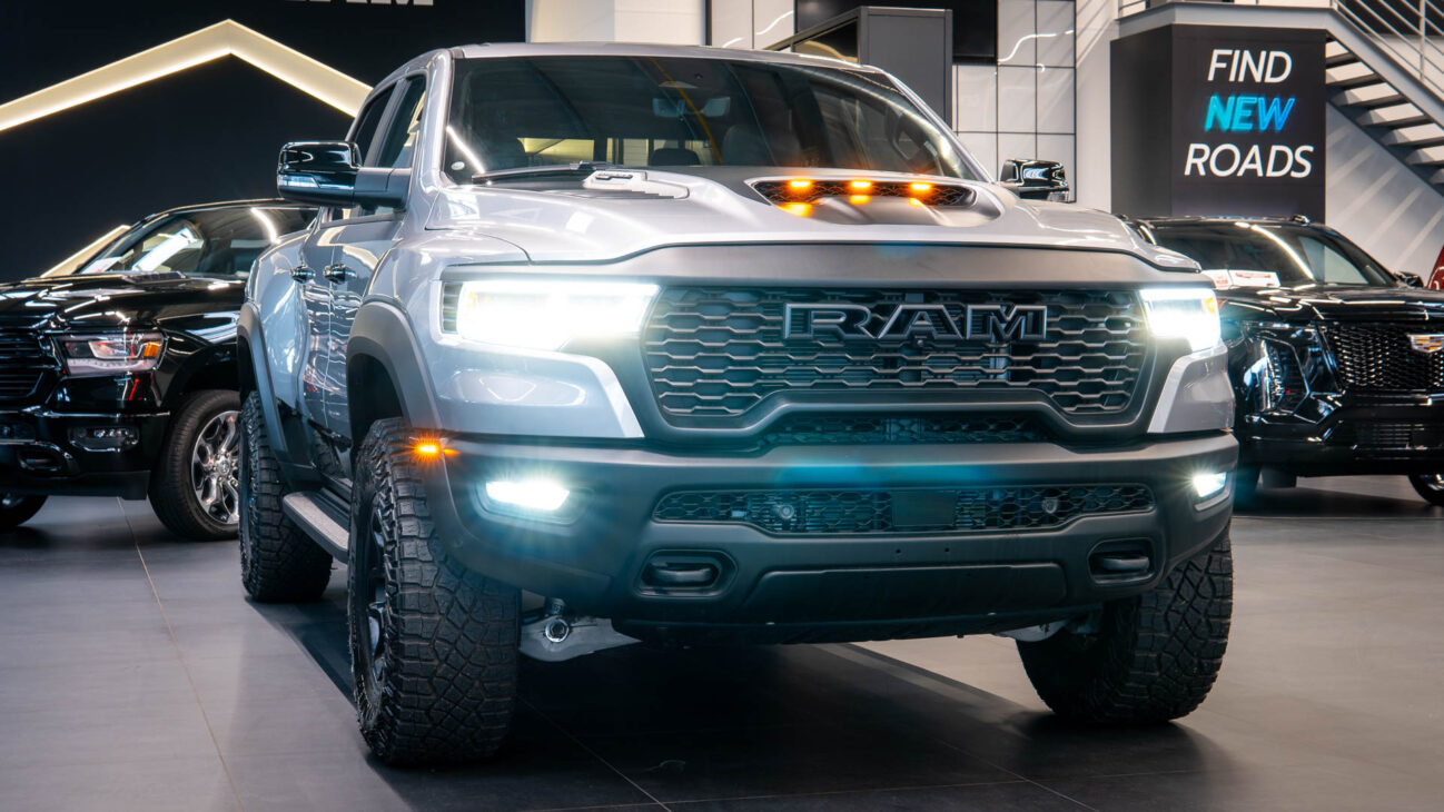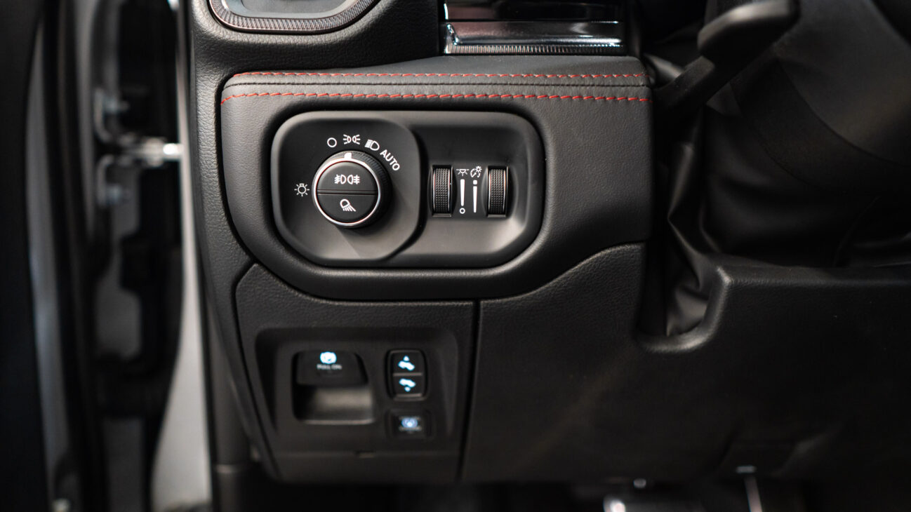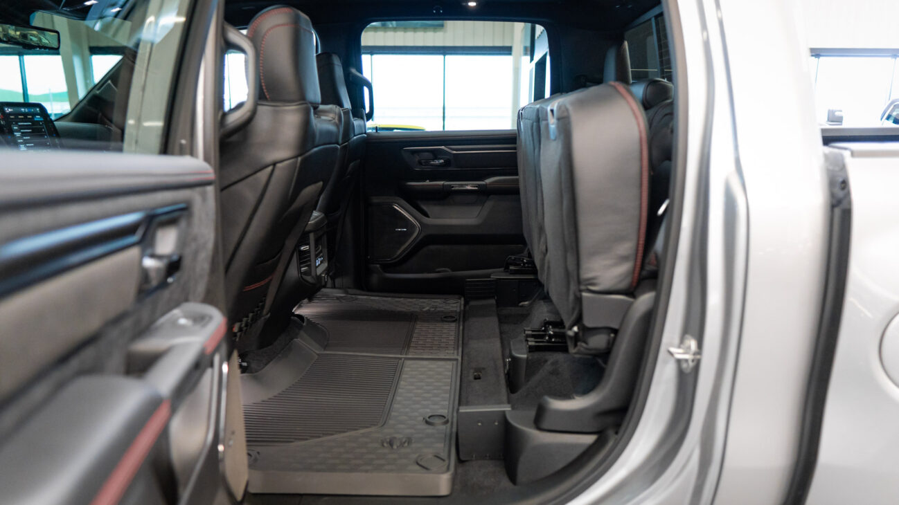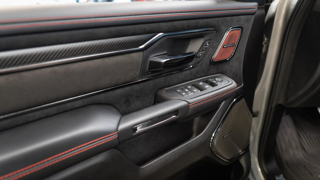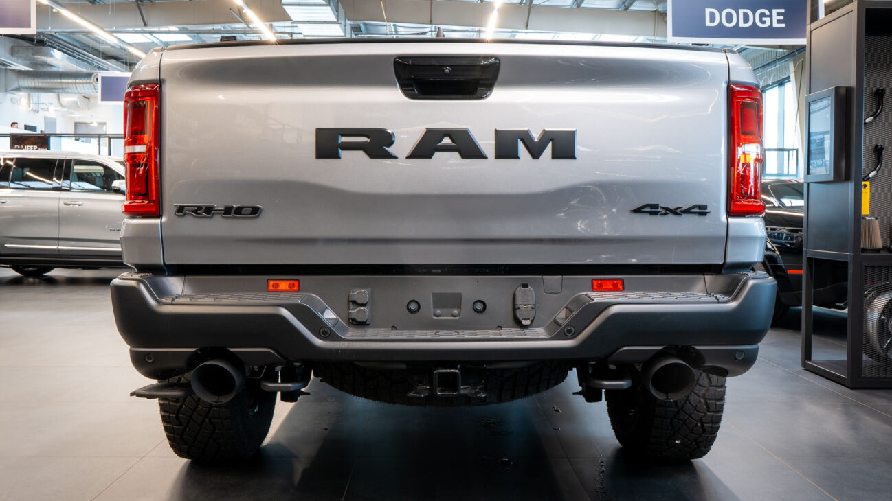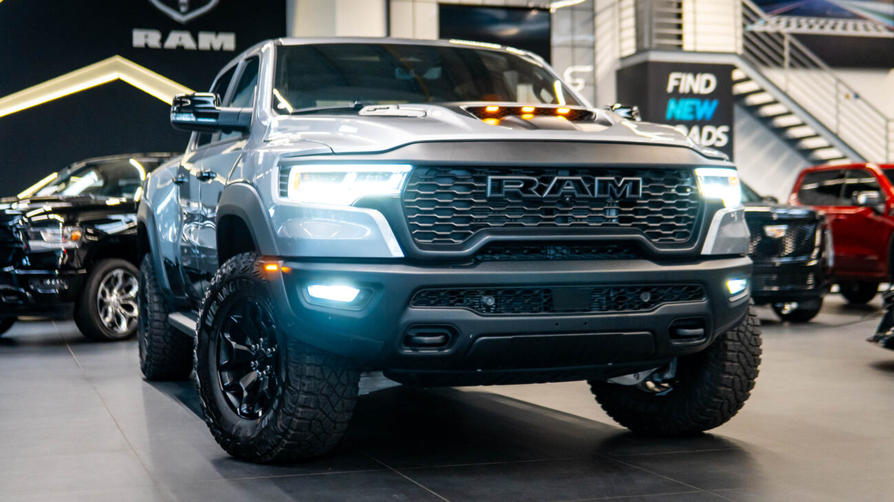 New RAM 1500 RHO. 3.0L I6 Hurricane HO Twin Turbo Engine power 540HP and 706 Nm of maximum torque. Stellar driving experience due to adaptive Bilstein Black Hawk shocks. Completely digital instrument cluster. Its functions are more readable and thus the interior is cleaner and modern. The Head-Up display also received an update with clearer appearance and expanded functionality. Full premium leather, racing inspired steering wheel with big paddle shifters. Drive modes, Launch Control, Performance pages and other track oriented features, the same found in top level Challengers. TRX marks a return of a traditional shift knob. 4WD drive, 18″ alloy wheels with 35″ offroad tires. Extreme offroad modes for Rock Crawl or extreme hill descent.