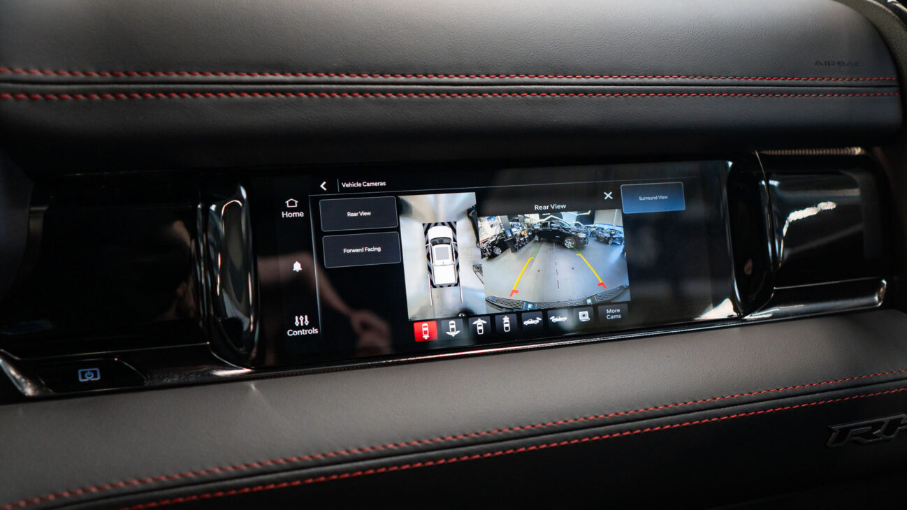Blind-Spot & Cross-Path Detection – Blind zone warning system with assistent for rear vehicle detection when coming alongside parked vehicles, body-colour door handles. Driver seat w/memory setting, exterior mirrors w/memory settings, front door accent lighting, front seats with massage, heated and ventilated seats, full-length upgraded floor console, heated steering wheel, interior assist handles, IP LED ambient light pipe, leather/suede flat-bottom steering wheel, foam seat cushion. LED bed lighting, luxury front door trim panel. Park-Sense Front & Rear Park Assist, power adjustable pedals w/memory, premium wrapped IP bezel, radio/driver seat/mirrors/pedals memory, rain-sensing windshield wipers, rear 60/40 folding & reclining seat, rear door accent lighting, rear underseat compartment storage, second-row heated and ventilated seats, rear window defroster, remote proximity keyless entry, remote start system, remote tailgate release, sun visors w/illuminated vanity mirrors, surround view camera system, trailer brake control.