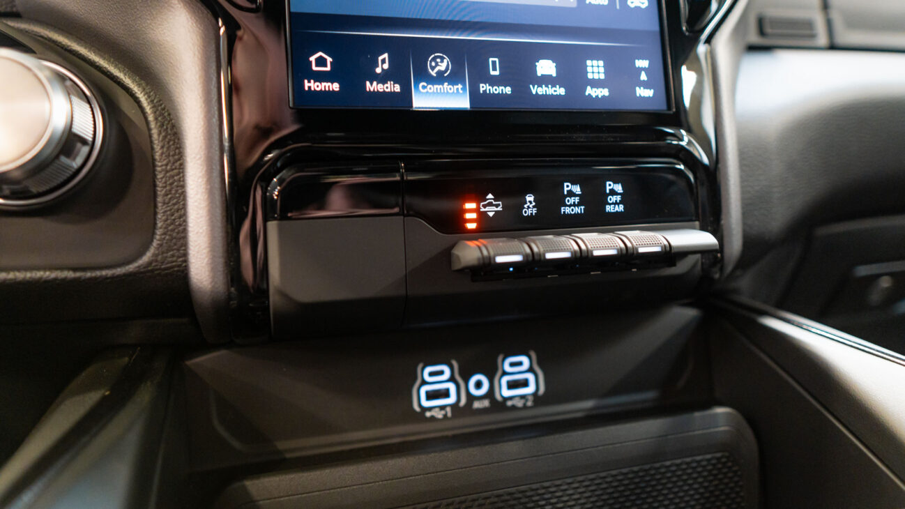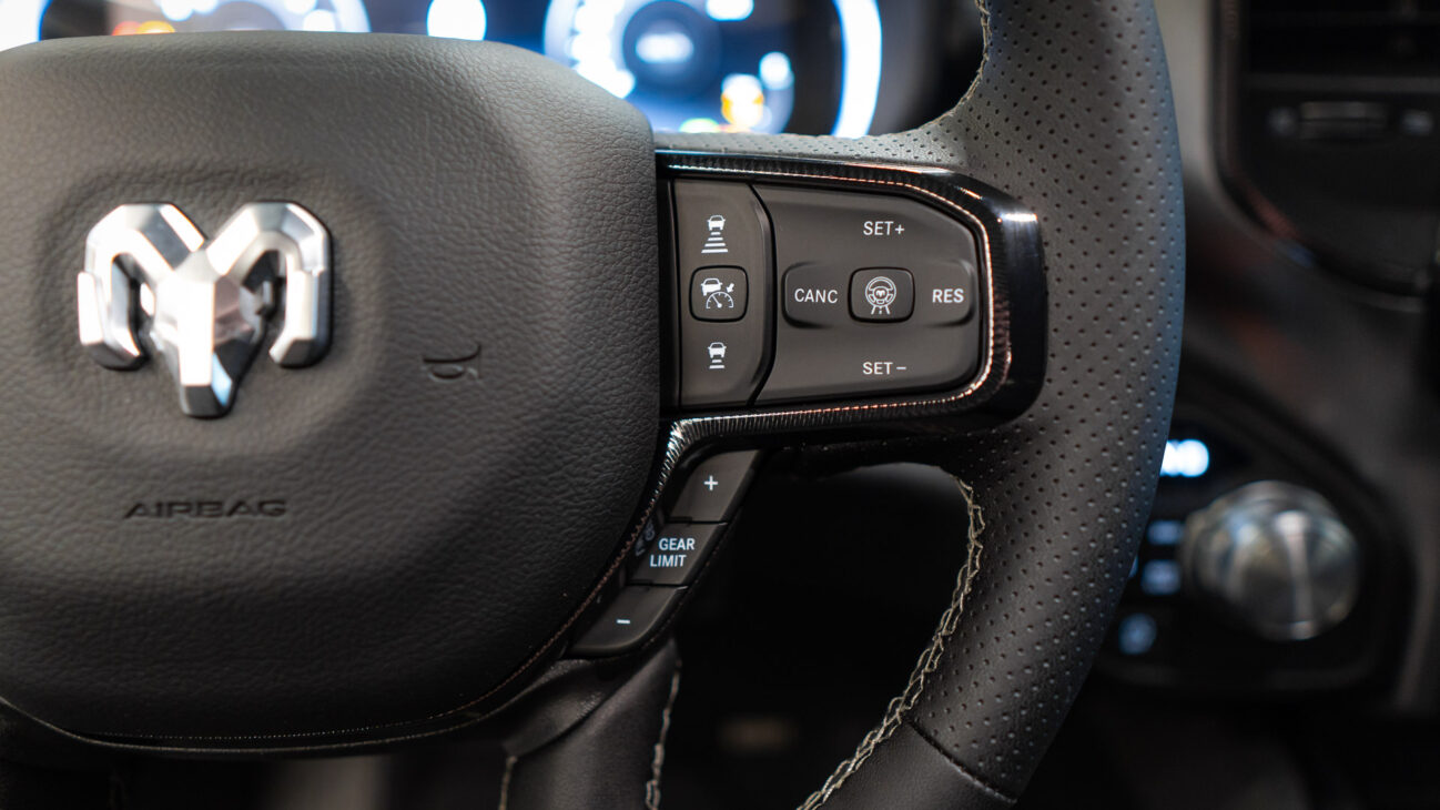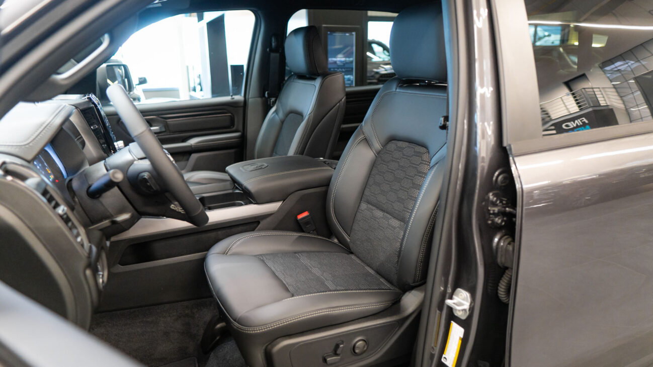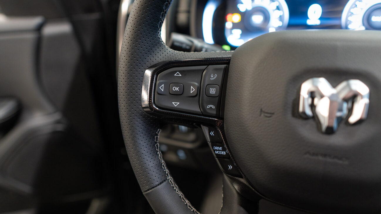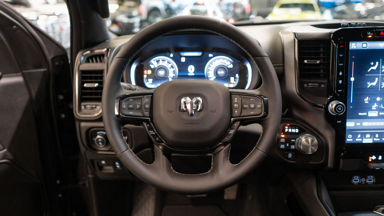 UConnect 5 Nav infotainment system with huge 12″ screen provides control over all the vehicle’s functions though RAM still keeps the most important comfort features as physical buttons like climate control, radio volume and others. UConnect 5 of course supports both Apple CarPlay and Android Auto.