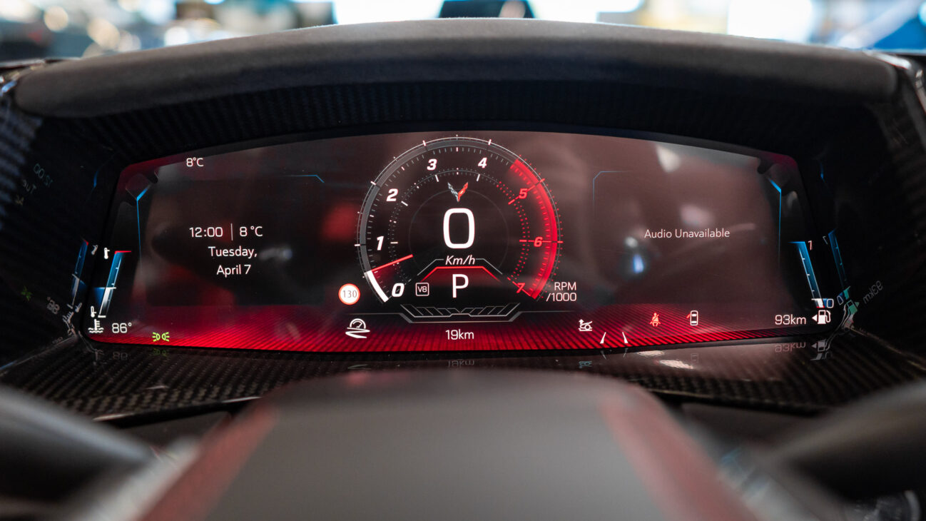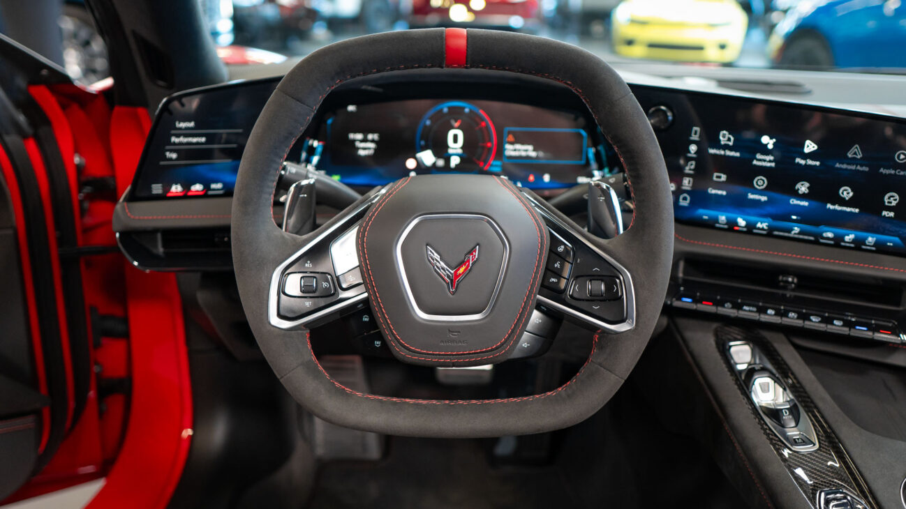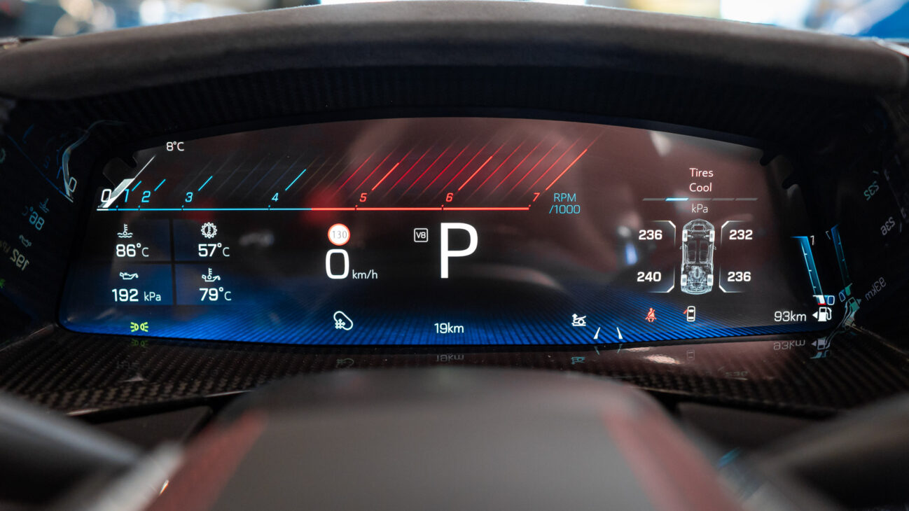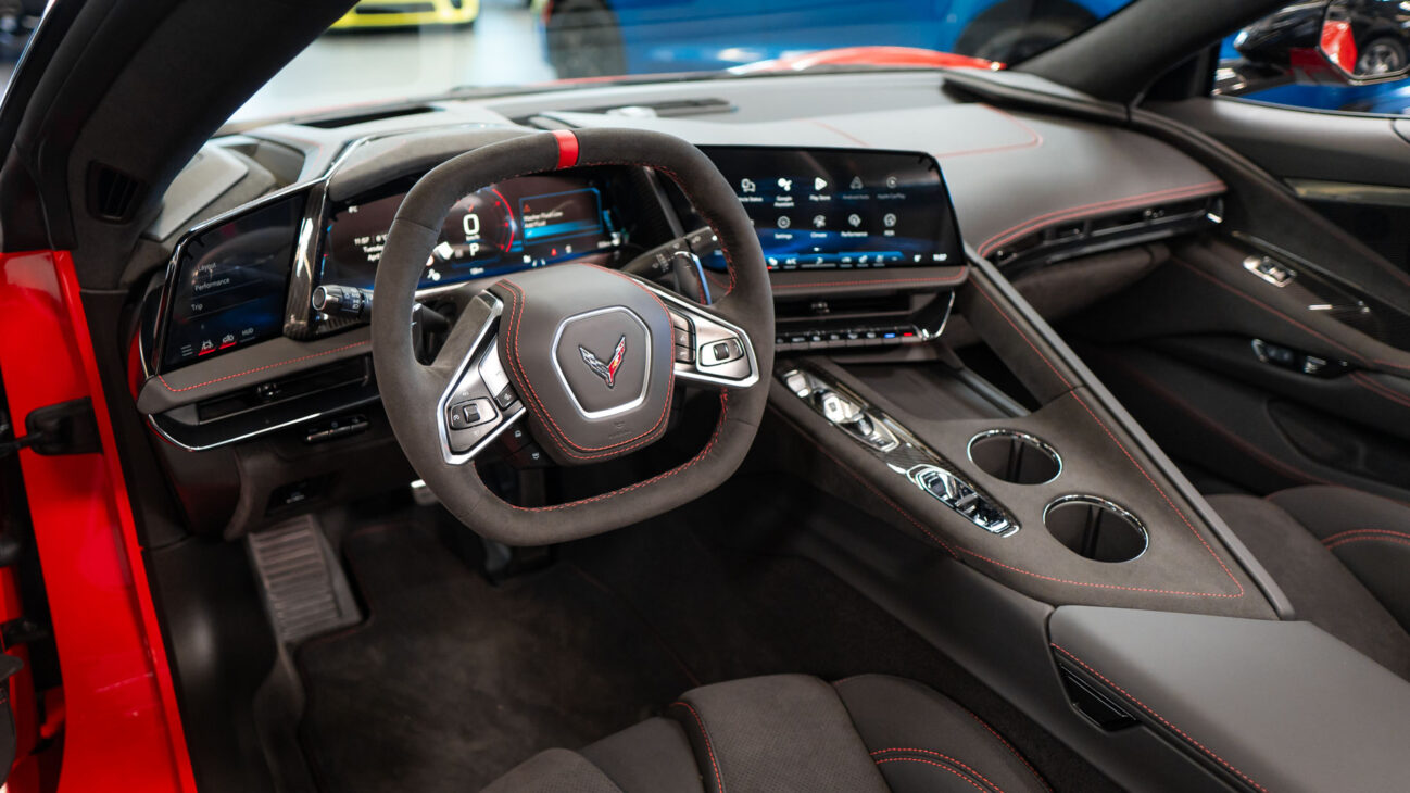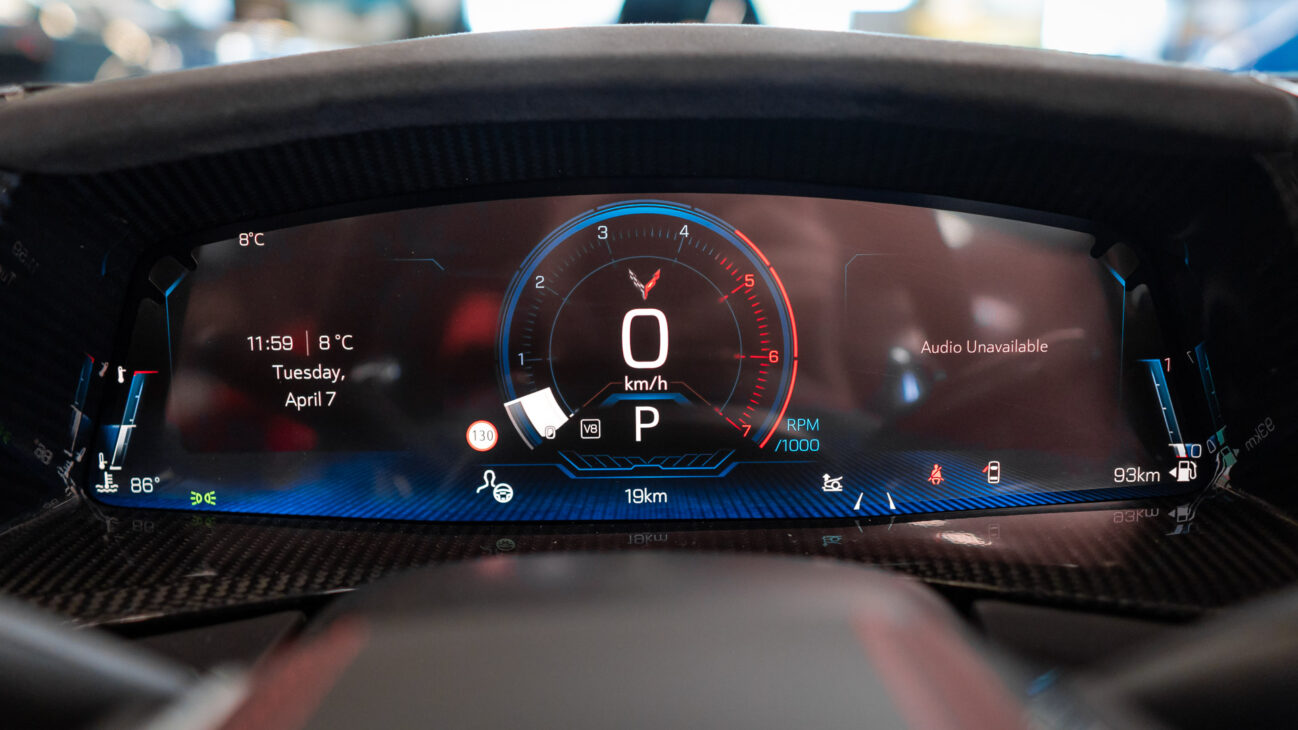 Nový model Corvette C8 prináša kompletne prepracovaný digitálny kokpit tvorený tromi nezávislými displejmi. Pred vodičom sa nachádza väčší 14″ digitálny prístrojový štít, ktorý ponúka vyššiu úroveň personalizácie, integráciu vybraných funkcií Google a graficky zjednotené rozloženie s ostatnými obrazovkami. Vľavo od volantu je nová 6,6″ pomocná obrazovka určená na zobrazovanie telematiky a výkonnostných dát, vrátane údajov z Performance Data Recorderu. Vpravo je umiestnený úplne nový infotainment s uhlopriečkou 12,7″, dynamicky natočený smerom k vodičovi.