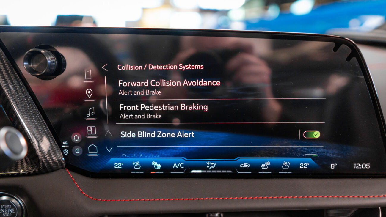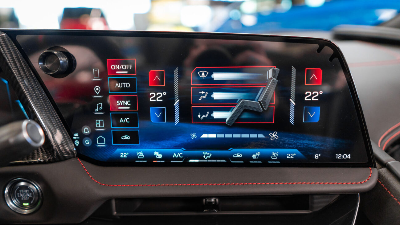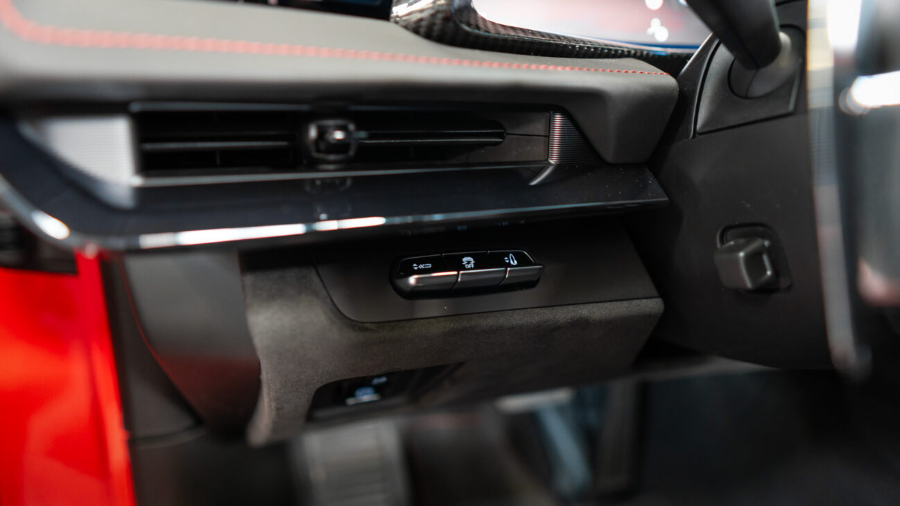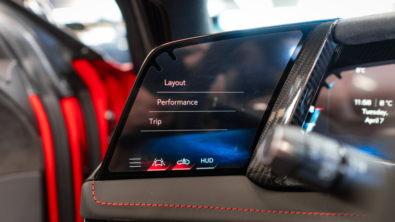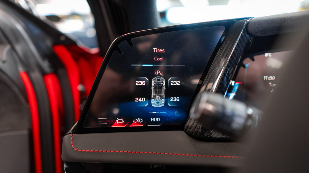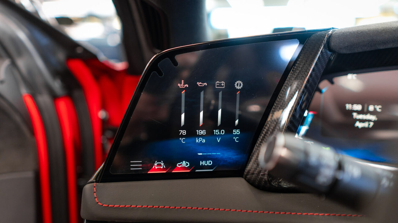Systém využíva moderné TFT/LCD panely s vysokým rozlíšením a rýchlejšou odozvou oproti predchádzajúcej generácii. Infotainment je postavený na platforme Google Built-In s integrovanými službami Google Maps, Google Play a hlasovým ovládaním. Celkové usporiadanie kokpitu je optimalizované pre rýchle prepínanie medzi aplikáciami, jazdnými režimami, výkonnostnými štatistikami, navigáciou a médiami, pričom grafika sa môže meniť podľa zvoleného jazdného režimu. Systém podporuje bezdrôtovú projekciu mobilných zariadení, bezdrôtové nabíjanie telefónu a zachováva USB-C konektivitu. Interiér vozidla spája precízne spracovanie s rýdzo športovým charakterom – povrchy čalúnené prémiovou kožou Nappa dopĺňajú výrazne tvarované perforované sedadlá Competition Sport Seats, ktoré poskytujú maximálnu oporu pri dynamickej jazde bez kompromisu v oblasti komfortu. Sedadlá sú elektricky nastaviteľné v 8 smeroch, vyhrievané aj odvetrávané a vybavené pamäťou nastavenia.