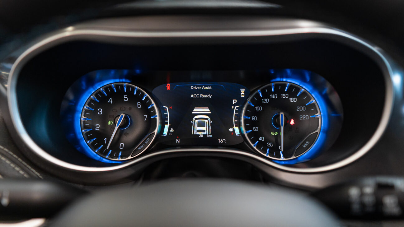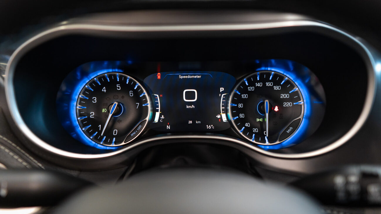 Vodič má k dispozícii 7-palcový konfigurovateľný digitálny prístrojový panel s prehľadom jazdných údajov a navigačných pokynov. Modernizovaný infotainment Uconnect 5 ponúka 10,1-palcový dotykový displej s vysokým rozlíšením a integrovanú hlasovú podporu Amazon Alexa, ktorá umožňuje ovládanie hudby, počasia, správ, dopravných informácií alebo úloh len hlasovým príkazom. Infotainment podporuje až 5 používateľských profilov s uloženými predvoľbami pre telefón, komfortné nastavenia, príkazy Alexy a zvuk. Plnú konektivitu zaisťuje 4G LTE Wi-Fi hotspot, vrátane bezdrôtového Apple CarPlay a Android Auto. Audio systém pozostáva zo 6 reproduktorov.