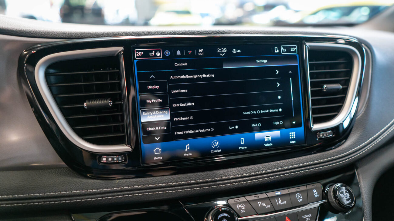 Ako rodinné vozidlo je Pacifica štandardne vybavená širokou škálou asistenčných systémov vrátane adaptívneho tempomatu s funkciou Stop and Go, varovania pred kolíziou s aktívnym núdzovým brzdením, brzdového asistenta, monitorovania mŕtveho uhla a asistenta pre cúvanie z parkovacích miest. Voliteľný balík Safety Sphere zvyšuje bezpečnosť a komfort, poskytuje kamerový systém Surround 360 pre pohľad z vtáčej perspektívy a automatického asistenta pre parkovanie s prednými aj zadnými senzormi. Dynamický dizajn exteriéru dopĺňajú 18-palcové hliníkové disky, úzke LED svetlomety s LED denným svietením a tmavé zadné okná pre druhý a tretí rad sedadiel, ktoré vytvárajú útulnú atmosféru.