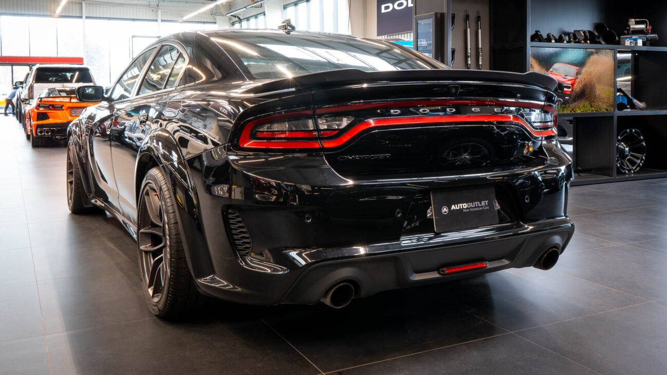 Dodge Charger Scat Pack Widebody. Tento unikátny voz s dlhou históriou bohužiaľ ukončil svoju výrobu na konci minulého roku. Napriek tomu máme v sklade najväčší výber týchto ikonických vozidiel s osemvalcovými motormi. Model Scat Pack je vybavený motorom 392 HEMI s objemom 6.4L V8, ktorý poskytuje výkon 485HP a maximálny krútiaci moment 644Nm. Tento motor, známy svojím fantastickým zvukom, zrýchľuje vozidlo z 0 na 100 km/h za 4,5 sekundy a dosahuje maximálnu rýchlosť 281 km/h. Pohon vozidla zabezpečuje 8-stupňová automatická prevodovka TorqueFlite s možnosťou priameho radenia cez páčky pod volantom Paddle Shift alebo pomocou funkcie Autostick na radiacej páke. Masívny výkon vozidla krotia brzdy značky Brembo, ktoré sú v najvyššej výkonnostnej špecifikácii pre modely R/T Scat Pack a vyššie. Predné šesťpiestikové strmene sú kombinované s dvojdielnymi vetranými kotúčmi o priemere 392 mm, zadné kotúče majú priemer 350 mm.