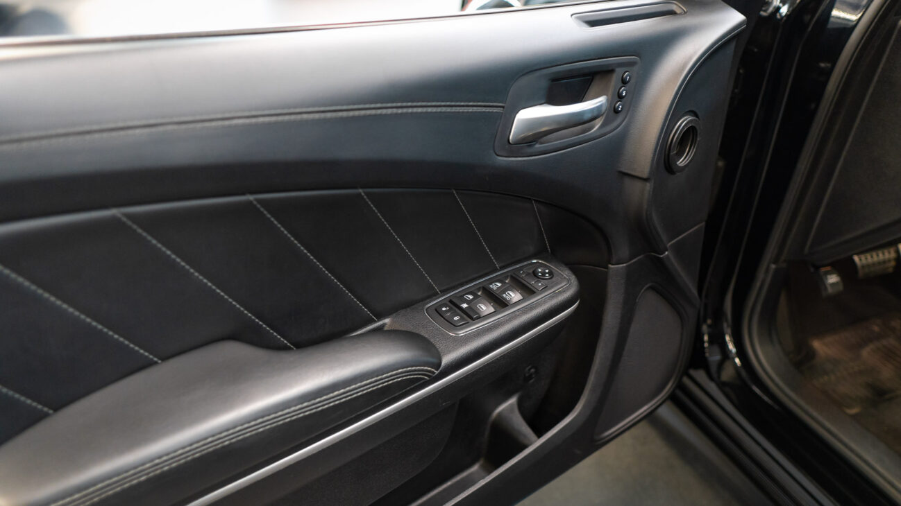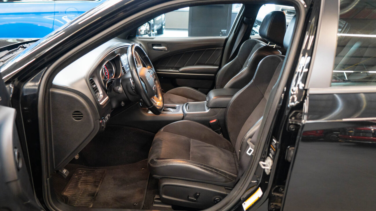 Interiér vozidla ponúka predné športové kožené sedačky v kombinácii s Alcantarou, ktoré sú vyhrievané a ventilované. Obe predné sedačky sú elektricky nastaviteľné v 6 smeroch, pričom sedačka vodiča má možnosť uloženia do pamäte. Zadné sedačky sú vyhrievané. Športový volant má hrubý veniec pre pravý pocit z muscle car. Multifunkčný kožený volant je elektricky nastaviteľný a vyhrievaný. Robustná palubná doska a dvere sú potiahnuté kožou, strop je čalúnený v čiernom semiši.