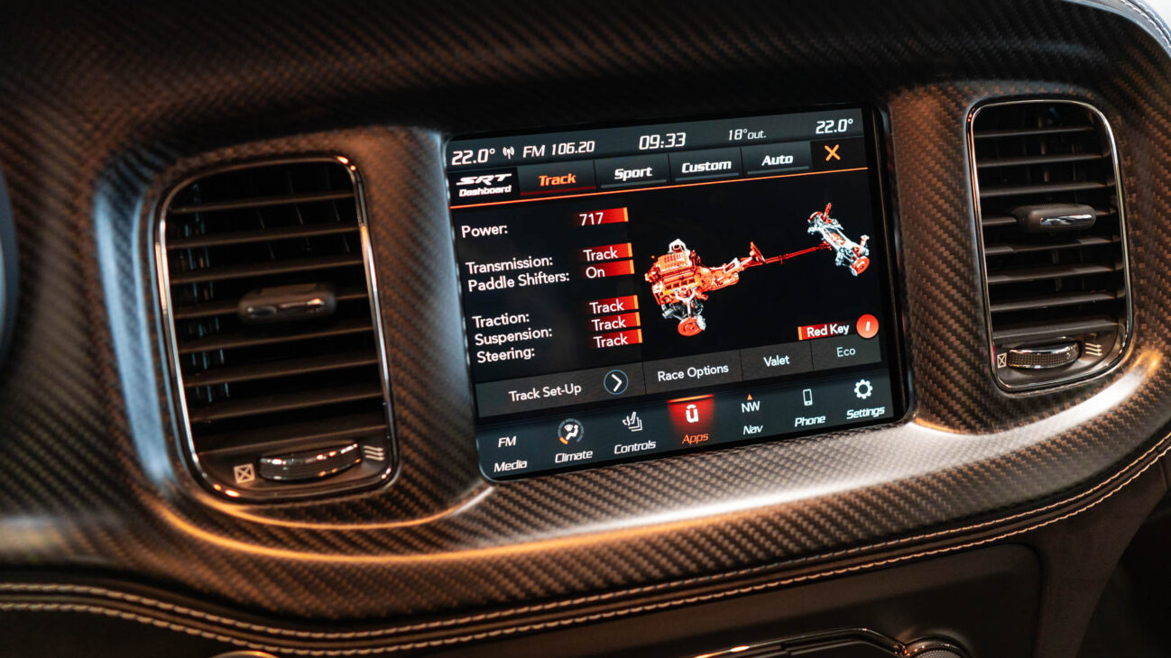 Hellcat používa 8-stupňovú automatickú prevodovku TorqueFlite, ktorá prináša maximálne športové zážitky a radenie s reakciou 160 milisekúnd. SRT Drive Mode umožňuje nastaviť: výkon motora, tuhosť podvozku, režim radenia alebo tuhosť riadenia. Posledné tri možnosti možno nastaviť v režimoch Street, Sport a Track. Pričom režim Street predstavuje bežný prevádzkový režim a na druhej strane režim Track umožňuje získať z vozidla maximálny a agresívny výkon. Performance Drive umožňujú merať a zobrazovať: zrýchlenie, brzdnú dráhu a čas. Pozdĺžne a priečne preťaženie (G-Force), uhol natočenia volantu a to vrátane výpisu histórie a najlepších nameraných hodnôt. Engine Performance umožňujú jazdcovi zobraziť: aktuálny výkon, krútiaci moment alebo ukazovatele stavu prevádzkových kvapalín motora. Launch control – nastaviteľná kontrola preklzu kolies s indikátorom radenia.