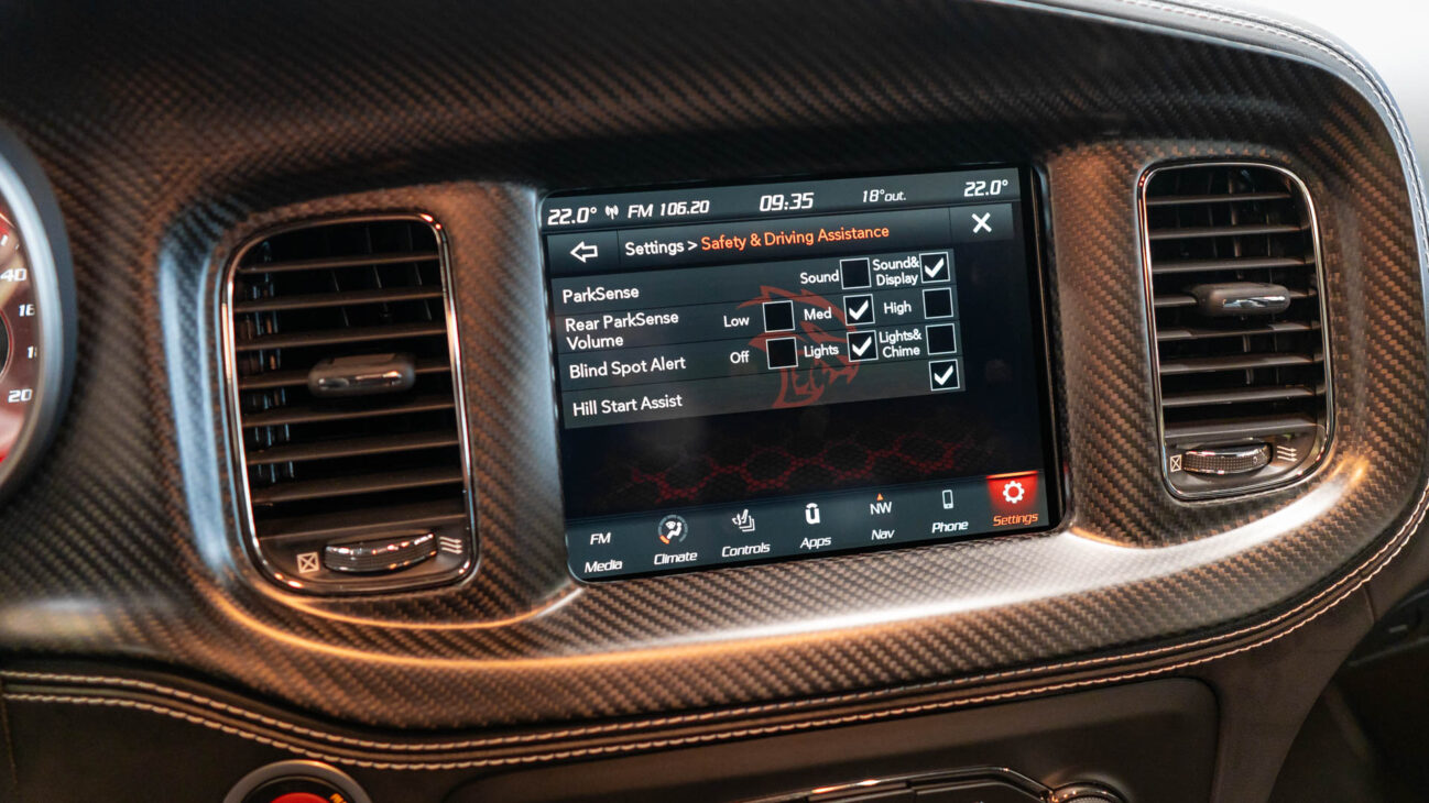 Hellcat umožňuje medzi režimami SRT Drive Mode a ďalšími používateľsky nastaviteľnými funkciami až 125 rôznych potenciálnych kombinácií nastavení vozidla! Športový podvozok je vybavený vysoko výkonnými adaptívnymi tlmičmi Bilstein, ktoré poznáme z motorsportu NASCAR, DTM či Formule 1. Brzdy Brembo predné sú šesťpiestikové odvetrávané s priemerom 391 mm a zadné s priemerom 350 mm, Harman Kardon prémiový audio systém so 19 reproduktormi.