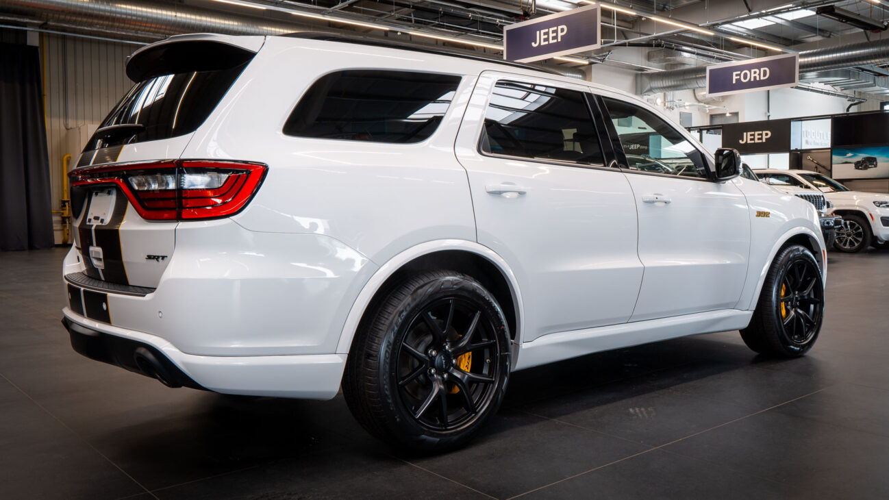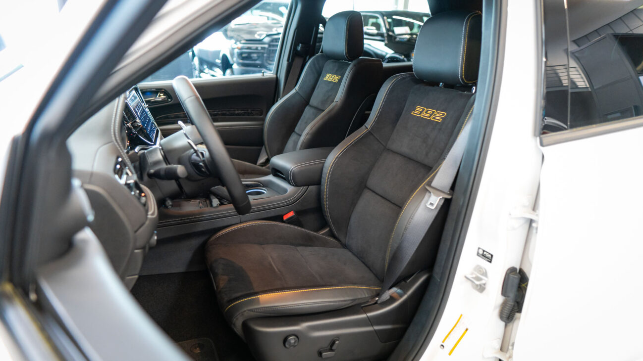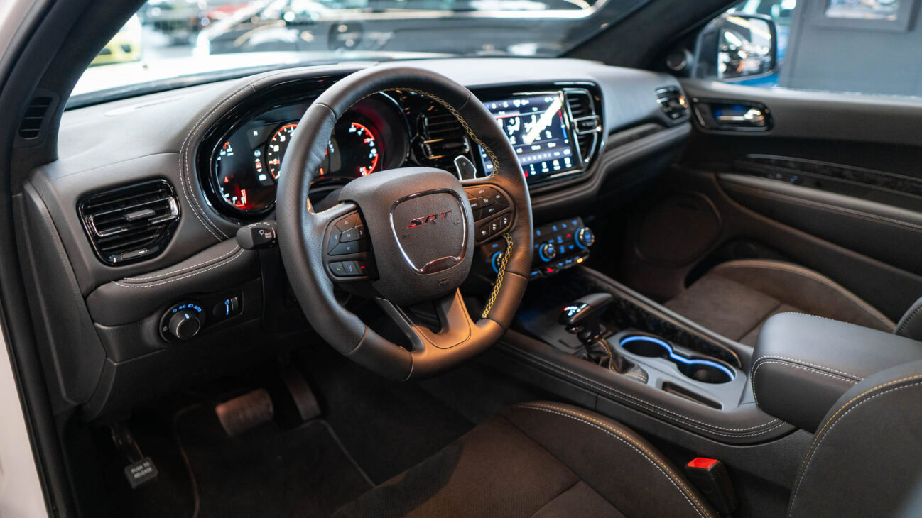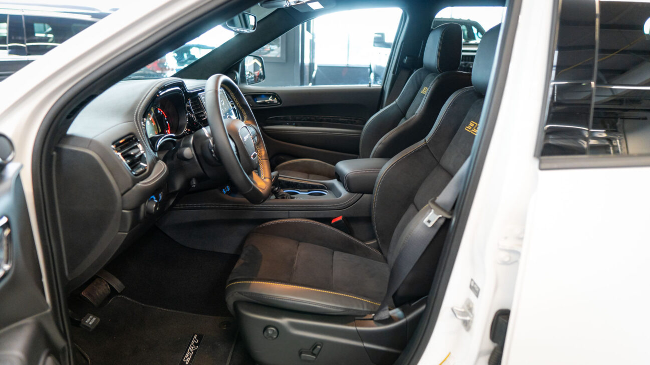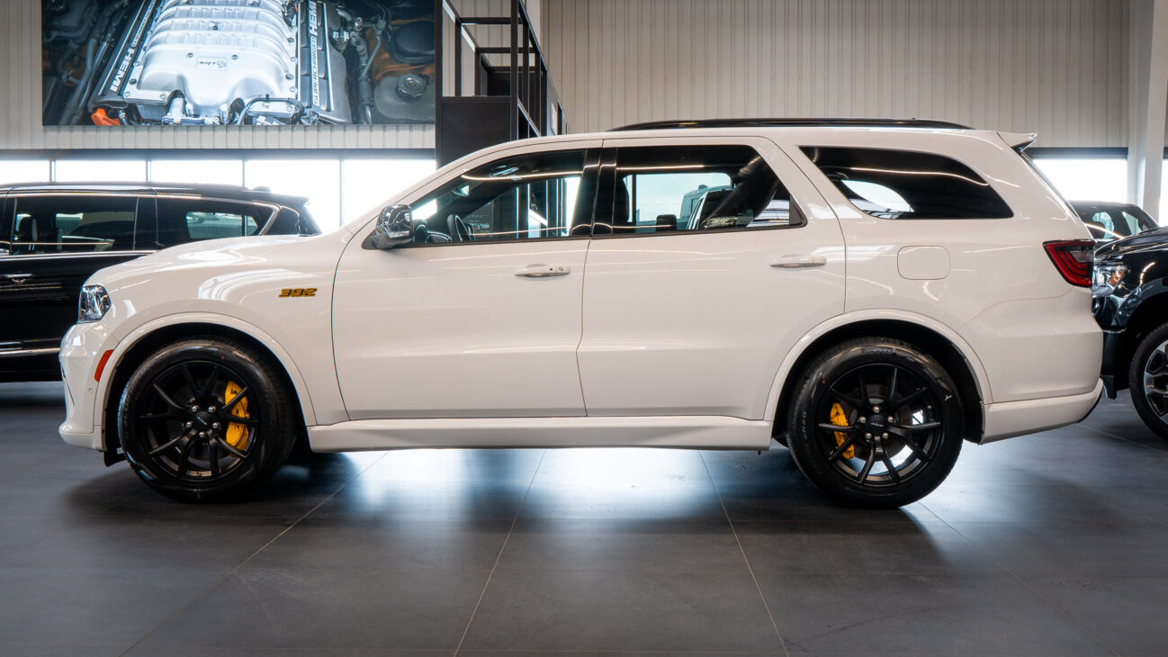 Nový Dodge Durango SRT 392 AlcHEMI. Interiér je vybavený 10,1-palcovým systémom Uconnect 5 a radou ďalších inovácií. SRT model disponuje výkonným motorom 6.4 HEMI V8 s výkonom 475HP a krútiacim momentom 644Nm. Zrýchlenie z 0-100 km za 4,4 sekundy a maximálnou rýchlosťou dosahujúcou 265 km/h! Pohon je zabezpečený systémom QUADRA-TRAC 4WD. Športový podvozok obsahuje nové adaptívne tlmiče Bilstein na všetkých kolesách, tuhšie pružiny a priečne stabilizátory. Automatická 8-stupňová prevodovka ZF bola modifikovaná pre výkon SRT. Brzdy Brembo majú predné šesťpiestové brzdové strmene s ventilovanými kotúčmi o priemere 380 mm a zadné štvorpiestové brzdové strmene s ventilovanými kotúčmi o priemere 350 mm.