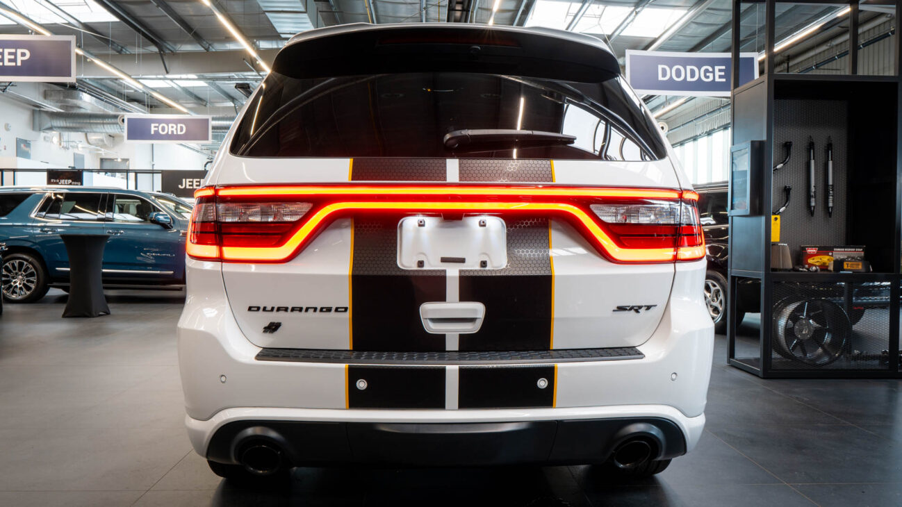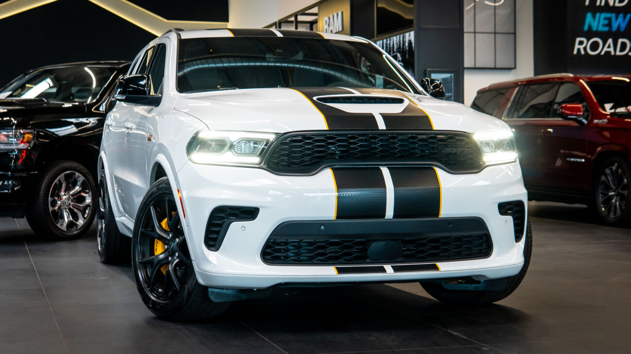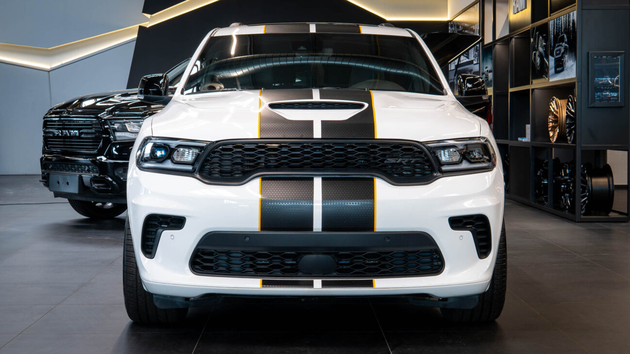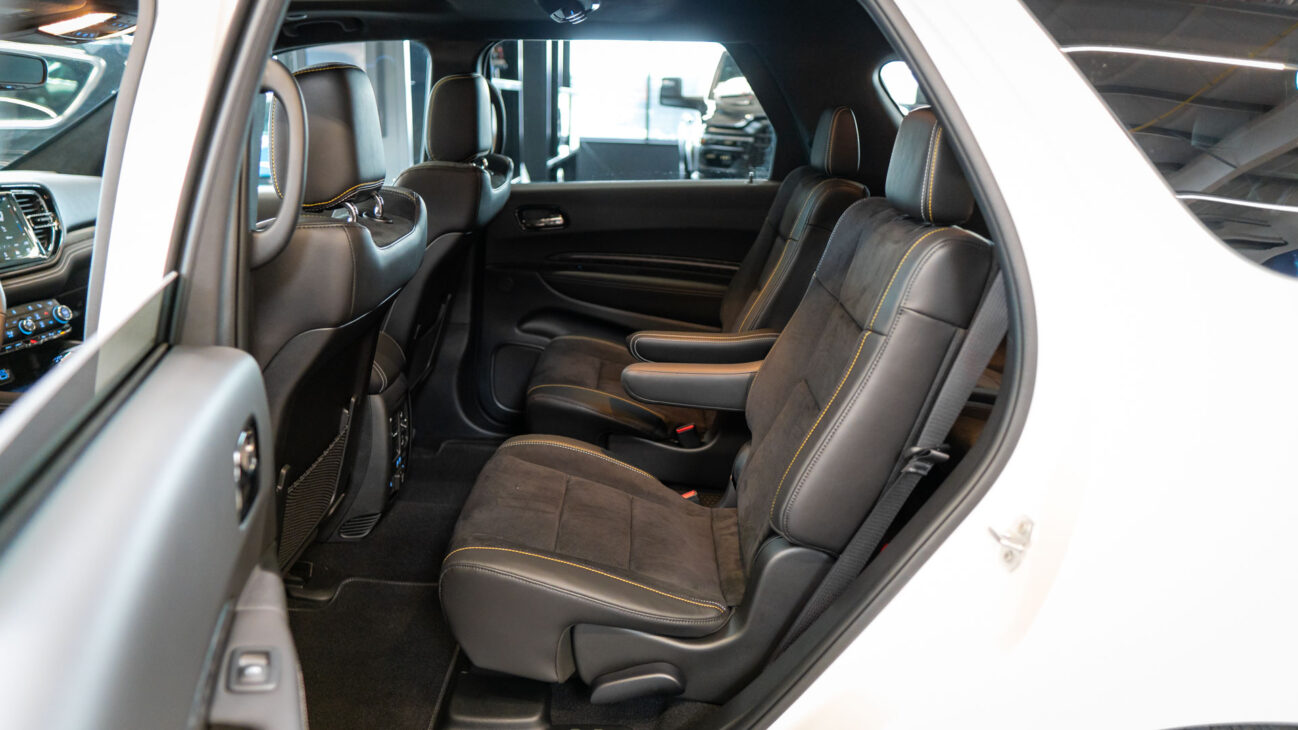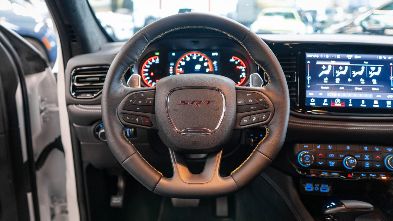 Nový Dodge Durango SRT 392 AlcHEMI. Interiér je vybavený 10,1-palcovým systémom Uconnect 5 a radou ďalších inovácií. SRT model disponuje výkonným motorom 6.4 HEMI V8 s výkonom 475HP a krútiacim momentom 644Nm. Zrýchlenie z 0-100 km za 4,4 sekundy a maximálnou rýchlosťou dosahujúcou 265 km/h! Pohon je zabezpečený systémom QUADRA-TRAC 4WD. Športový podvozok obsahuje nové adaptívne tlmiče Bilstein na všetkých kolesách, tuhšie pružiny a priečne stabilizátory. Automatická 8-stupňová prevodovka ZF bola modifikovaná pre výkon SRT. Brzdy Brembo majú predné šesťpiestové brzdové strmene s ventilovanými kotúčmi o priemere 380 mm a zadné štvorpiestové brzdové strmene s ventilovanými kotúčmi o priemere 350 mm.