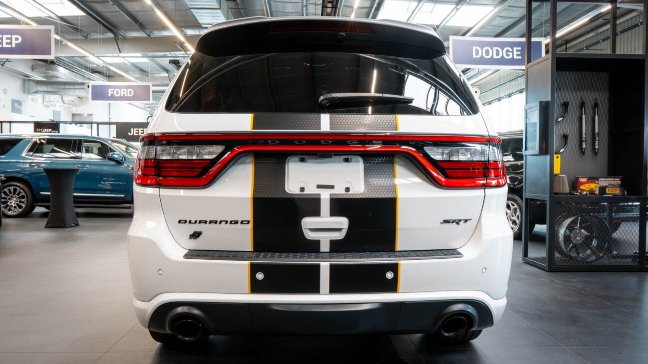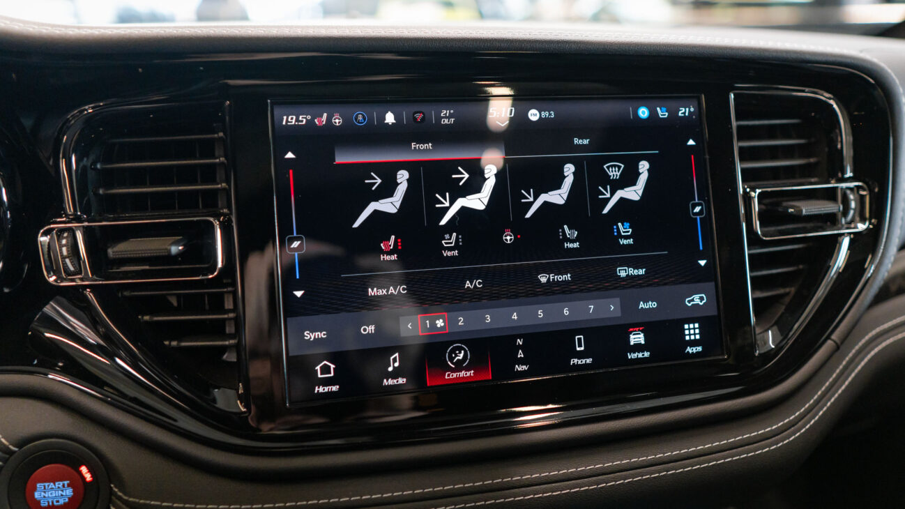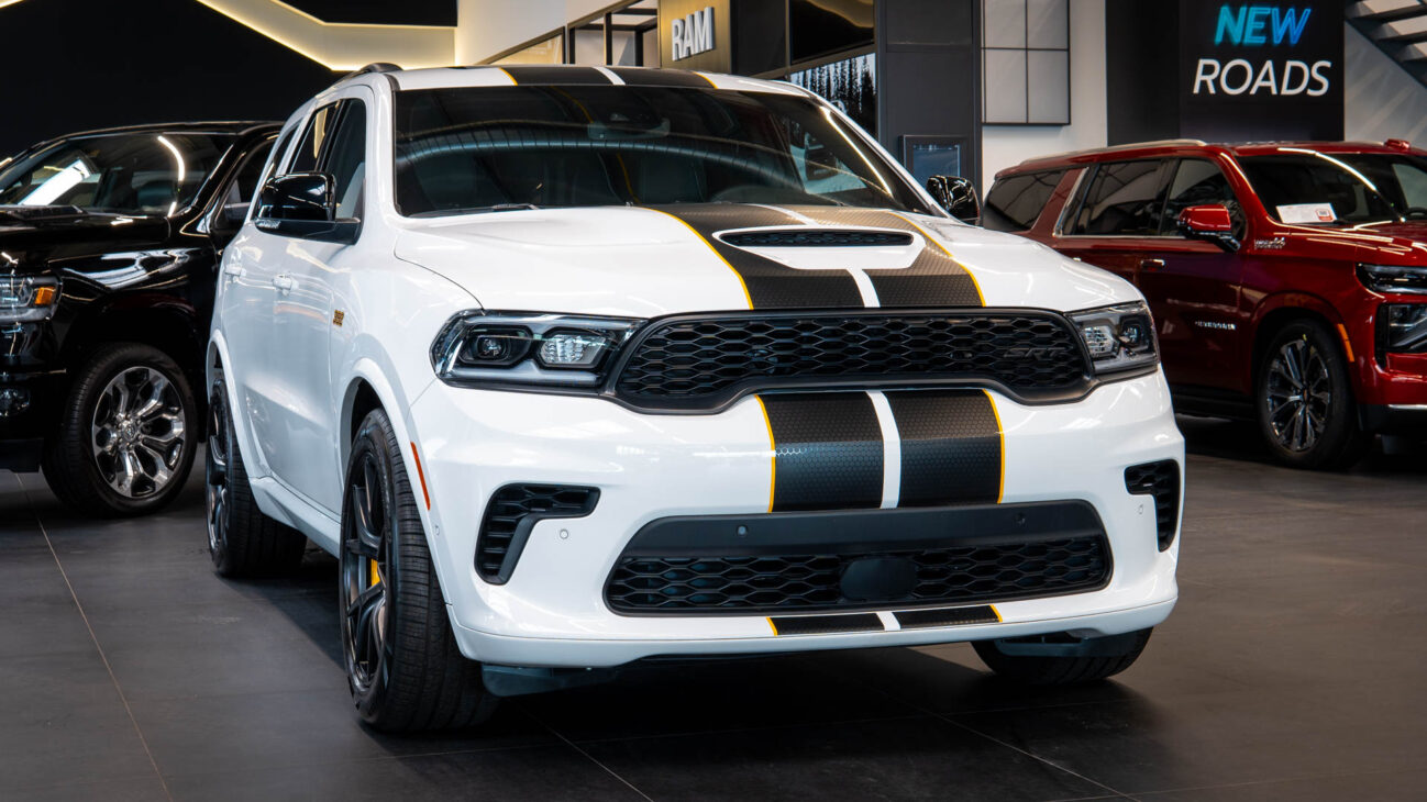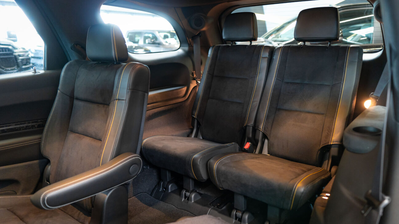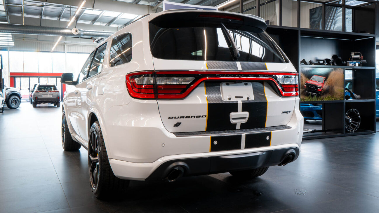 Nový Dodge Durango SRT 392 AlcHEMI. Interiér je vybavený 10,1-palcovým systémom Uconnect 5 a radou ďalších inovácií. SRT model disponuje výkonným motorom 6.4 HEMI V8 s výkonom 475HP a krútiacim momentom 644Nm. Zrýchlenie z 0-100 km za 4,4 sekundy a maximálnou rýchlosťou dosahujúcou 265 km/h! Pohon je zabezpečený systémom QUADRA-TRAC 4WD. Športový podvozok obsahuje nové adaptívne tlmiče Bilstein na všetkých kolesách, tuhšie pružiny a priečne stabilizátory. Automatická 8-stupňová prevodovka ZF bola modifikovaná pre výkon SRT. Brzdy Brembo majú predné šesťpiestové brzdové strmene s ventilovanými kotúčmi o priemere 380 mm a zadné štvorpiestové brzdové strmene s ventilovanými kotúčmi o priemere 350 mm.