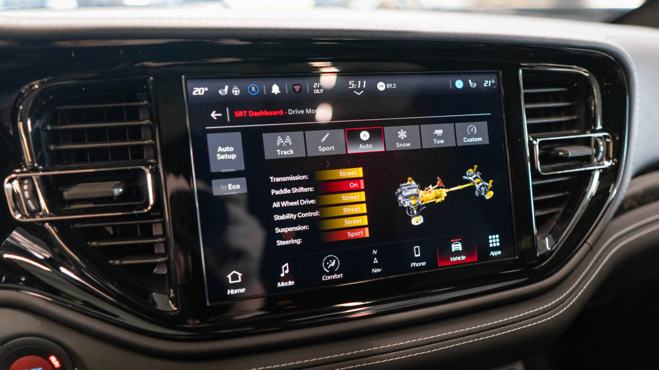 Systém Selec-Track zvyšuje priľnavosť na akomkoľvek povrchu. Prostredníctvom piatich jazdných režimov – Track, Sport, Snow, Tow a s úplne automatickým režimom Auto – koordinuje 12 rôznych podsystémov motora, brzd a podvozku, vrátane ovládania škrtiacej klapky, radenia hlavnej i rozdeľovacej prevodovky a elektronickej kontroly stability ESC. Režim Track umožňuje čisto športové zážitky, kde je 70 % krútiaceho momentu preneseného na zadné kolesá. Posledným šiestym režimom je SRT Custom Mode, ktorý umožňuje nastaviť vlastný režim, vrátane možnosti manuálneho radenia, kontroly stability ESC, krútiaceho momentu pohonu 4WD, tuhosti riadenia a tuhosti podvozku.