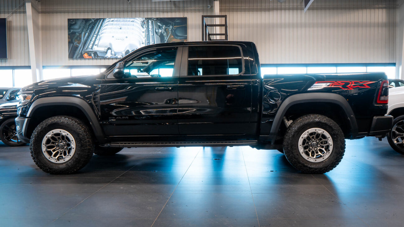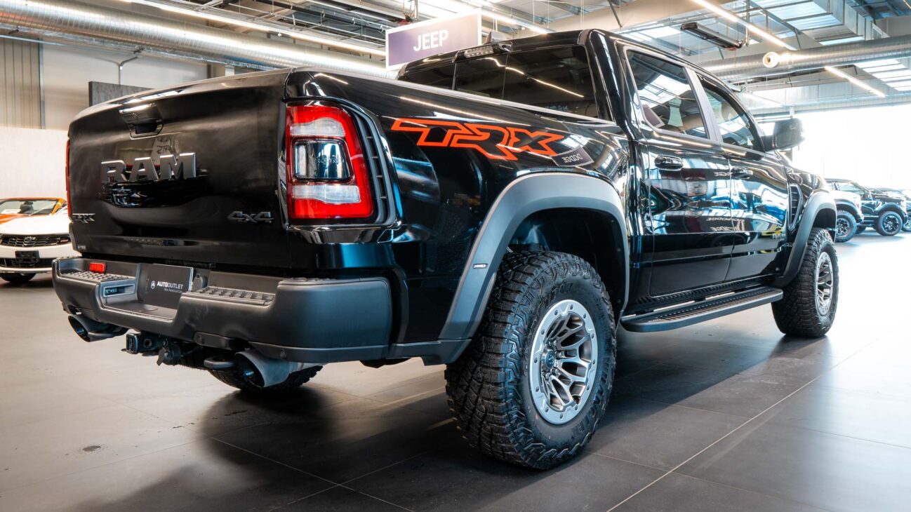RAM 1500 TRX. Nejsilnější pickup na světě nyní skladem v AUTO OUTLET! Nekompromisní HELLCAT motor si našel cestu do RAM 1500 pickupu a jeho 6.2l V8 blok s 11PSI kompresorem a dvojím přímým sáním poskytuje šílených 702HP a 880Nm. Zrychlení z 0-100 okolo 4.5 sekundy. Excelentní jízdní vlastnosti díly posíleným adaptivním tlumičům Bilstein Black Hawk. Sportovní volant s pádlovým řazením. Jízdní režimy, Launch Control, Performance Pages a další sportovní funkce jak je známe z Challengeru. Oproti ostatním modelům RAM se vrací tradiční řadící páka. Pohon 4WD, 18″ Alu kola s 35″ offroad pneu. Režimy pro extrémní offroad podmínky včetně Rock Crawl nebo sjíždění extrémních svahů. Zvýšený podvozek o 8cm oproti offroad verzi Rebel.