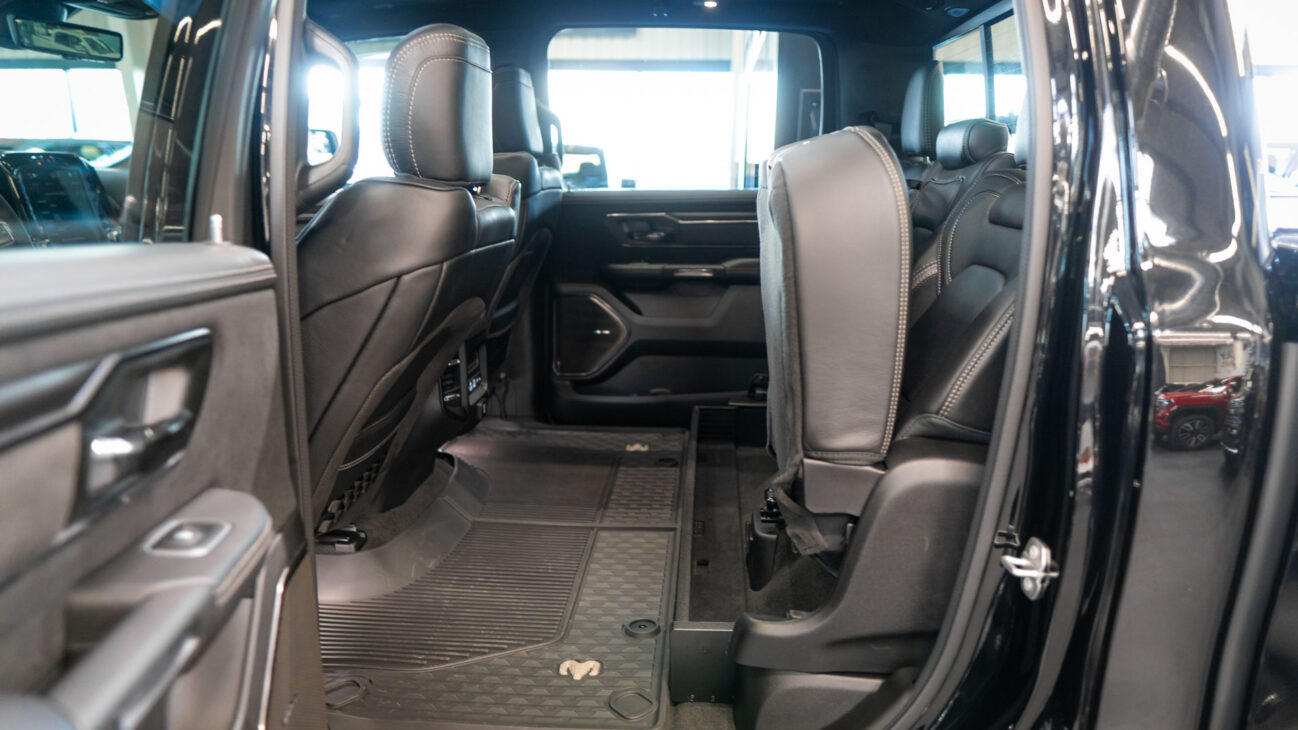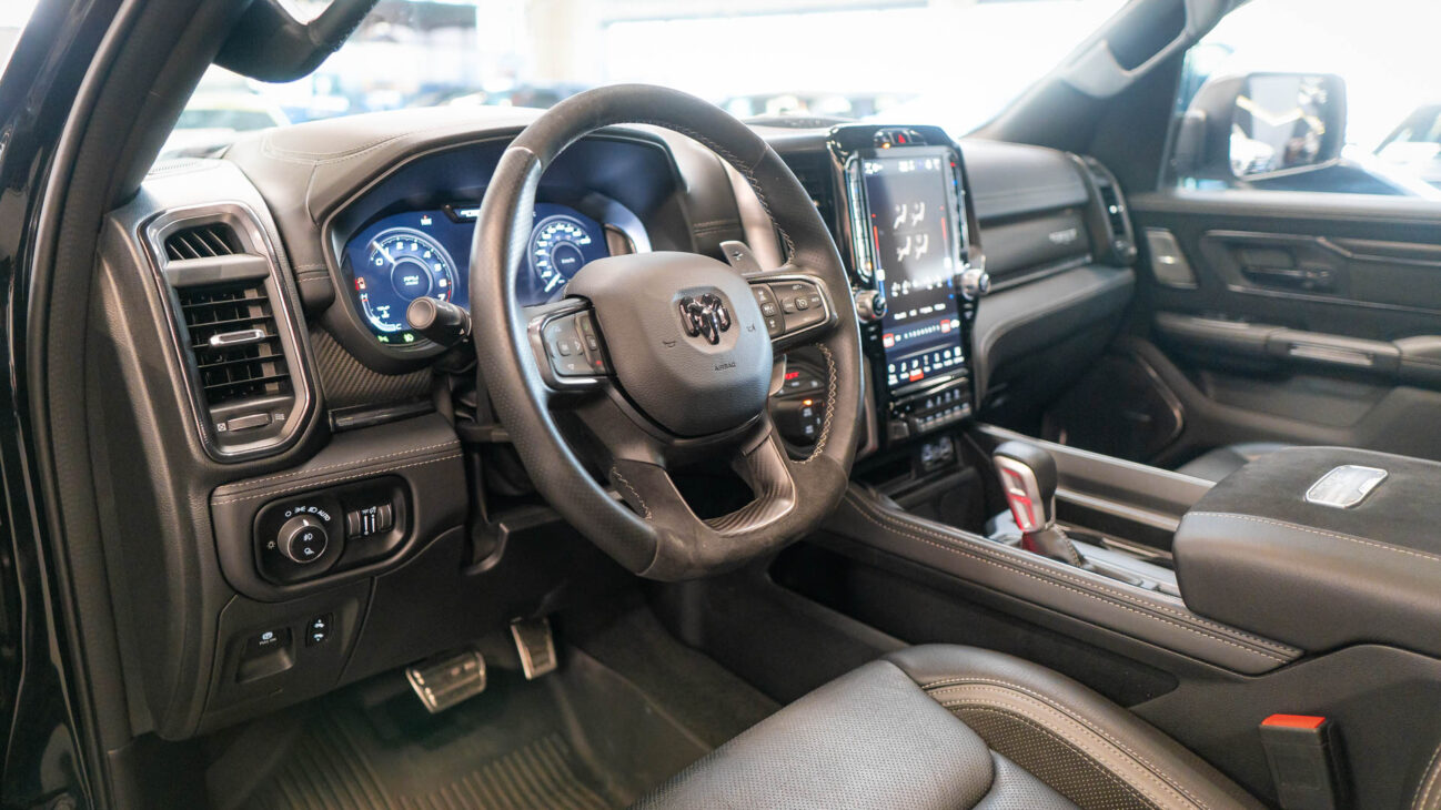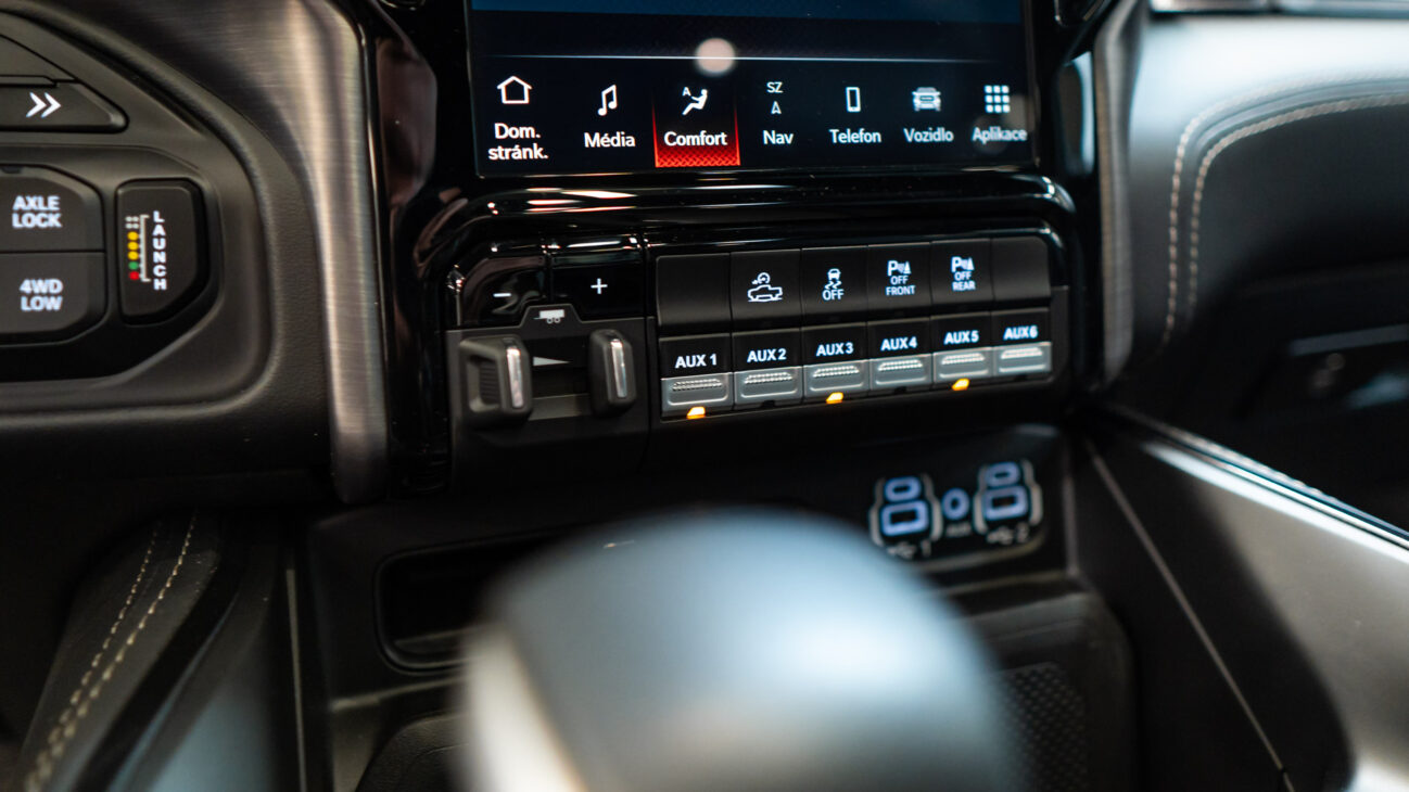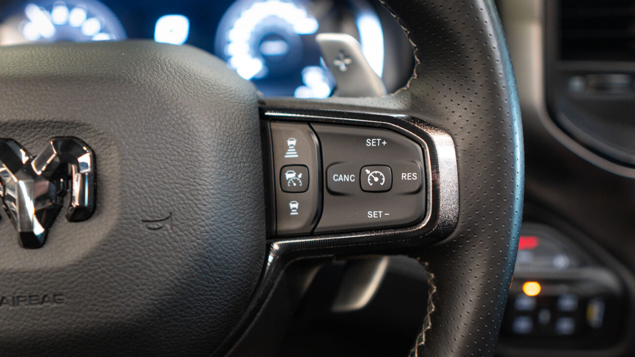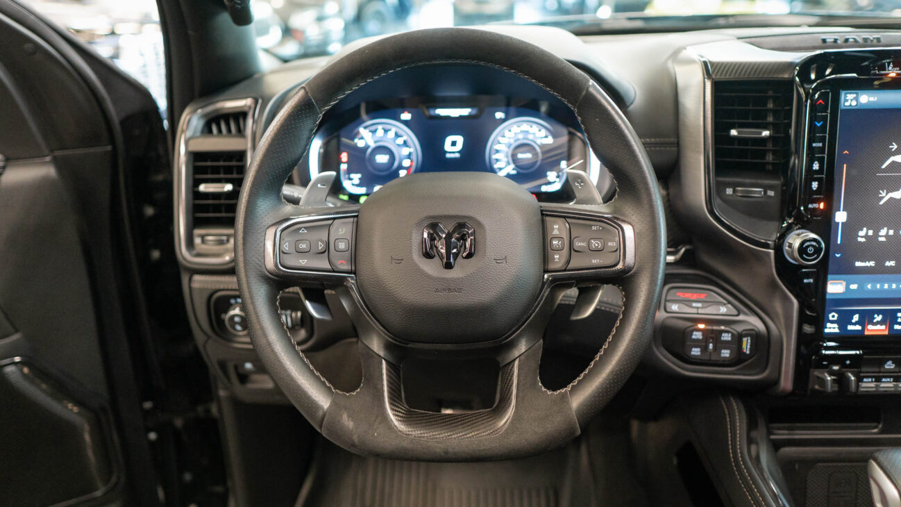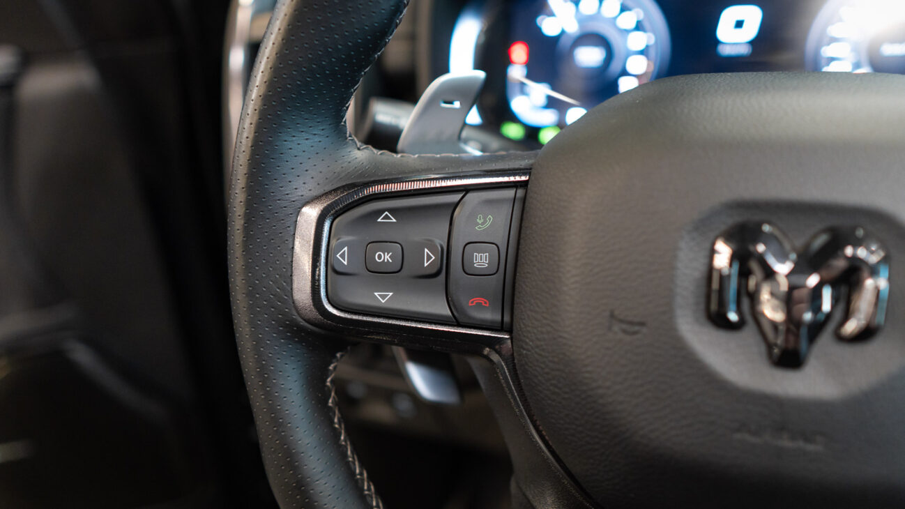 Nový infotainment UConnect 5 Nav s 12″ displejem nabízí kontrolu nad veškerými funkcemi vozidla, přesto si ale RAM zachovává fyzická tlačítka pro ovládání nejdůležitějších komfortních funkcí za jízdy jako klimatizace, hlasitosti rádia a další. UConnect 5 samozřejmě podporuje Apple CarPlay i Android Auto. 360 stupňová parkovací kamera na velkém displeji zobrazuje dění kolem vozu ve velkém detailu, navíc nabízí možnost přiblížení bočních a zadních kamer pro usnadnění pakovacích manévrů nebo pro přesné nacouvání k přívěsu. Prémiový Harman/Kardon audiosystém poskytuje kvalitní a vyvážené zvukové podání v celé kabině vozu díky 18 reproduktorům, subwooferu a zesilovači o výkonu 900W. Funkce Logic 7 u tohoto audio systému zajišťuje perfektní 360° prostorový zvuk.