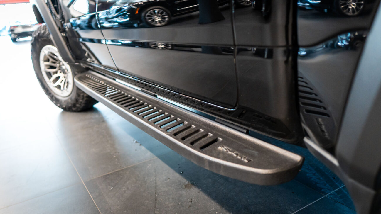 Interiér vozu navzdory terénní nátuře vozu vyniká kvalitou zpracování a luxusem. Elektricky stavitelné přední sedačky v 12-ti směrech u řidiče a spolujezdce včetně elektricky stavitelné bederní opěrky ve 4 směrech, u řidiče s možností uložení do paměti. Vyhřívané i odvětrávané sedačky v první řadě jsou potažené perforovanou kůží a jsou elektricky nastavitelné s pamětí včetně bederní opěrky. Kožený multifunkční vyhřívaný volant je vybaven tradičními ovládajícími prvky tempomatu a dalších funkcí, za zmínku však stojí masivní pádla pod volantem umožňující řadit manuálně. Řidičův komfort je umocněn elektricky stavitelnými pedály. Zadní sedačky jsou vyhřívané i odvětrávané a pasažéři mají k dispozici čtveřici USB portů – dva full size USB a dva kompaktní USB-C, ve středním panelu je navíc vestavěna plnohodnotná zásuvka. Pod zadními sedačkami jsou je podélný úložný prostor a v zemi pak dva uzamykatelné úložné boxy. Vzhledem ke světlé výšce vozu nechybí ani boční nášlapy pro snadný vstup do vozu.
