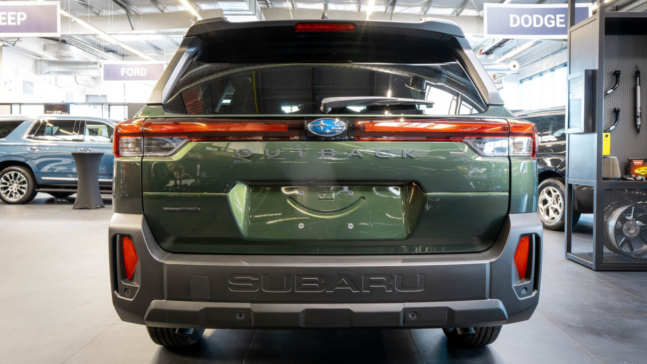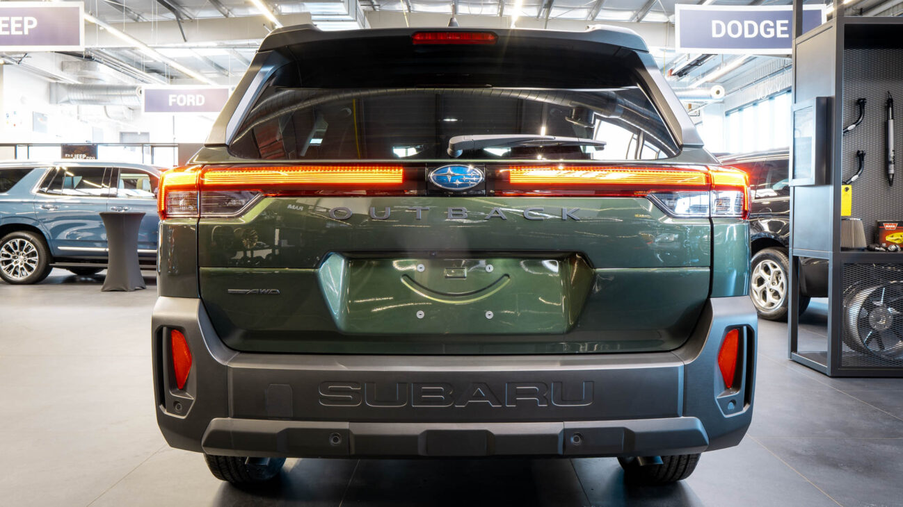 Vzhľad Outbacku prešiel výraznou evolúciou. Nové, výraznejšie línie a modernizovaný dizajn dodávajú vozidlu robustnejší a surovejší charakter, ktorý osloví zákazníkov hľadajúcich netradiční, avšak praktické kompaktné SUV. Vozidlo disponuje 19-palcovými zliatinovými diskami v kombinovanom dizajne čierny lesk a leštený hliník. Outback si zachováva svoje typické masívne strešné lyžiny, duálne koncovky výfuku a po novom ponúka LED svetlomety s funkciou natáčania do zákrut podľa natočenia volantu.