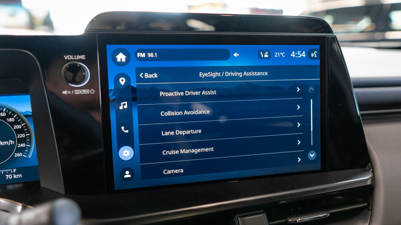 Infotainment Subaru Outback tvorí 12,1″ vertikálny dotykový displej s vysokým rozlišením doplnený 12,3″ digitálnym prístrojovým panelom a ponúka bezdrôtové Apple CarPlay aj Android Auto, Bluetooth handsfree, USB-A/USB-C konektory, podporu FM/AM a DAB+ rádia, online služby Google resp. Google Assistant pre hlasové ovládanie, zábavu a vybrané aplikácie. Vodiči môžu na displeji spravovať kľúčové komfortné funkcie vozidla, jazdný režim a vytvárať personalizované profily pre individuálne nastavenie. Vďaka externým modulom je systém kompatibilný s Bluetooth 5.2, zatiaľ čo Spectra ISP vylepšuje funkcie kamery o HDR a výkon za slabého osvetlenia.