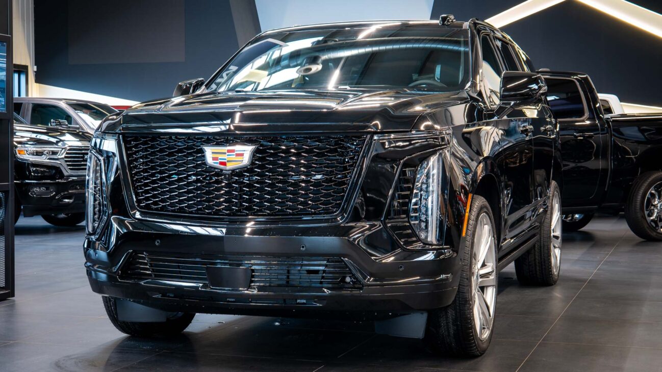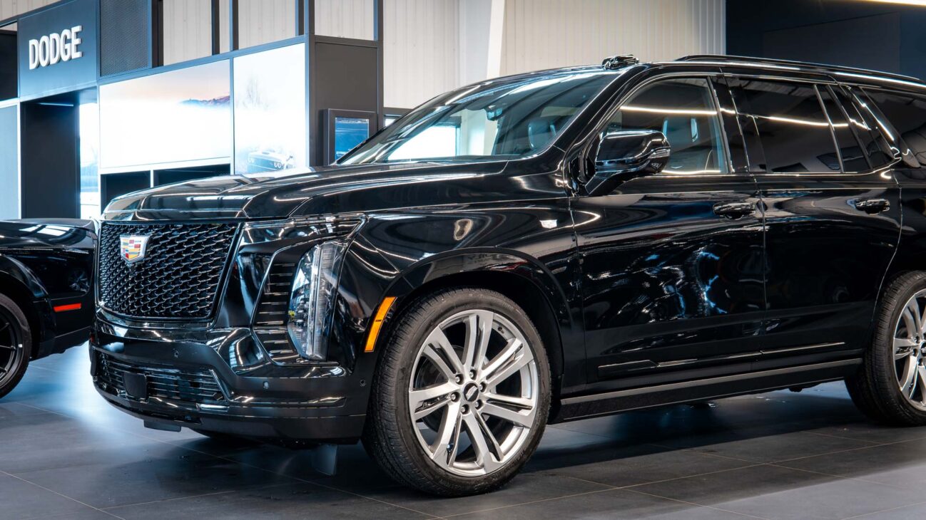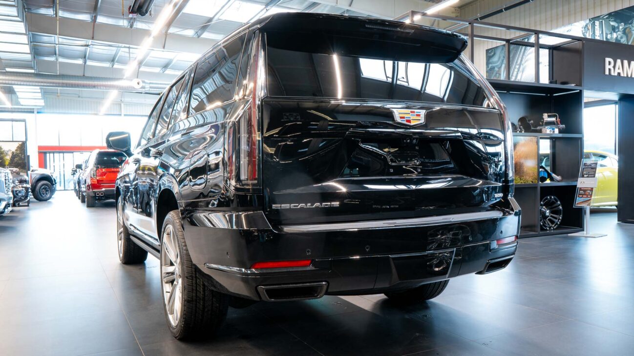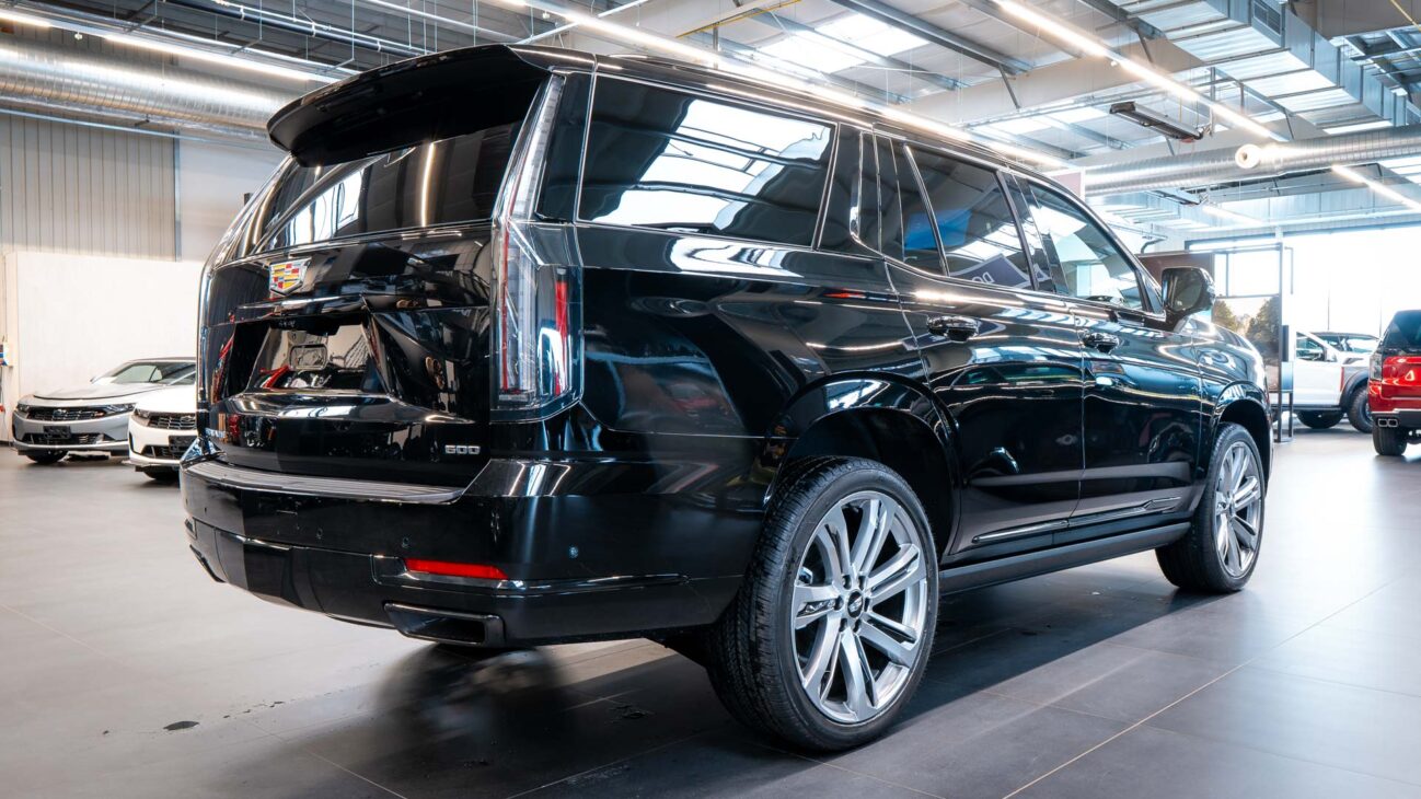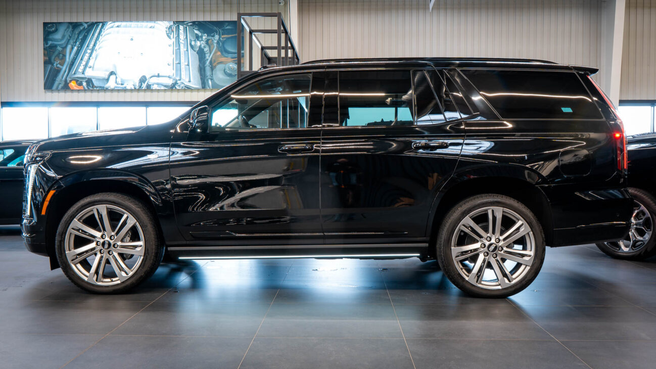 Nový Cadillac Escalade Sport Platinum 4WD. Nová facelift generace legendární Escalade, představující špičku luxusních amerických plnohodnotných SUV. Pod kapotou je atmosférický 6.2l V8, s výkonem 420HP a kroutícím momentem 623NM. 10 stupňová Hydra-Matic 10L80 převodovka s možností řazení pod volantem. Navzdory své velikosti Escalade poskytuje vynikající jízdní vlastnosti, zejména se zde obsaženým balíčkem Touring Package – adaptivní vzduchový podvozek podpořený technologií Magnetic Ride Control, snímající povrch vozovky 1000x za vteřinu a upravující tuhost tlumičů. Nechybí ani elektronický diferenciál s omezeným prokluzem. Pohon všech kol zajištuje systém 4WD. Standardně lze využít módy AUTO kdy ve výchozím stavu je k dispozici 2WD a při prokluzu kol se automaticky přepne na 4WD dokud se neobnoví trakce kol. dále je k dispozici mód 2WD a 4WD , přičemž z 2WD na 4WD lze přepnout pohon za chodu při jakékoliv rychlosti pouze pomocí ovládacích tlačítek. Vůz má k dispozici mód Tow/hall, který je určen vyloženě pro jízdu se zátěží. Tento mód upravuje především nastavení stabilizačního systému, převodovky a podvozku. Funkce Hitch Guidance zajišťuje přiblížený pohled zadní kamery, která umožňuje snažší navádění vozu k připojovanému návěsu a dále během jízdy i kontrolu připojeného návěsu. Automatic Vehicle Hold poskytuje řidiči automatické zabrzdění vozidla při zastavení na křižovatce nebo při jakékoliv zastávce aniž musel stát po tuto dobu na brzdě nebo zařadit automat do polohy P.