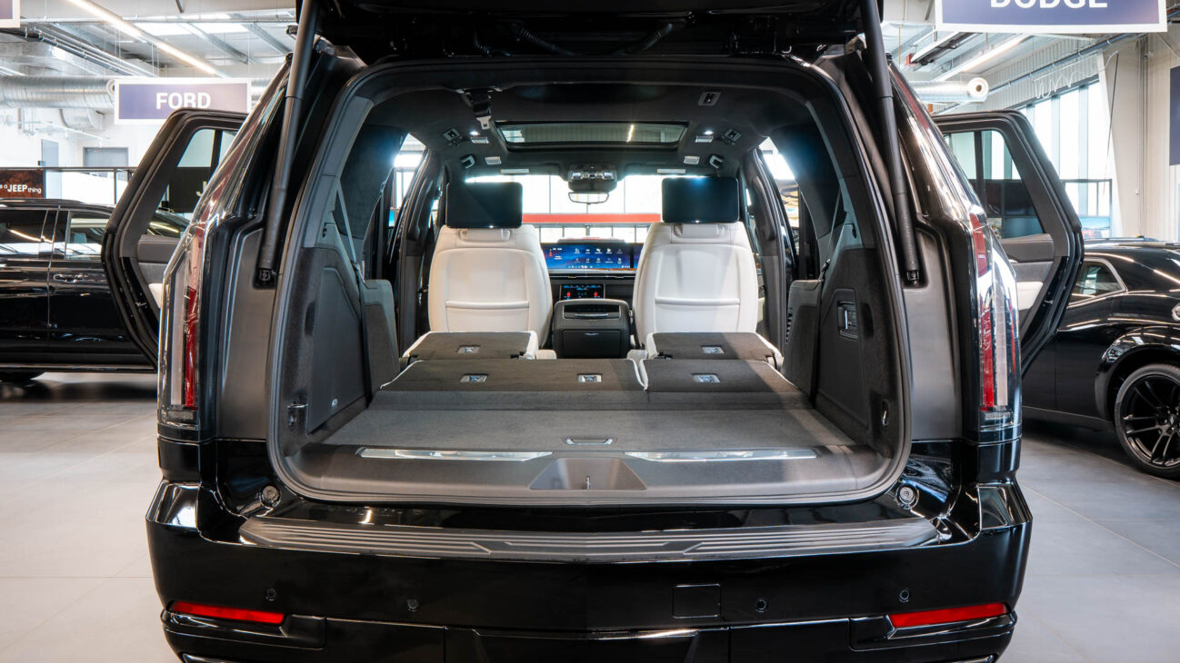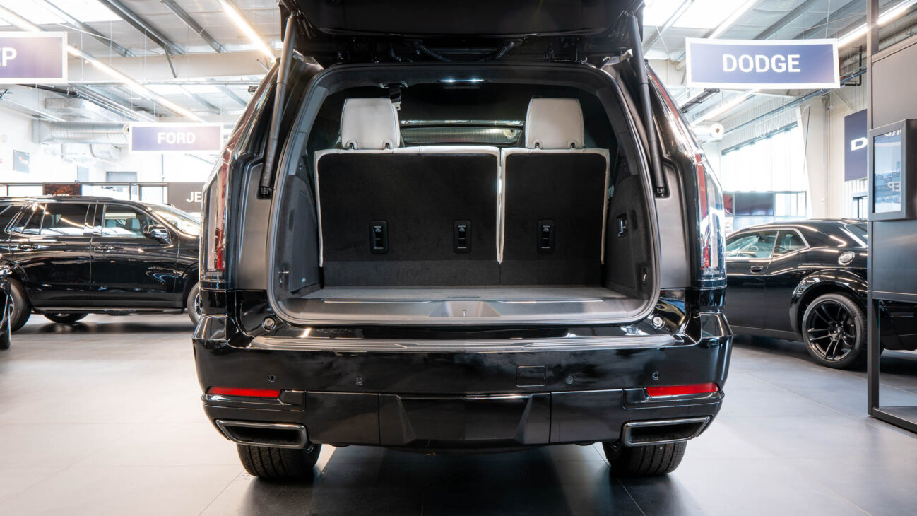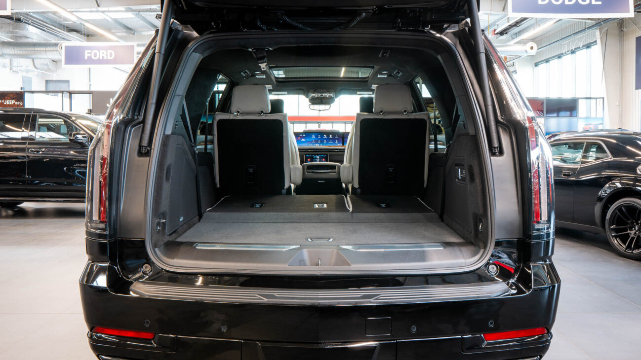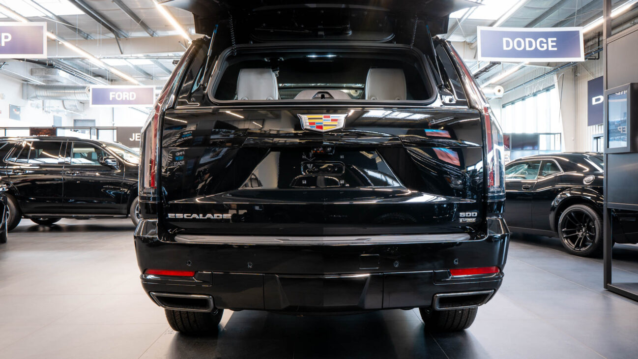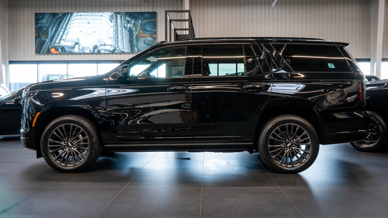 Nový Cadillac Escalade Sport Platinum 4WD. Nová facelift generace legendární Escalade, představující špičku luxusních amerických plnohodnotných SUV. Pod kapotou je atmosférický 6.2l V8, s výkonem 420HP a kroutícím momentem 623NM. 10 stupňová Hydra-Matic 10L80 převodovka s možností řazení pod volantem. Navzdory své velikosti Escalade poskytuje vynikající jízdní vlastnosti, zejména se zde obsaženým balíčkem Touring Package – adaptivní vzduchový podvozek podpořený technologií Magnetic Ride Control, snímající povrch vozovky 1000x za vteřinu a upravující tuhost tlumičů. Nechybí ani elektronický diferenciál s omezeným prokluzem. Pohon všech kol zajištuje systém 4WD. Standardně lze využít módy AUTO kdy ve výchozím stavu je k dispozici 2WD a při prokluzu kol se automaticky přepne na 4WD dokud se neobnoví trakce kol. dále je k dispozici mód 2WD a 4WD , přičemž z 2WD na 4WD lze přepnout pohon za chodu při jakékoliv rychlosti pouze pomocí ovládacích tlačítek. Vůz má k dispozici mód Tow/hall, který je určen vyloženě pro jízdu se zátěží. Tento mód upravuje především nastavení stabilizačního systému, převodovky a podvozku. Funkce Hitch Guidance zajišťuje přiblížený pohled zadní kamery, která umožňuje snažší navádění vozu k připojovanému návěsu a dále během jízdy i kontrolu připojeného návěsu. Automatic Vehicle Hold poskytuje řidiči automatické zabrzdění vozidla při zastavení na křižovatce nebo při jakékoliv zastávce aniž musel stát po tuto dobu na brzdě nebo zařadit automat do polohy P.