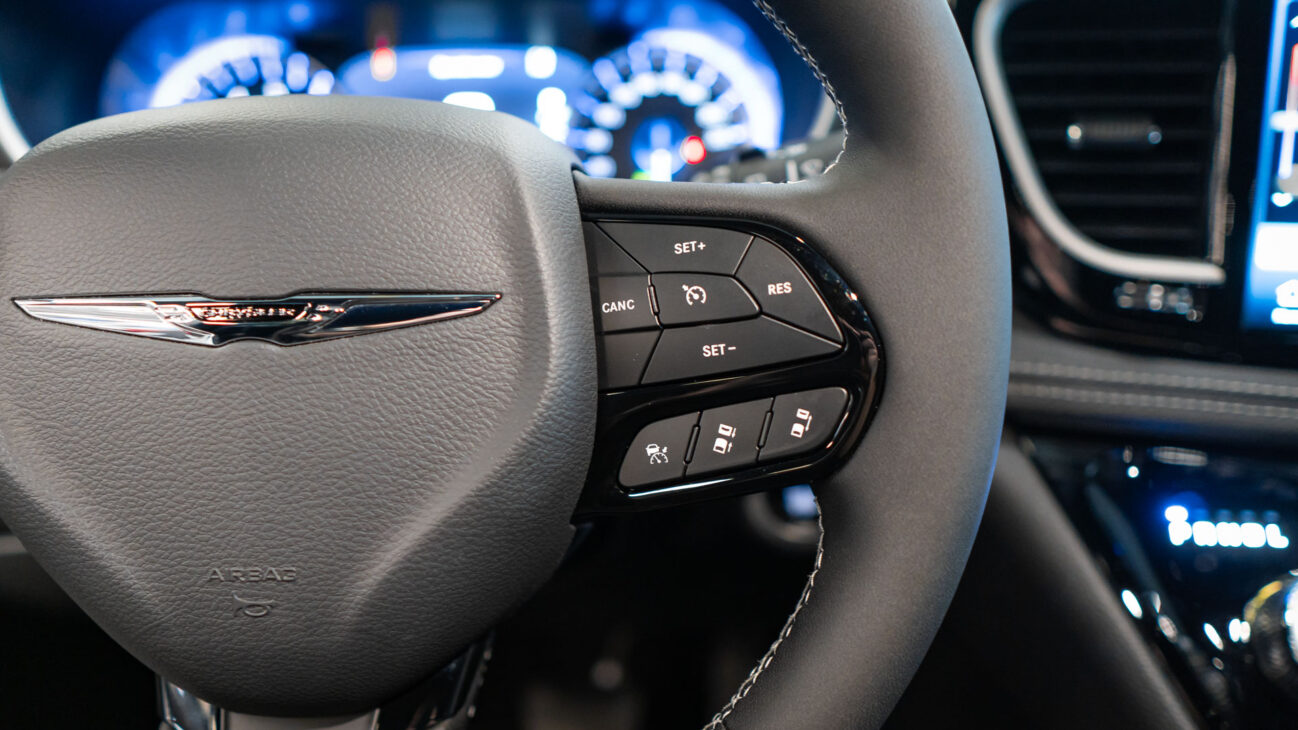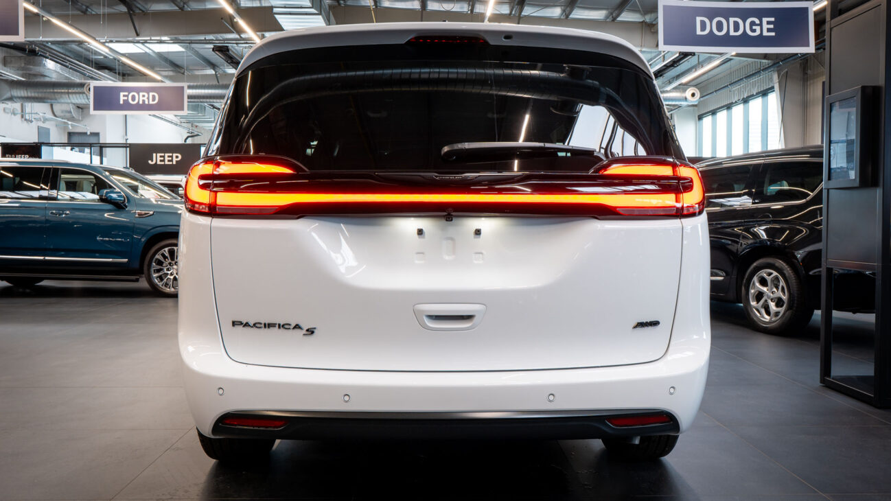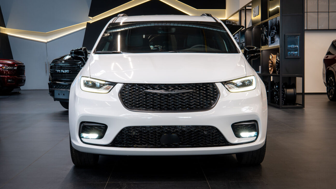 Model Pacifica má jako rodinný vůz ve standardu širokou škálu jízdních asistentů jako adaptivní tempomat s funkcí Stop and Go, varování před kolizí s aktivním nouzovým bržděním v případě, kdy řidič nereaguje na varování. Brzdový asistent, který automaticky zvýší brzdnou sílu, aby předešel nárazu. Signalizaci vozidla v mrtvém úhlu a velice užitečný asistent pro vyjíždění z řady zaparkovaných vozidel. S příplatkovým paketem Safety Sphere se úroveň bezpečnosti a komfortu ještě zvýší. Nabídne přehledný kamerový systém Surround 360 vytvářející pohled z ptačí perspektivy a velmi užitečný asistent automatického podélného a příčného parkování, který je doplněn předními i zadními parkovacími senzory. Dynamický design exteriéru podtrhují 18 palcová aluminiová kola, úzké přední světlomety osazené LED světlomety kombinované s LED denním svícením a tmavě tónovaná zadní okna pro druhou a třetí řadu sedadel vytvářející útulnou atmosféru.