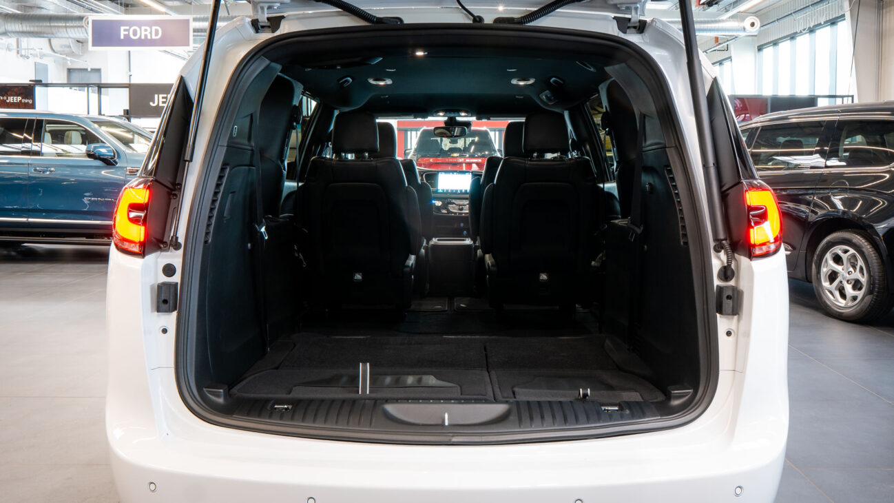 Nový Chrysler Pacifica Select AWD. Rodinné MPV, které bylo zvoleno sedm let v řadě po sobě minivanem roku. Interiér vozu nabízí posádce 7 míst a velkorysý variabilní vnitřní prostor. Exteriér tohoto MPV se přitom vyznačuje velmi povedeným dynamickým vzhledem se zachováním vynikajícího výhledu z vozidla. Motorizaci zastává prověřený šestiválec 3.6 Pentastar VVT o výkonu 287HP s maximálním krouticím momentem 355Nm. Komfortní jízdu vozidla zajištuje 9-stupňová automatická převodovka ZF v kombinaci s pohonem všech čtyř kol AWD. Systém je plně automatický a pracuje bez zásahu řidiče. Reaguje okamžitě a variabilně podle jízdních podmínek, a to přenášením výkonu buď na přední, nebo na všechna kola, dle potřeby. Systém dokáže plně odpojit zadní pohon, když není potřeba – eliminuje otáčení hřídele, snižuje odpor a zlepšuje spotřebu. Oproti standardní verzi standardní předokolce (FWD) má model AWD vyšší světlou výško o 20 mm pro lepší průjezdnost.