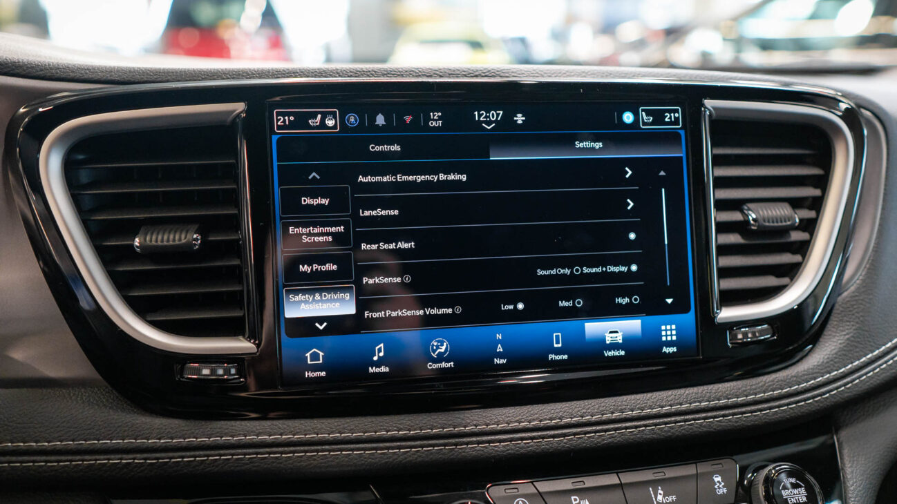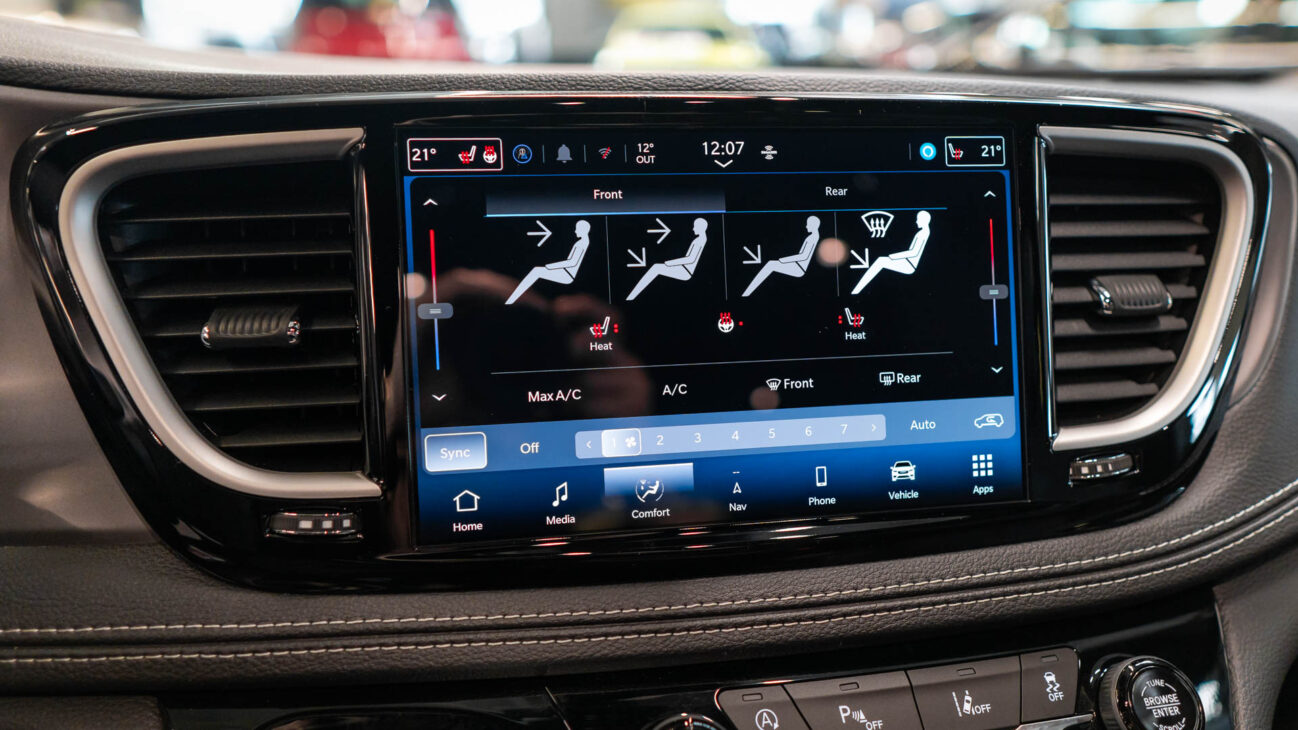 Řidič má k dispozici 7 palcový konfigurovatelný digitální cluster mezi budíky se zobrazením jízdních dat a navigačních pokynů. Modernizovaný infotainment Uconnect 5 s velkým 10.1 palcovým dotykovým displejem s vysokým rozlišením. Tento model přichází s již integrovanou hlasovou podporou Amazon Alexa. Stačí tedy jen vyslovit přání a dokážete přehrávat hudbu, kontrolovat počasí, zprávy nebo dopravní informace či zobrazit si seznam Vašich úkolů. Nově infotainment podporuje až 5 uživatelských profilů, kde lze uložit předvolby pro výchozí telefon, nastavení komfortních funkcí, příkazy Alexy či zvuku. Samozřejmostí je bezdrátová podpora Apple CarPlay nebo Android Auto. Audio systém vozidla je tvořen 6 reproduktory.