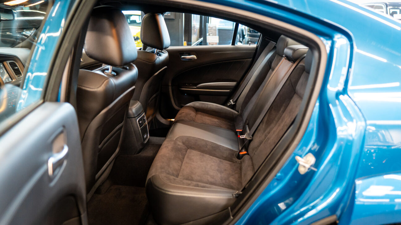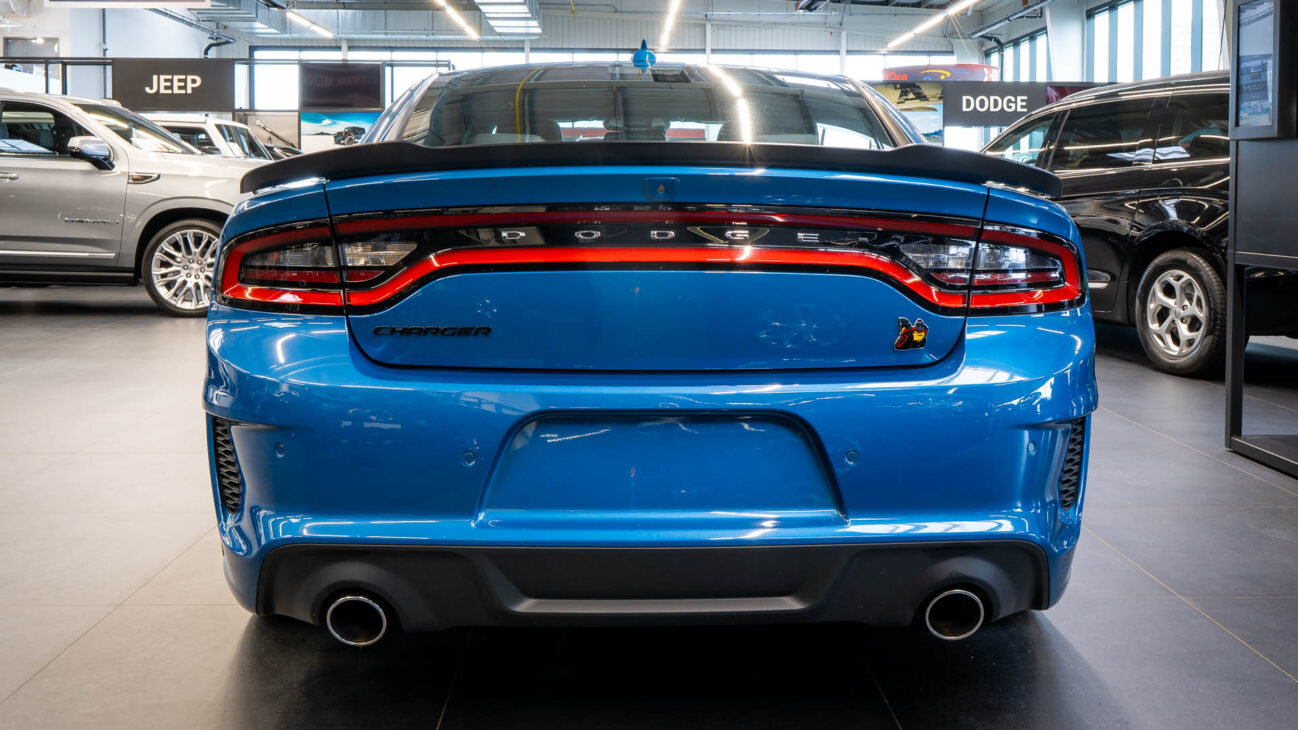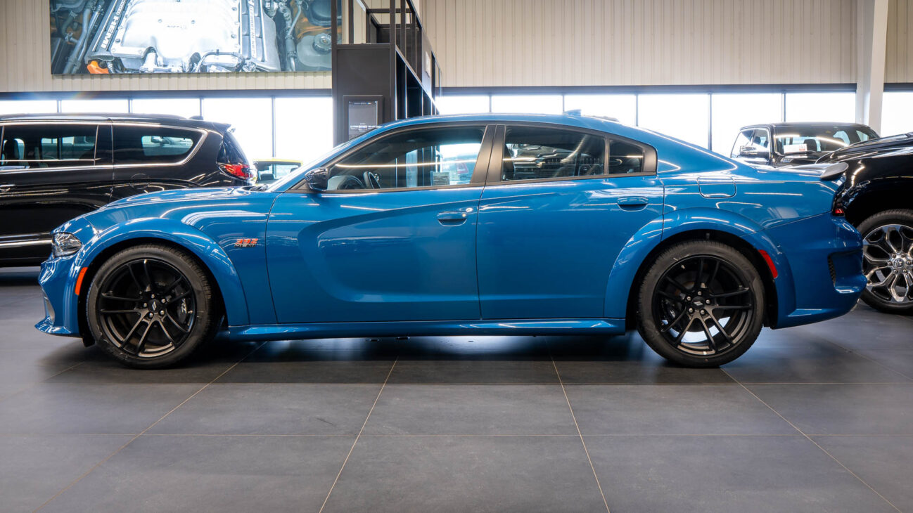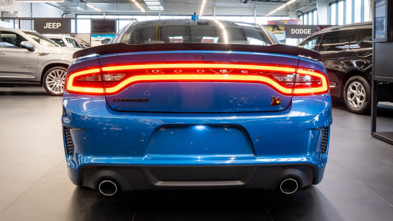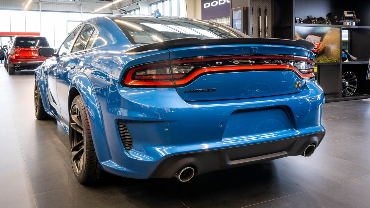Nový Dodge Charger Scat Pack Widebody. Tento unikátní vůz z dlouholetou historií ve své podobě bohužel ukončil výrobu na konci loňského roku. Skladem u nás přesto najdete největší výběr těchto ikonických vozů s osmiválcovými motory. Model Scat Pack je osazen motorem 392 HEMI s největším objemem 6.4 V8 o výkonu 485HP s maximálním krouticím momentem 644Nm. Tento motor s fantastickým zvukovým projevem uděluje vozu zrychlení z 0 na 100 za 4.5s a jeho maximální rychlost končí na hodnotě 281km/h. Pohon vozidla zajištuje 8 stupňová automatická převodovka TorqueFlite, která využívá adaptivní řadicí logiku. Řídicí jednotka převodovky průběžně vyhodnocuje styl jízdy řidiče a na základě těchto vstupů dynamicky upravuje strategii řazení. Řidič má navíc k dispozici možnost přímého řazení pádly pod volantem Paddle Shift nebo volbou na řadicí páce pomocí tzv. funkce Autostick.