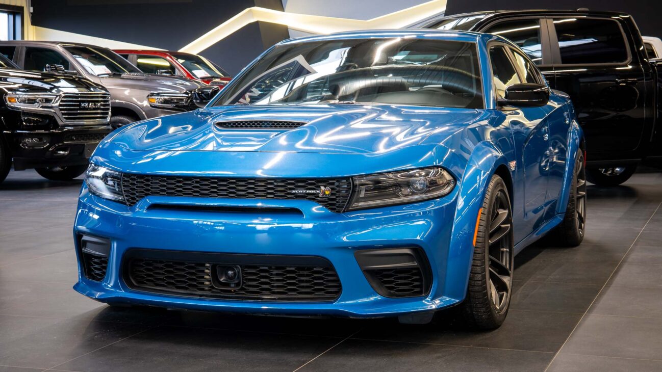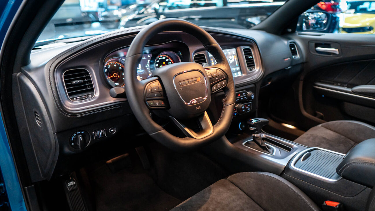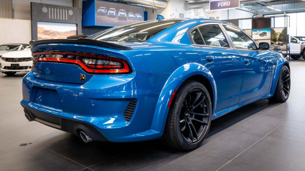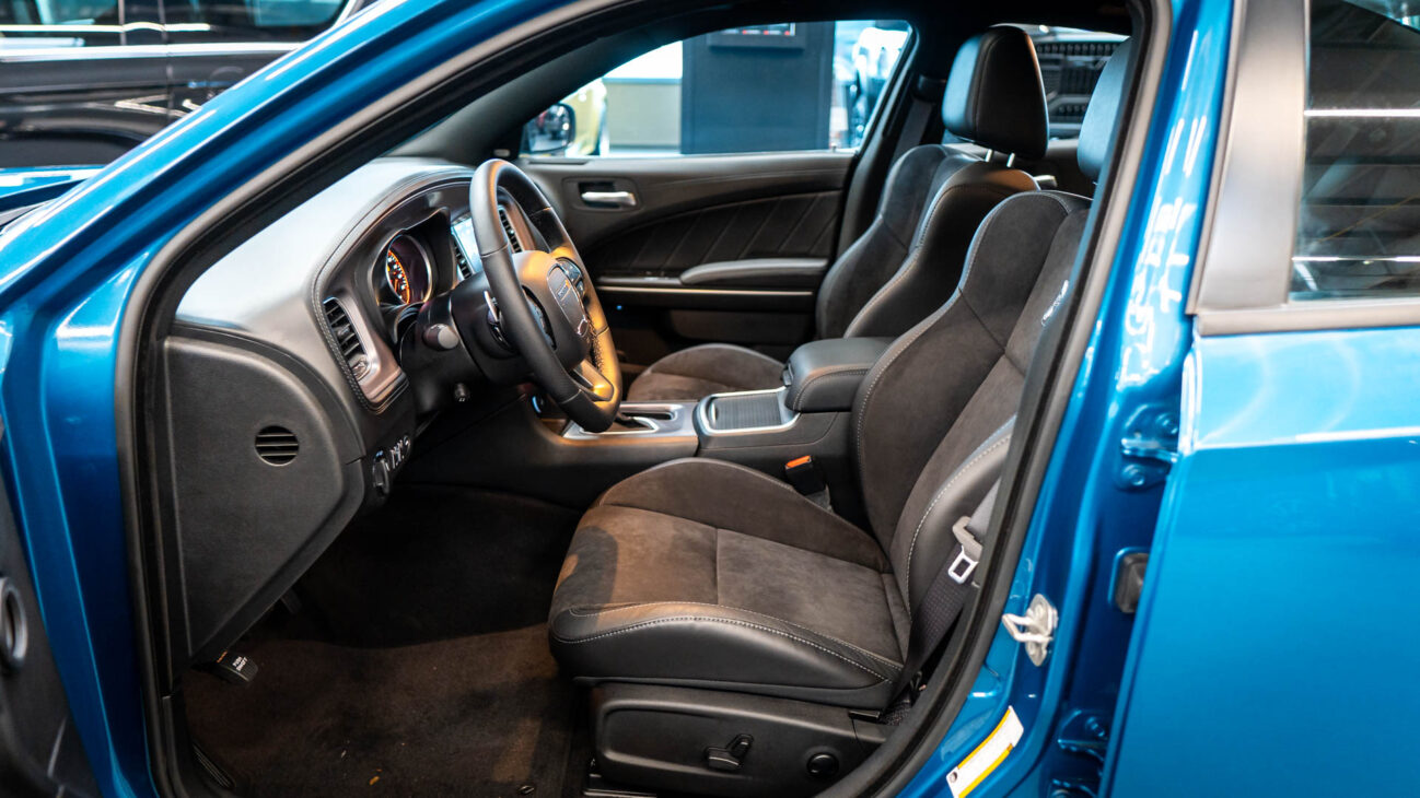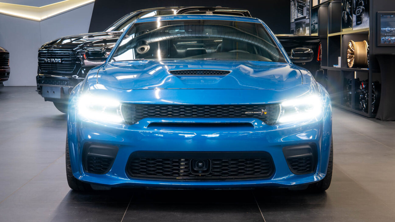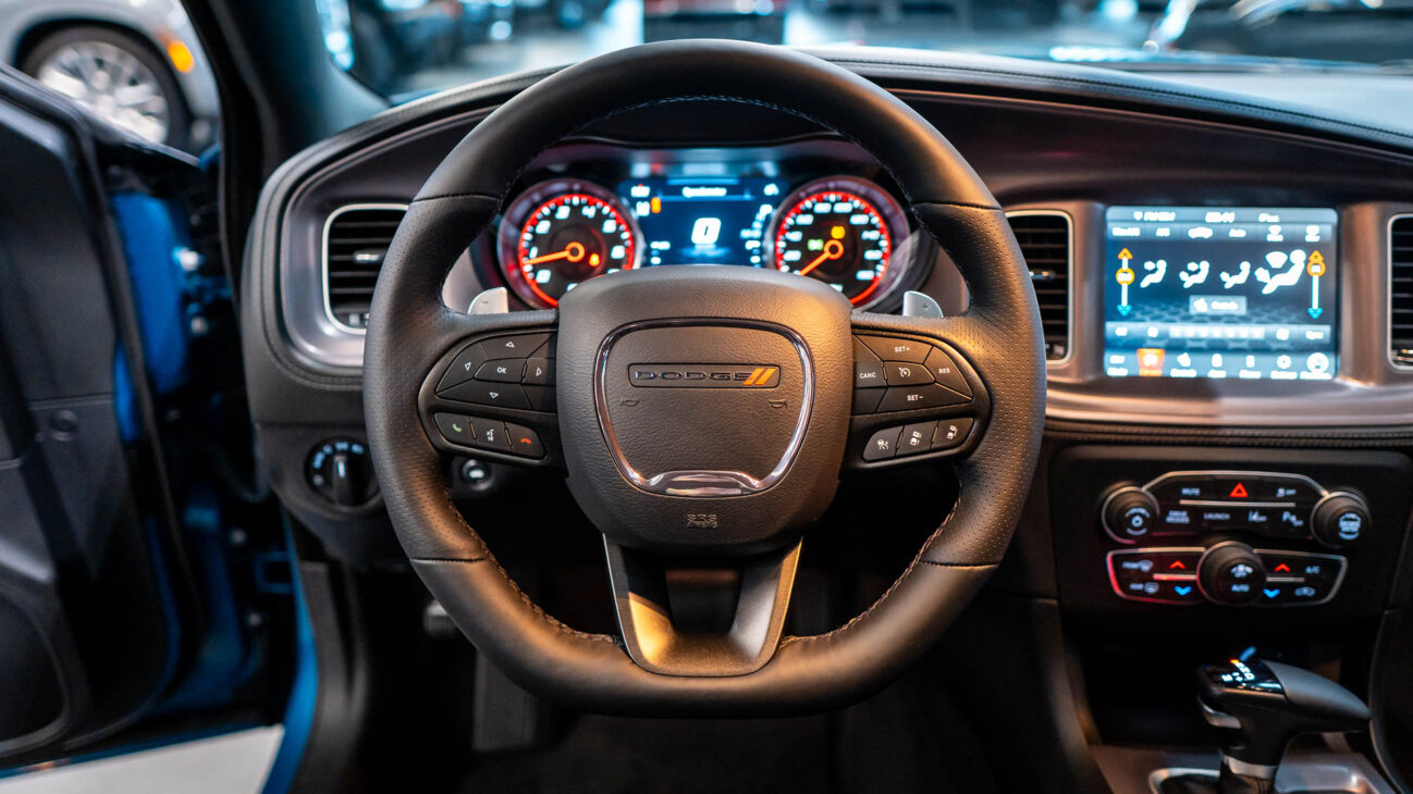 Nový Dodge Charger Scat Pack Widebody. Tento unikátní vůz z dlouholetou historií ve své podobě bohužel ukončil výrobu na konci loňského roku. Skladem u nás přesto najdete největší výběr těchto ikonických vozů s osmiválcovými motory. Model Scat Pack je osazen motorem 392 HEMI s největším objemem 6.4 V8 o výkonu 485HP s maximálním krouticím momentem 644Nm. Tento motor s fantastickým zvukovým projevem uděluje vozu zrychlení z 0 na 100 za 4.5s a jeho maximální rychlost končí na hodnotě 281km/h. Pohon vozidla zajištuje 8 stupňová automatická převodovka TorqueFlite, která využívá adaptivní řadicí logiku. Řídicí jednotka převodovky průběžně vyhodnocuje styl jízdy řidiče a na základě těchto vstupů dynamicky upravuje strategii řazení. Řidič má navíc k dispozici možnost přímého řazení pádly pod volantem Paddle Shift nebo volbou na řadicí páce pomocí tzv. funkce Autostick.