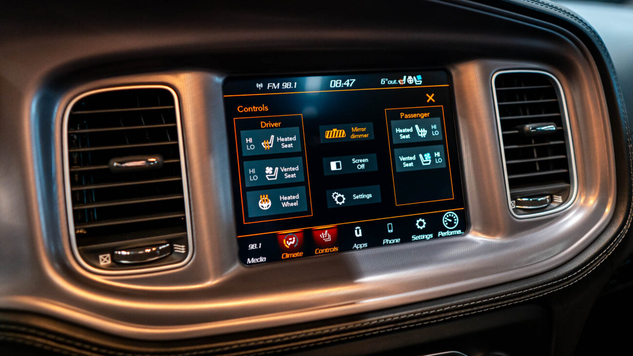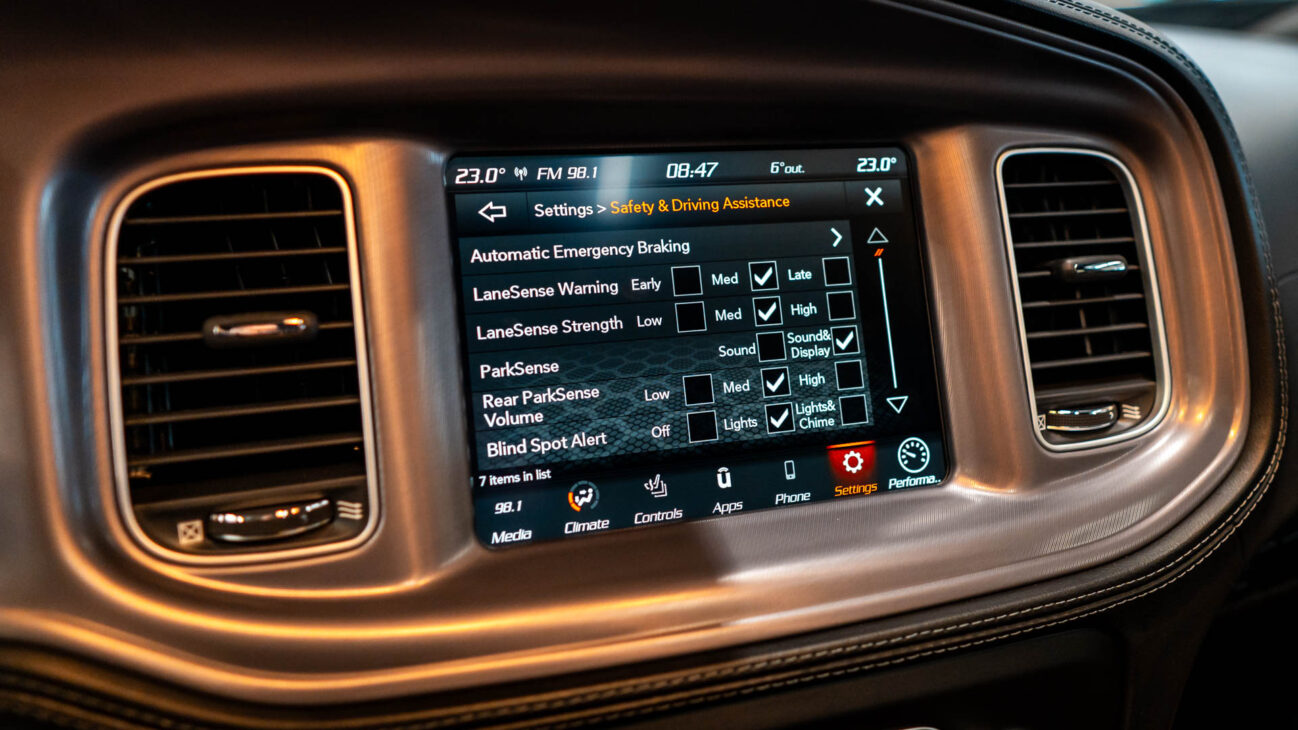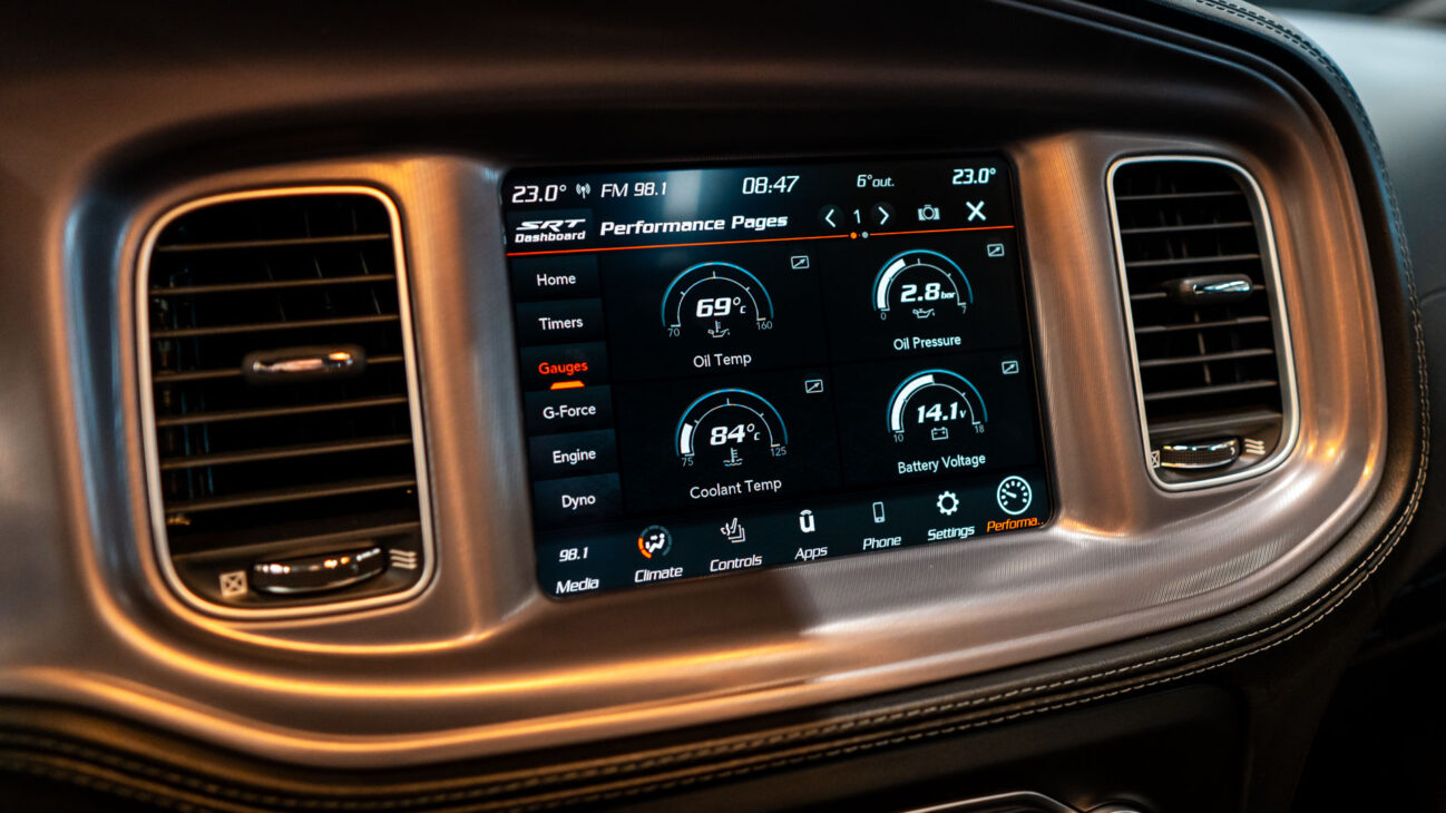 Model Charger je dále vybaven řadou Performance asistentů. Line Lock – funkce která umožní zabrzdit pouze přední kola držením tlačítka na volantu, přičemž můžete přidávat plyn a protáčet zadní kola, aby se očistily, zahřály a po uvolnění přední brzdy akcelerovaly s nejvyšším výkonem. Launch Assist – senzory monitorující rychlost kol při rozjezdu a v případě prokluzu snižují přenos točivého momentu pro maximální trakci. Launch Control – umožní nastavit řidiči otáčky motoru, které požaduje pro rozjezd a v těchto otáčkách vůz setrvává do okamžiku, než řidič uvolní brzdu. Rozsah otáček závisí na výkonu motoru. Průběh teploty lze sledovat na obrazovce Performance Pages. Tato unikátní funkce umožňuje měřit a zobrazovat výkonové parametry vozu na displeji infotainmentu. Jde o zrychlení, podélné a příčné přetížení (G-Force), výpis rekordních časů (Timers), stav provozních kapalin motoru (Gauges) nebo průběh výkonu a točivého momentu motoru (Dyno).