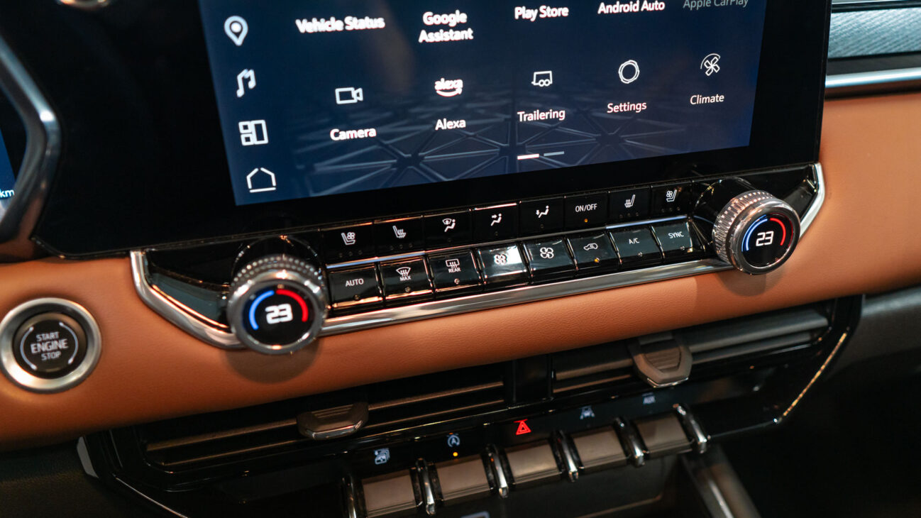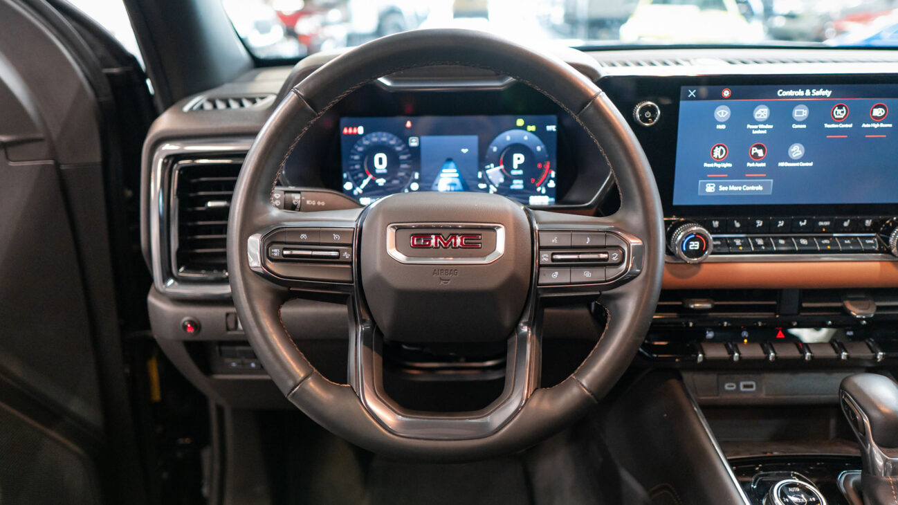 Nová generace GMC Infotainment systému nabízí velkou 11.3“ dotykovou obrazovku s rozšířenou podporou pro služby a aplikace společnosti Google, které lze dále rozšířit i přes Google Play. Plná podpora pro Apple CarPlay a Android Auto. Nechybí ani oblíbená služba Amazon Alexa. Ozvučení vozu zajišťuje audio systém se 6 reproduktory. V interiéru najdeme nabíjecí konektory USB, automaticky stmívaná zpětná zrcátka, bezklíčový vstup, startování tlačítkem či digitální dvou zónovou automatickou klimatizaci. Zajímavé je tlačítko, které na jedno stisknutí otevře všechna 4 okna najednou. Exteriéru dominují nová přední a zadní LED světla a příplatková propracovaná 20“ aluminiová kola v kombinaci leštěného hliníku s tmavě šedými akcenty. Zadní víko korby je opatřeno praktickým úložným prostorem.