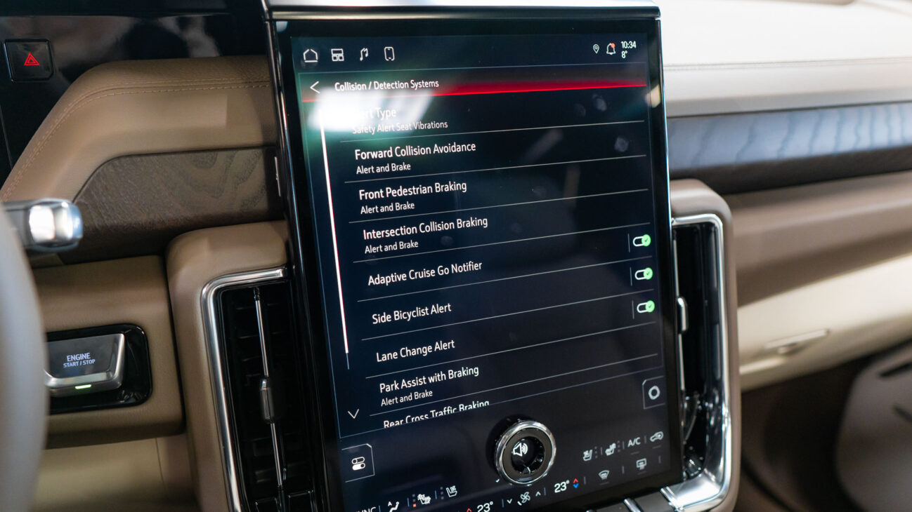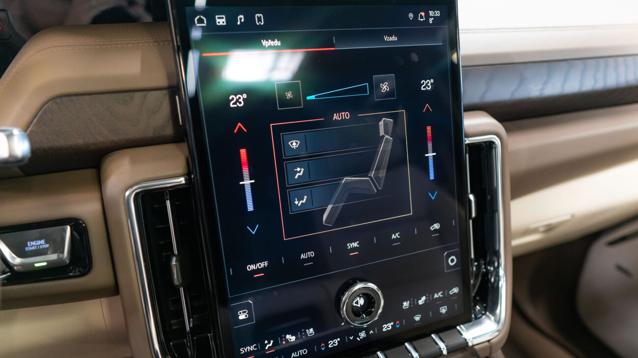Masivní 16.8 palcový diagonální OLED infotainment system. OLED obrazovka zaručuje nejkvalitnější podání obrazu ze současných obrazových technologií. Systém podporuje Apple CarPlay i Android Auto pro zobrazení navigace, hudby a dalších podporovaných aplikací. Funkce Teen Driver pro kontrolu bezpečnostních funkcí.