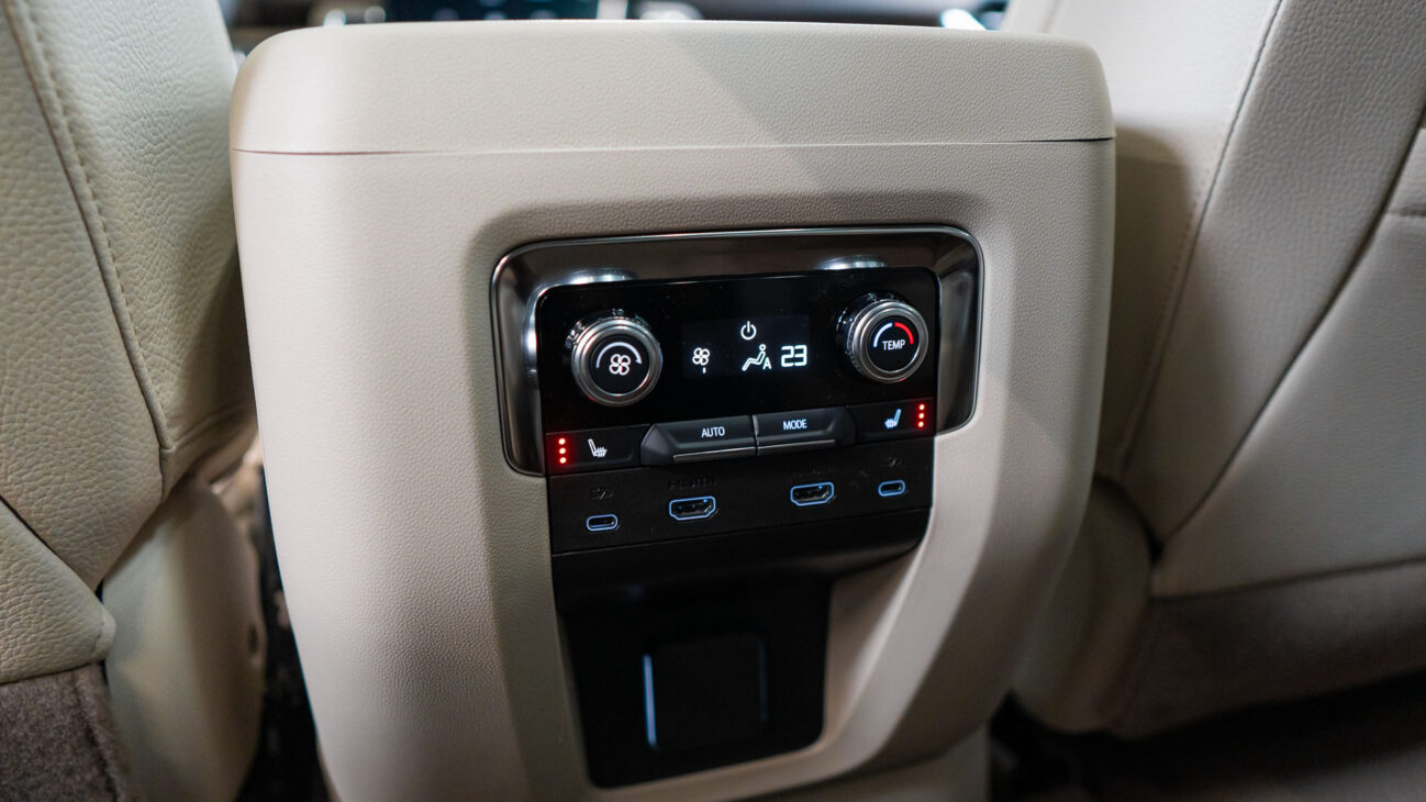 Zadní duální 12.6″ Rear-Seat Media Touch-Screens s možností individuálního přehrávání hudby a filmů ze vstupů USB a HDMI, nebo přes chytré telefony pomocí funkce Miracast.