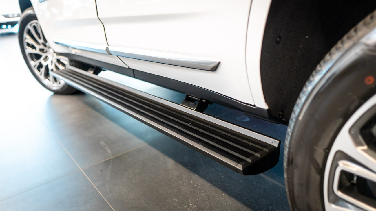 Panoramatická střecha, elektricky výsuvné nášlapy s podsvícením okolí vozu.