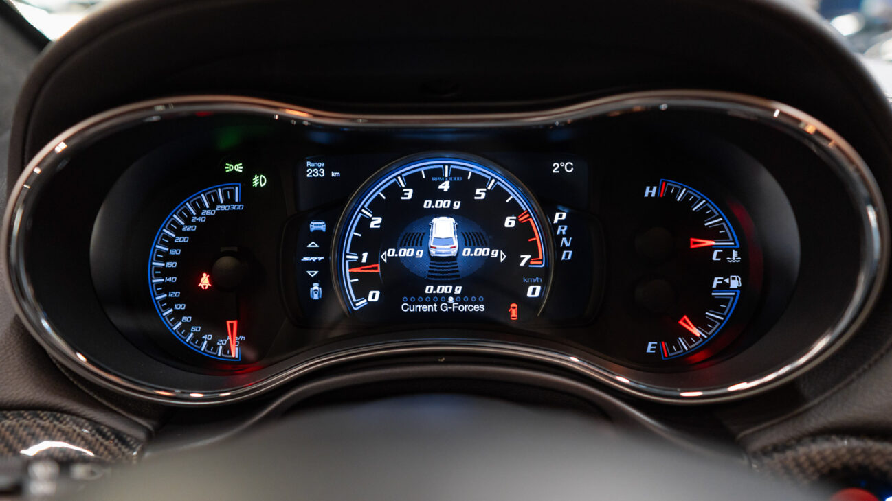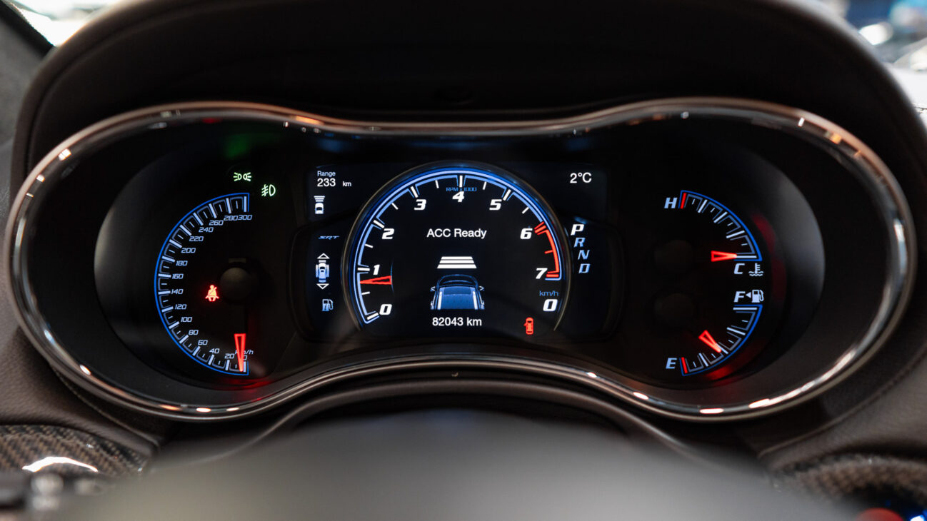 SRT disponuje sportovním sníženým podvozkem s výkonnými sportovními tlumiči, adaptivním podvozek s inteligentním zadním diferenciálem ELSD. Vůz dokáže zvládnout boční přetížením až 0,90 g. Systém Selec-Track zvyšuje přilnavost na jakémkoliv povrchu. Prostřednictvím jízdních režimů koordinuje 12 různých podsystémů motoru, brzd a podvozku, včetně ovládání škrticí klapky, řazení hlavní i rozdělovací převodovky a elektronické kontroly stability ESC. Režim Track umožní ryze sportovní zážitky, kdy je 70 % točivého momentu výkonu přenášeno na zadní kola.