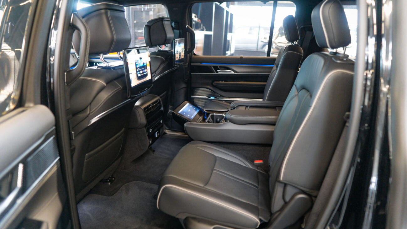Infotainment systém Uconnect 5 s 12 palcovou obrazovkou podporuje bezdrátové připojení Apple CarPlay i Android Auto. Pro jednoduchost ovládání základních funkcí během jízdy jsou zachována fyzická tlačítka pro základní funkce jako nastavení hlasitosti rádia, teploty a intenzity klimatizace a další. Spolujezdec vedle řidiče má k dispozici multimediální 10.25″ obrazovku s podporou přehrávání USB médií, HDMI vstupu, ovládání navigace a celé řady dalších funkcí. Pasažéři v druhé řadě disponují svým vlastním displejem s možností nastavení vlastní zóny klimatizace a výhřevu sedadel.