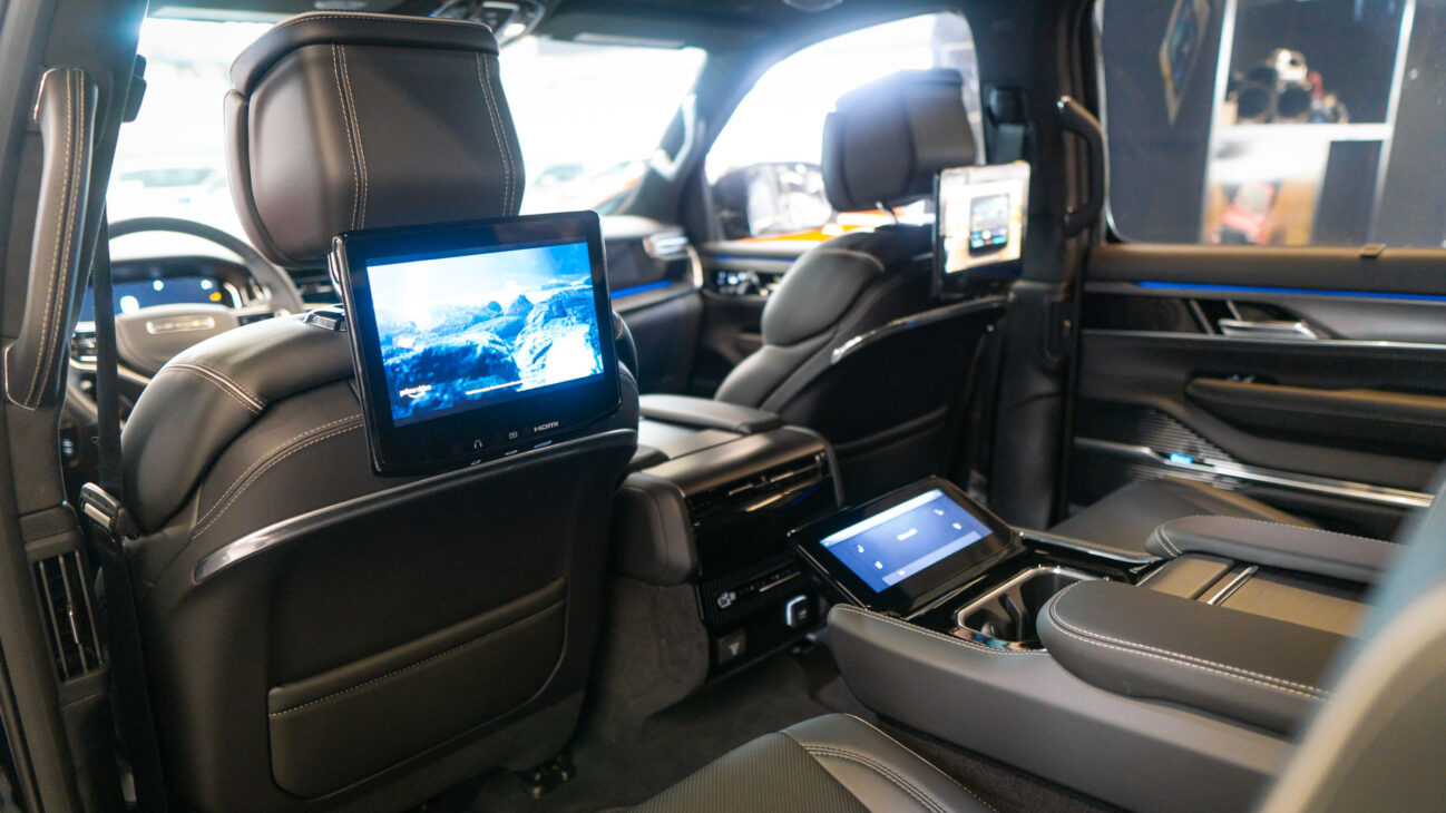 Dvě zadní multimediální 10.1″ LCD obrazovky s HDMI a USB vstupy pro přehrávání médií, navíc disponují systémem Amazon Fire TV Auto pro streamování online video obsahu.