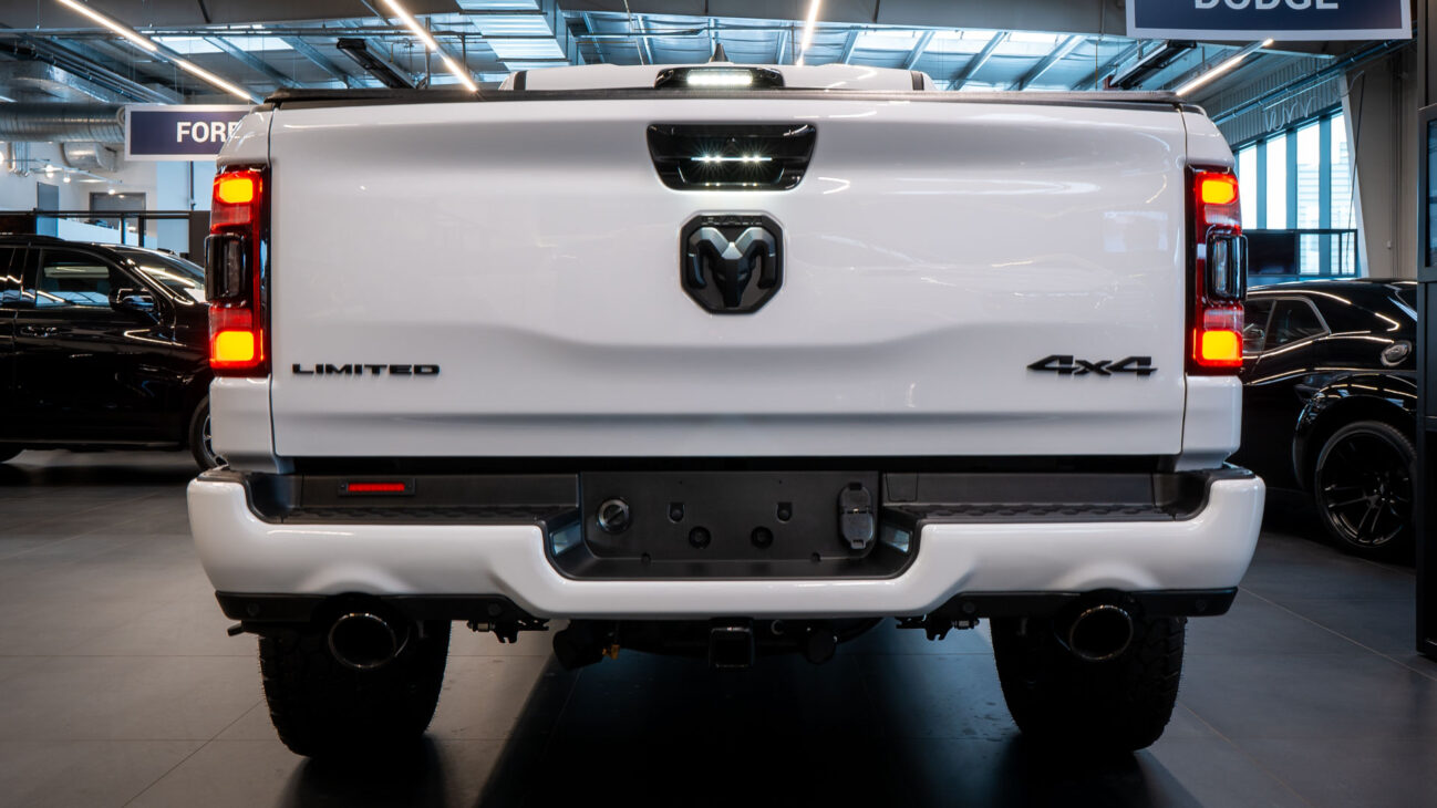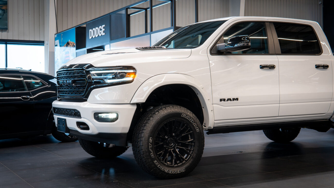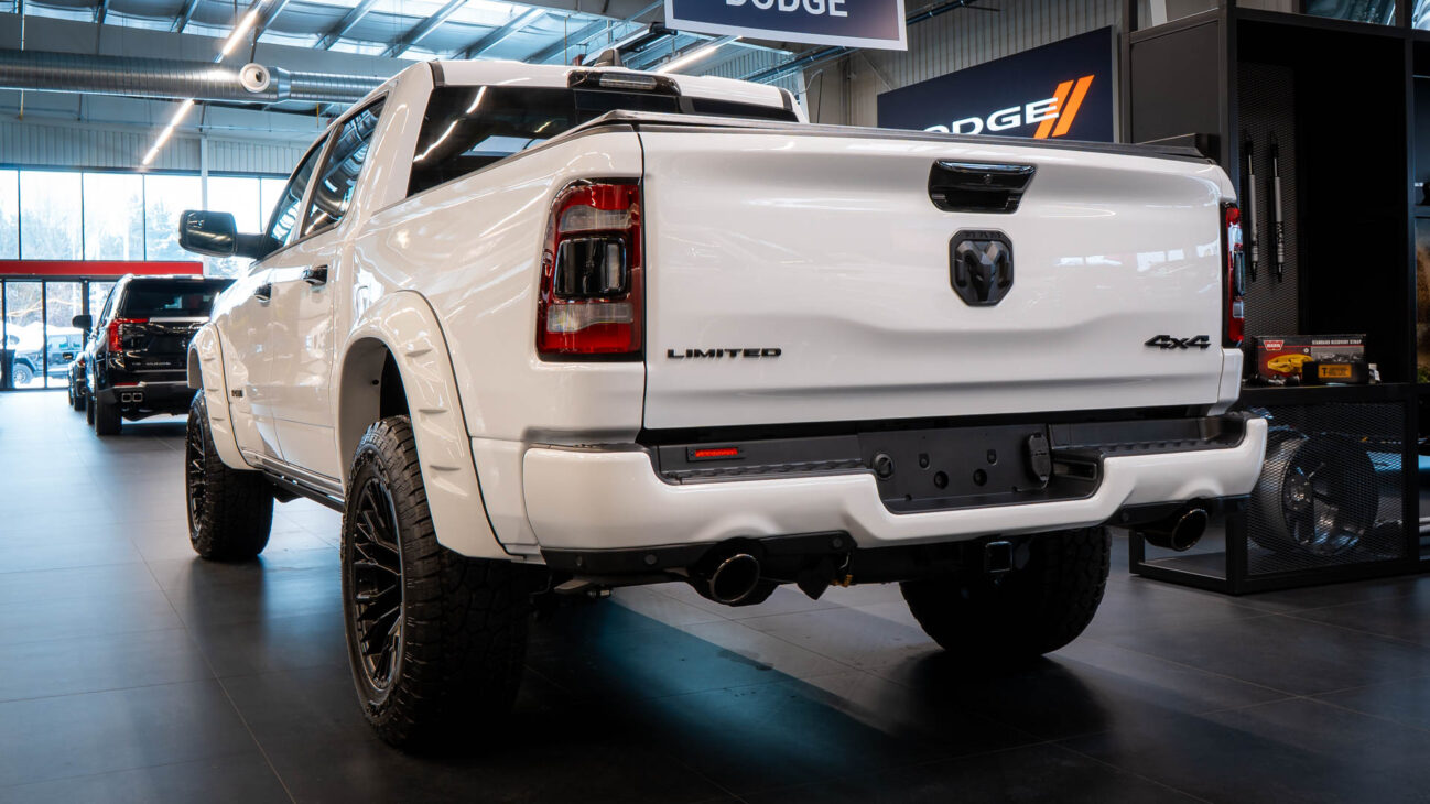 Nový RAM 1500 ve výbavě Limited. Odlehčený a přepracovaný rám s vyšší pevností. Speciální úprava Auto Outlet Design obsahuje sadu LIFT KIT 6″. Design vozu podtrhují také luxusní aluminiová kola Rebar 20×10″, offroad pneumatiky 35″, které jsou překryté rozšířenými lemy blatníků Bushwacker DRT lakované v barvě vozu. Extra výkonné osvětlení zajišťuje LED panel o rozměru 40″, umístěný za předním nárazníkem o výkonu 240W.