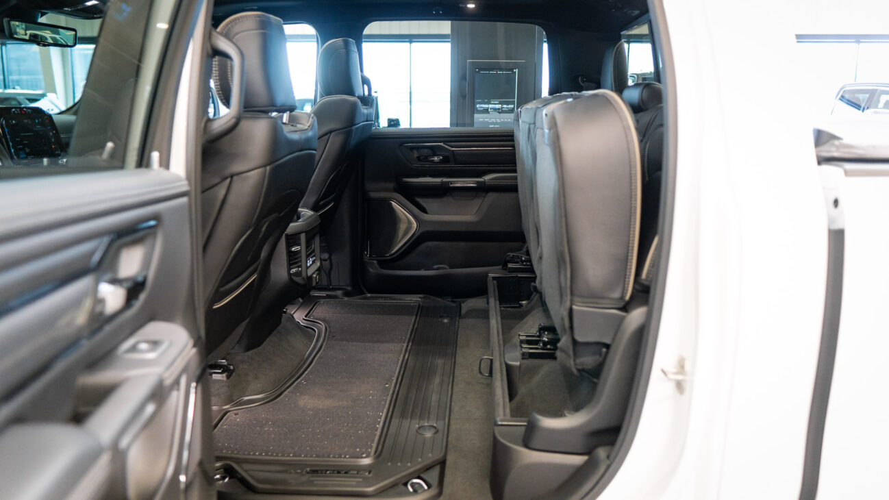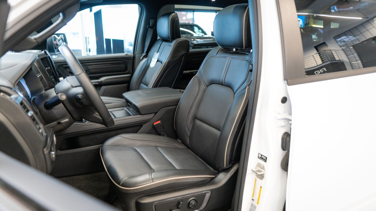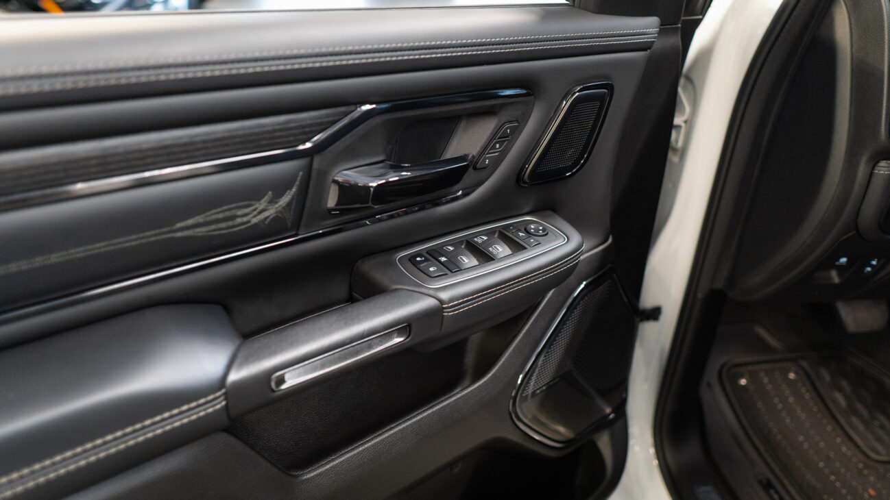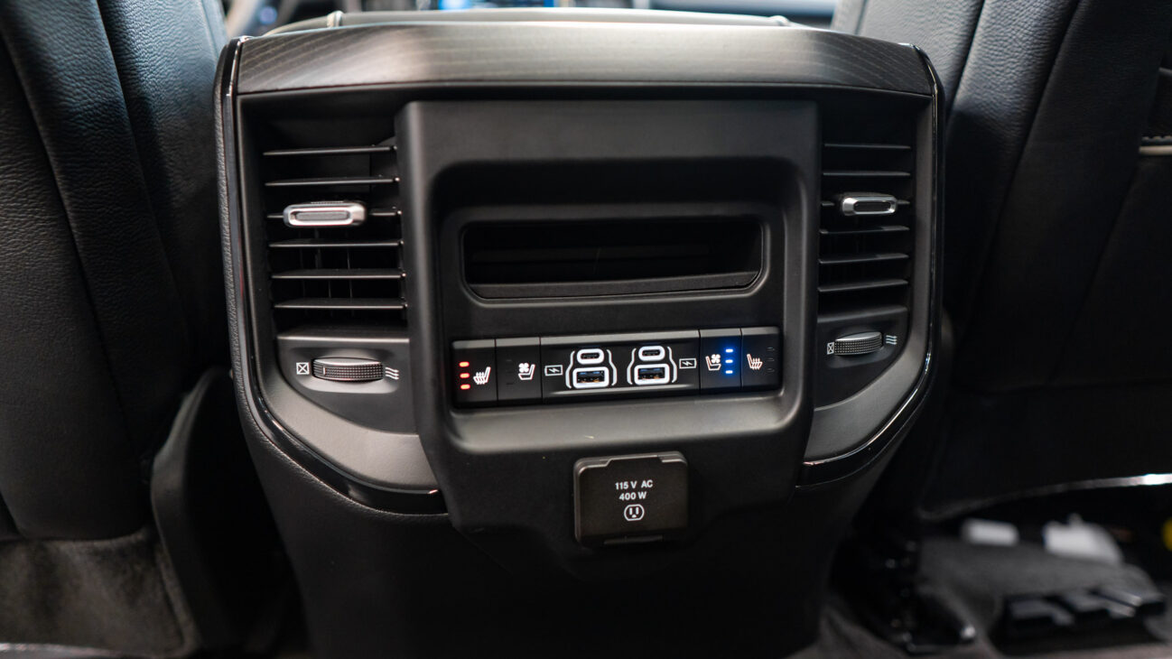 Nový infotainment UConnect 5 Nav s 12″ displejem nabízí kontrolu nad veškerými funkcemi vozidla, přesto si ale RAM zachovává fyzická tlačítka pro ovládání nejdůležitějších komfortních funkcí za jízdy jako klimatizace, hlasitosti rádia a další. UConnect 5 samozřejmě podporuje Apple CarPlay i Android Auto. 360 stupňová parkovací kamera na velkém displeji zobrazuje dění kolem vozu ve velkém detailu, navíc nabízí možnost přiblížení bočních a zadních kamer pro usnadnění pakovacích manévrů nebo pro přesné nacouvání k přívěsu. Prémiový Harman/Kardon audiosystém poskytuje kvalitní a vyvážené zvukové podání v celé kabině vozu díky 18 reproduktorům, subwooferu a zesilovači o výkonu 900W. Funkce Logic 7 u tohoto audio systému zajišťuje perfektní 360° prostorový zvuk.